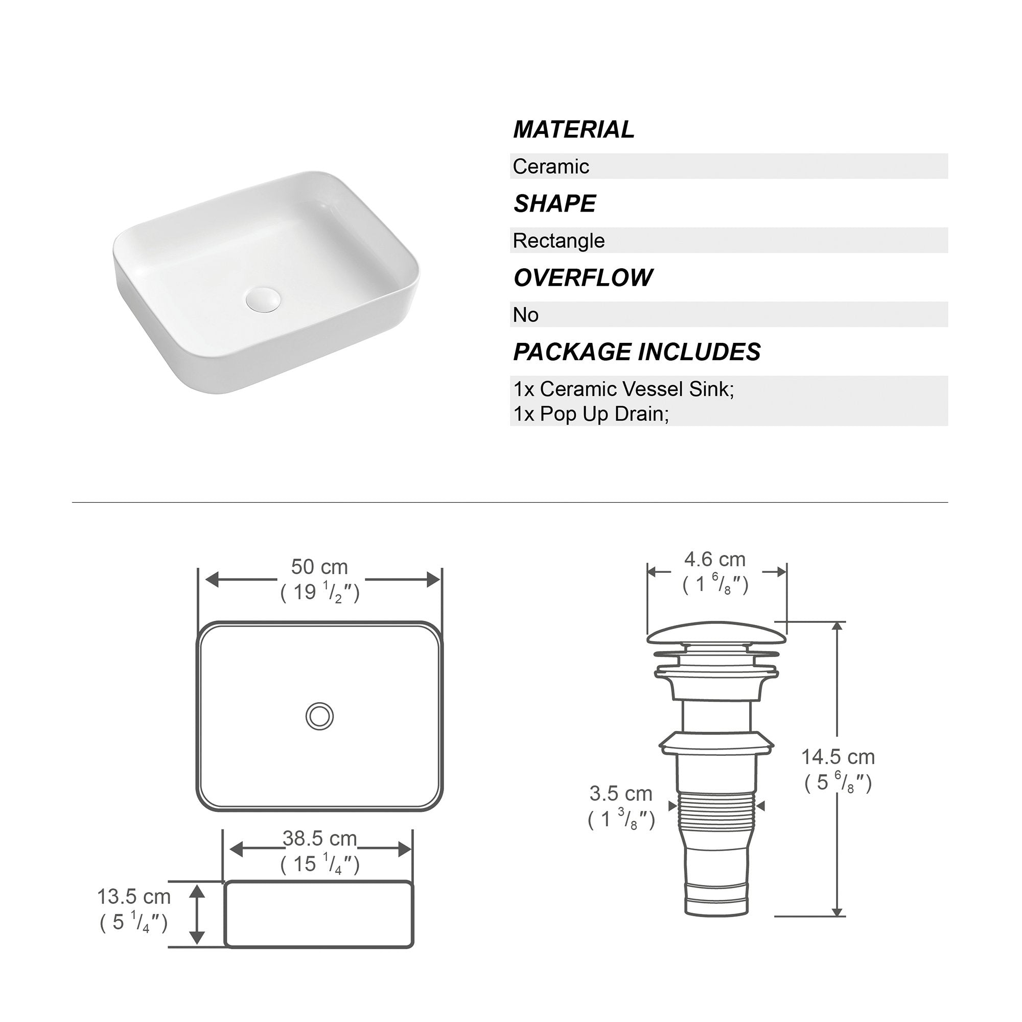 This artistic ceramic basin is more than just a practical vessel for everyday use, but also an adornment for your living space.The flat bottom style with softly rounded corners to prevent dust accumulation and facilitate cleaning. NOTE: No faucet and stopper included. Included:Drain Assembly/ Waste.