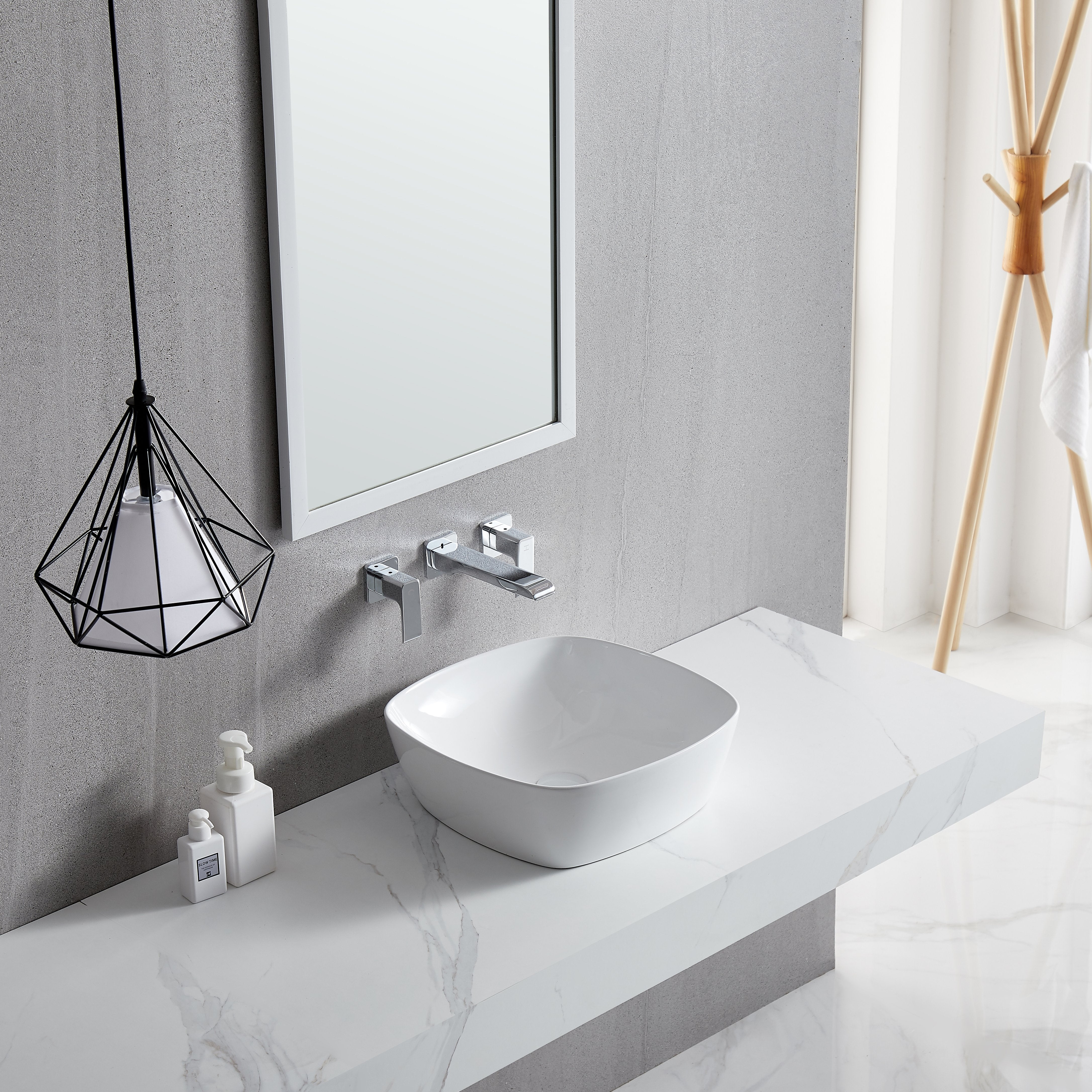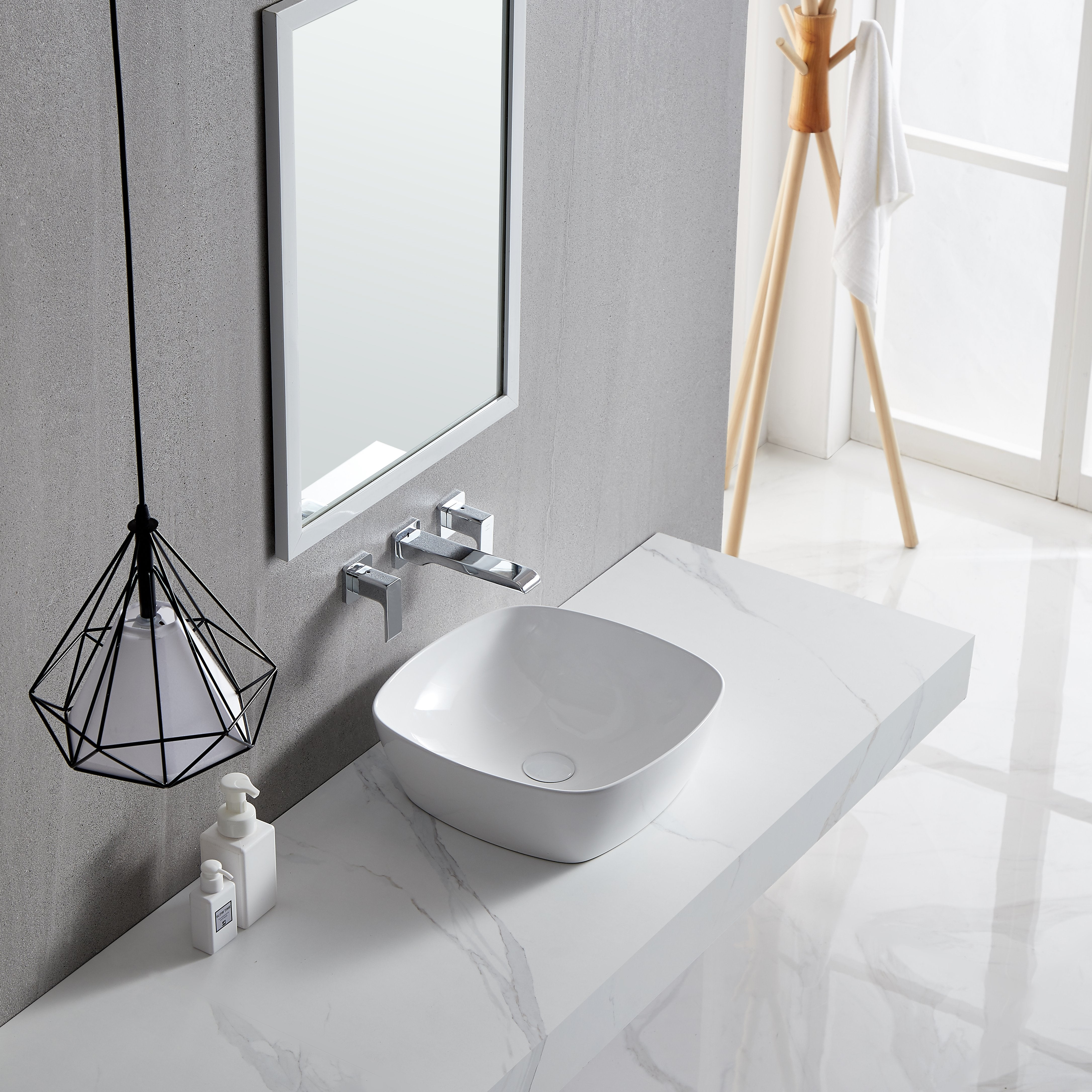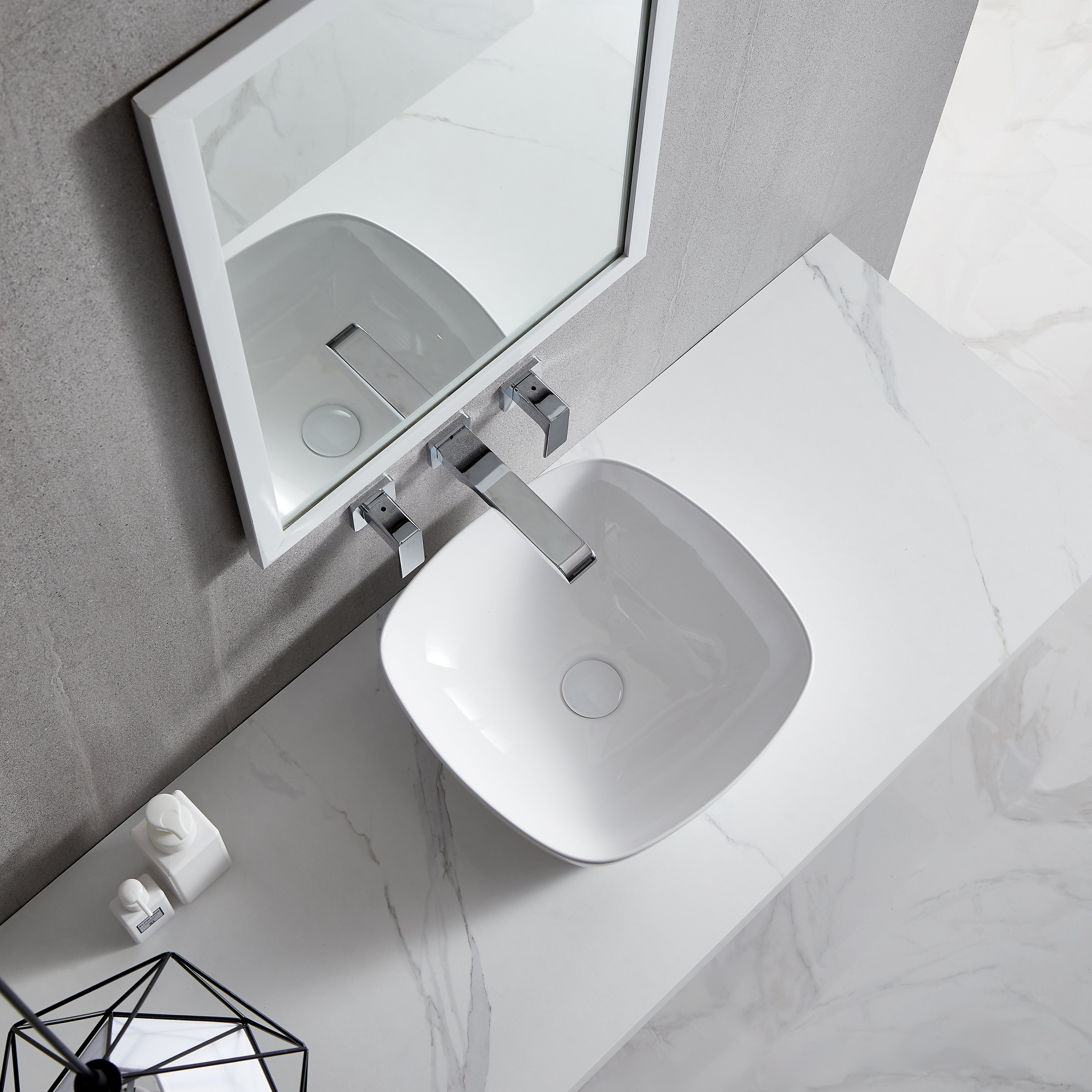 Ceramic Square Above Counter White Bathroom Sink Art Basin