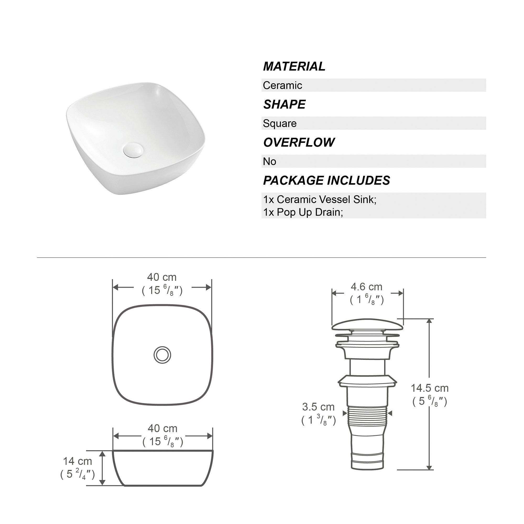 This artistic ceramic basin is more than just a practical vessel for everyday use, but also an adornment for your living space.The flat bottom style with softly rounded corners to prevent dust accumulation and facilitate cleaning. NOTE: No faucet and stopper included. Included:Drain Assembly/ Waste.
