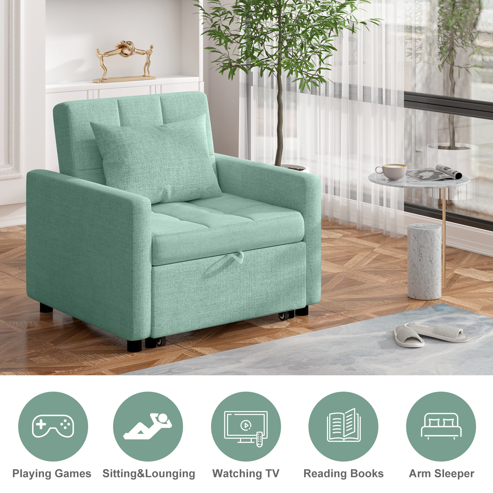 【Sturdy Frame & Skin-friendly】The chair sleeper is made of a high-quality steel frame and padded high-density 100% new foam, ensuring an excellent support and the best durability in daily use. The skin-friendly linen-cotton fabric ensure a high level of seating comfort.