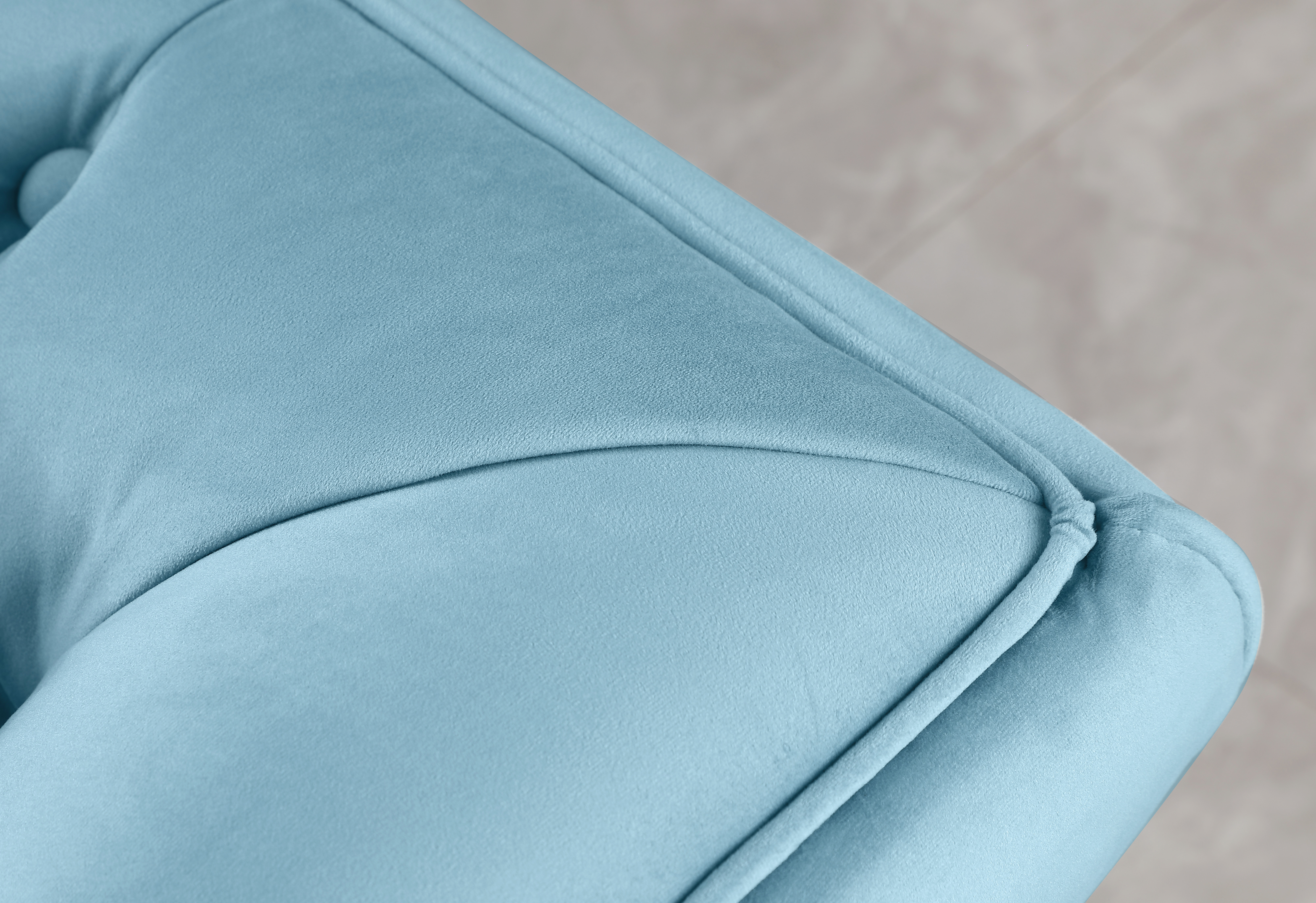 • Premium quality velvet upholstery • Timeless button tufting • Clean lines and softness create a look that fits a traditional or contemporary interior decor