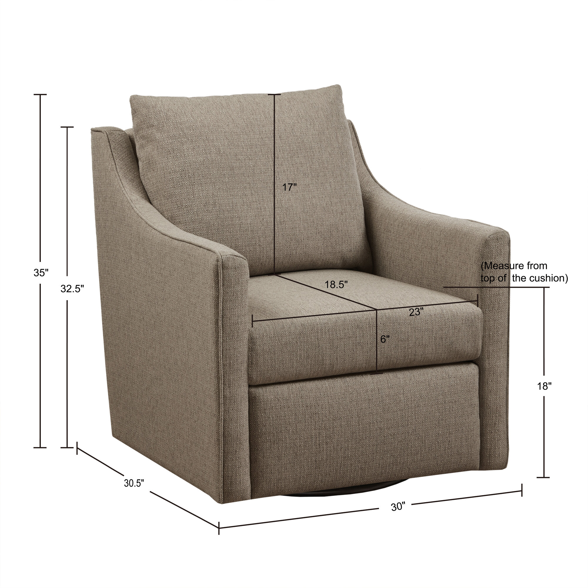 Long Descriptions | The Christian swivel armchair is part of Bedford collection by Martha Stewart. The chair has a 360 degree swivel and a classic structured look, with piping along the sloped arms. It is upholstered in a durable and easy-to-clean plain weave fabric, making it versatile for any living room, bedroom, or home office. The chair also has a padded and removable seat cushion and back pillow for extra comfort. Plus, no assembly is required – it arrives ready to use! |