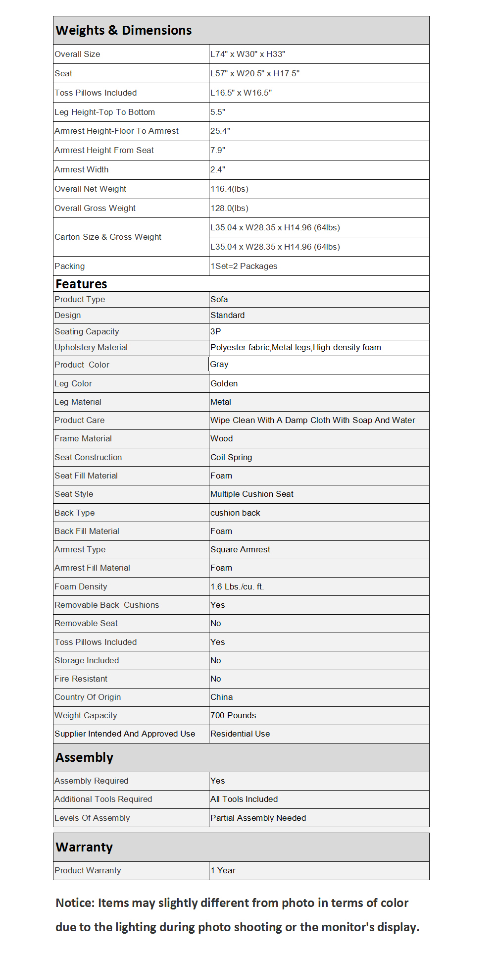 4.EASY TO ASSEMBLY:Instructions manual and tools are included.Together with armrests,pillows & cushions hide in the bottom of each seat.Partial assembly within 10 minutes.