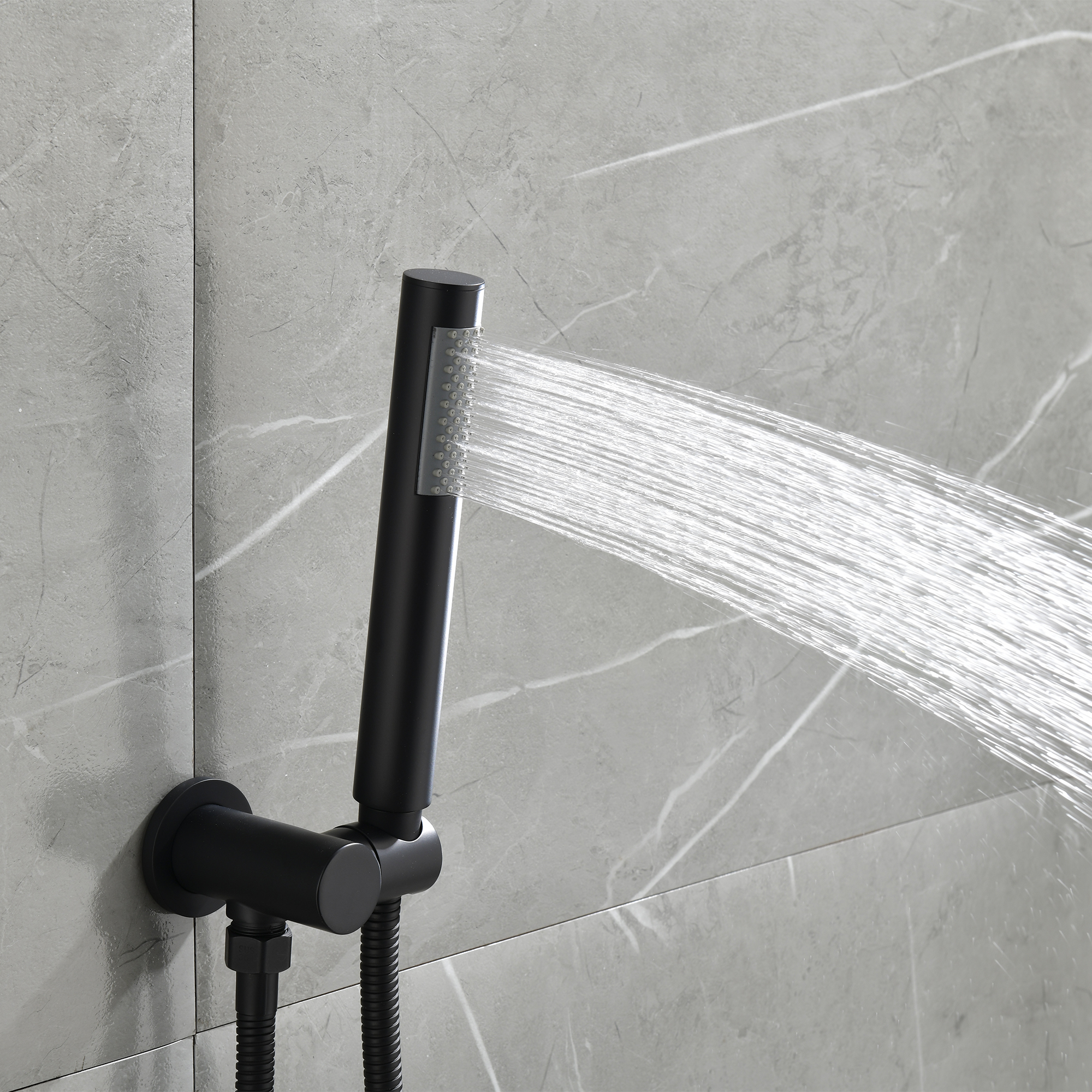 The shower kit provides a luxurious, stylish, modern design and long-lasting durability at a reasonable price. Round shower and hand shower, the coarse water inlet valve is made of brass, with ceramic box, no maintenance. The showerhead with a silicone nozzle allows you to easily wipe off hard water and scale deposits. The showerhead is on your head, without twisting, turning, or bending, you can stand and enjoy the shower. The water flowing from the showerhead spreads over your entire body and provides a bathing experience that is both refreshing and natural.