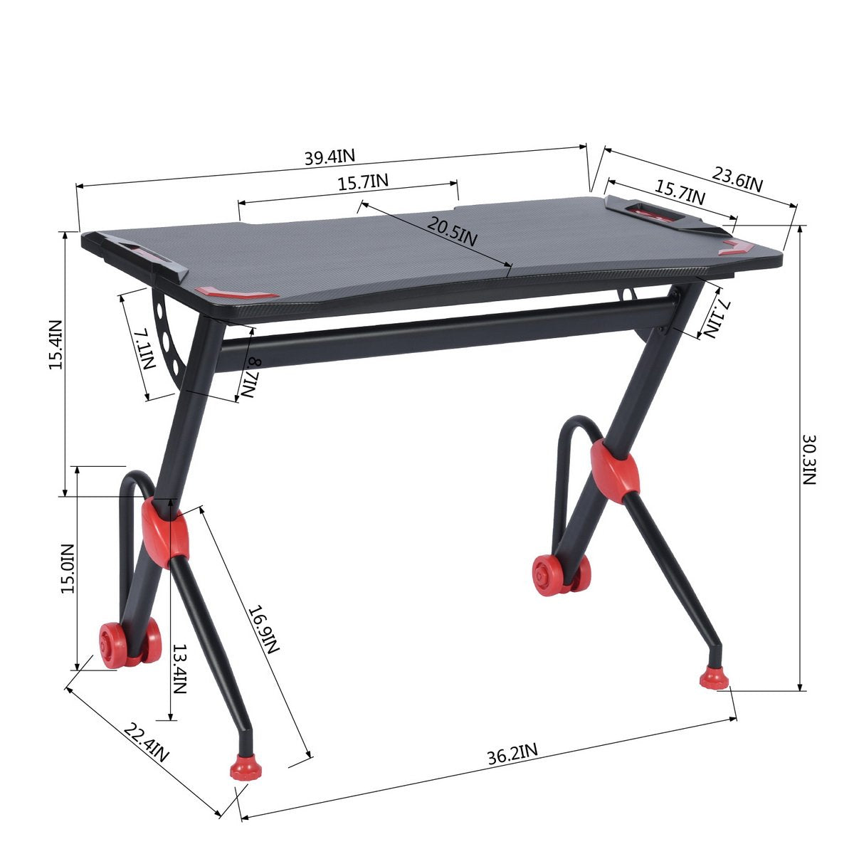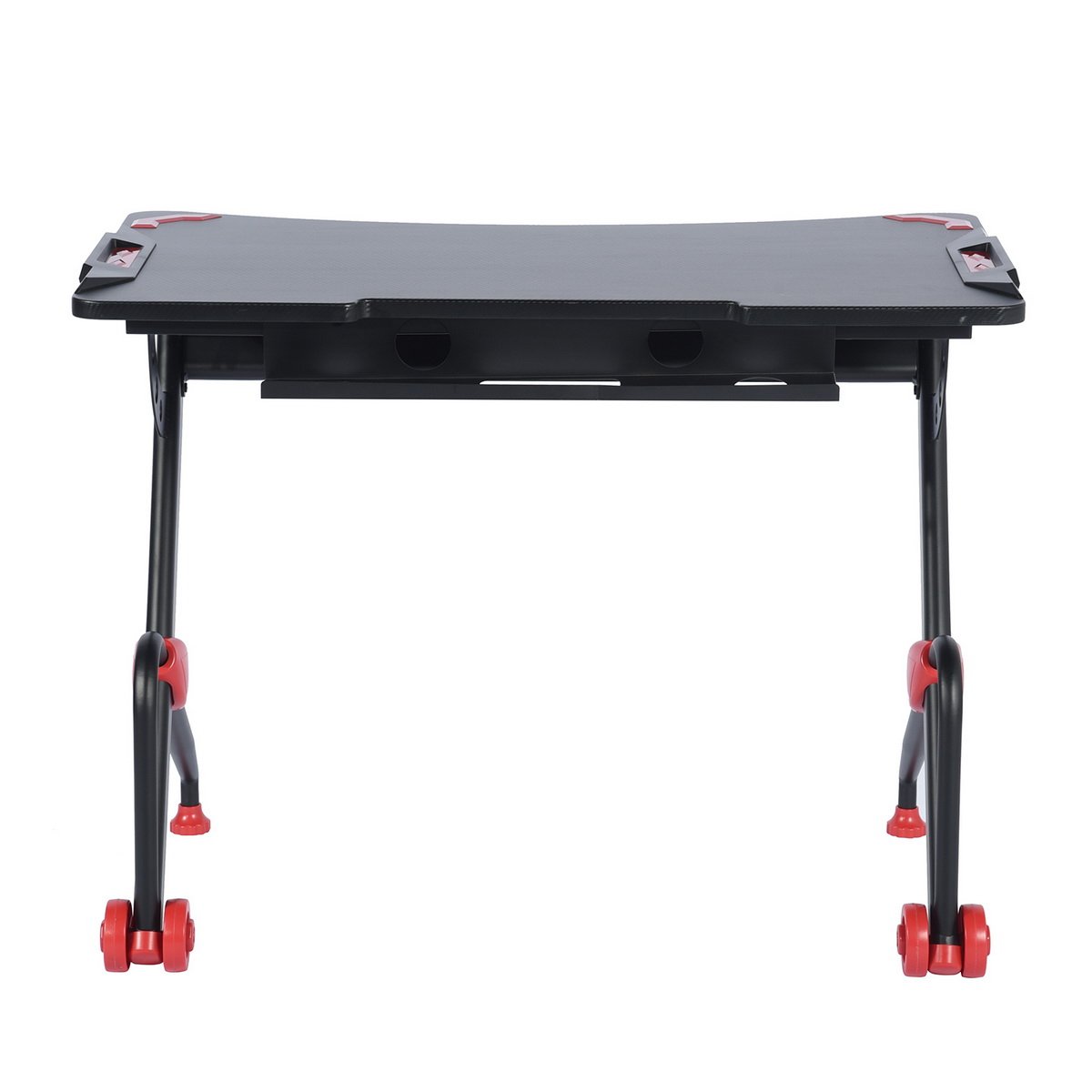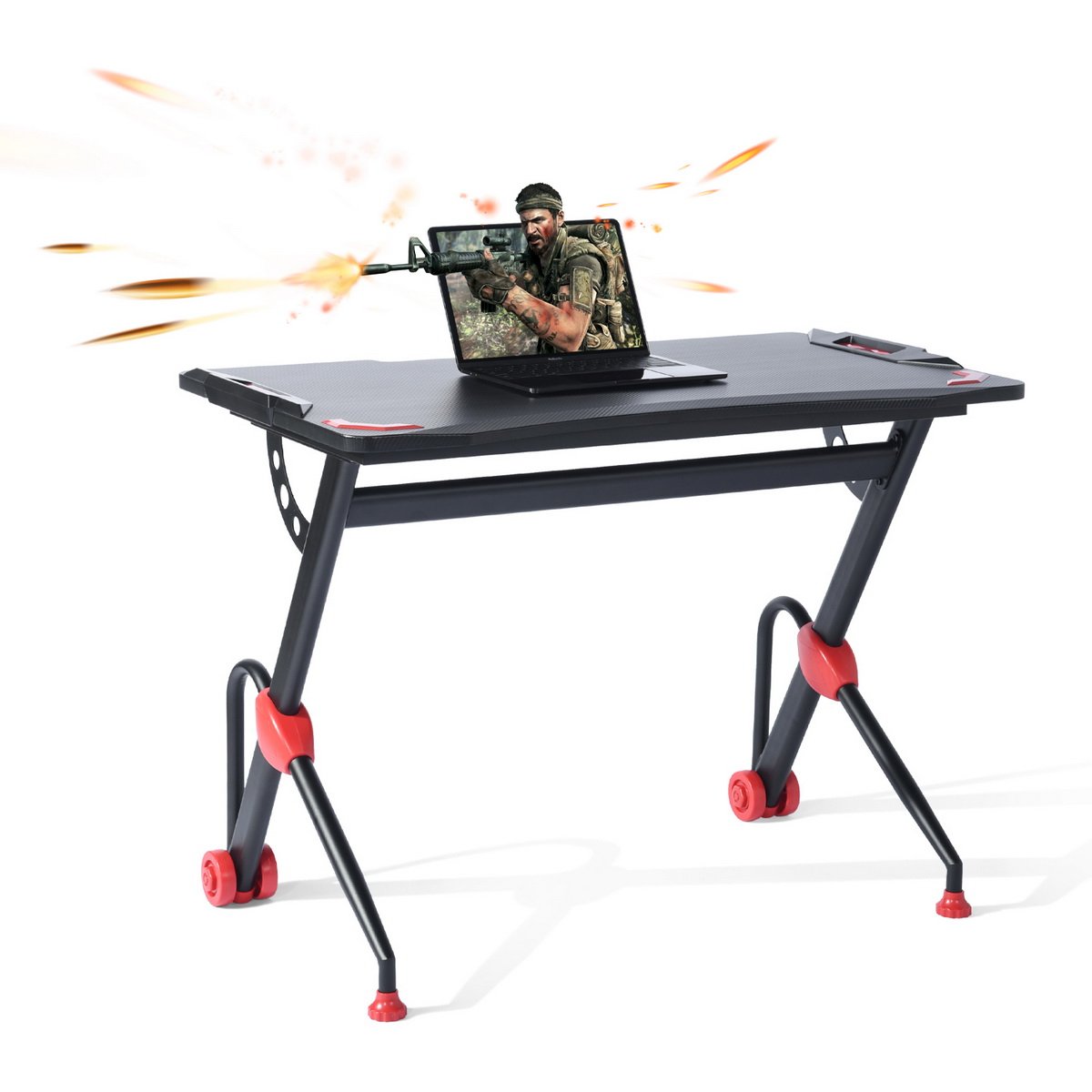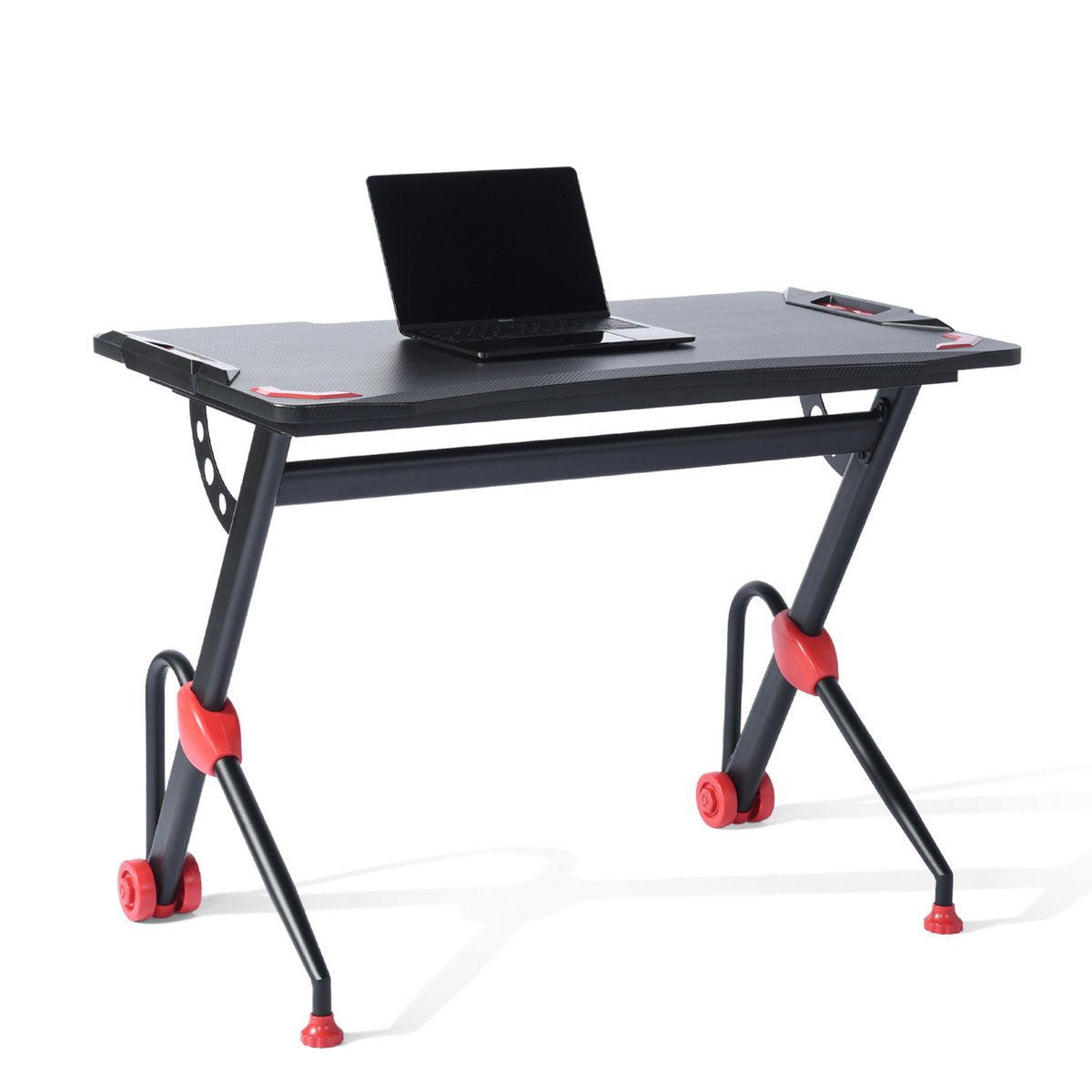 It has large gaming desktop that can withstand 220 lbs of weight, providing ample room for your monitor, PC, laptop, speakers and more. PVC carbon fiber surface is scratch-resistant and easy to clean, reveals excellent performance to allow you to enjoy gaming in enough space. R-shape frame constructed with steel pipes ensure the stability and durability of the table, accompanying you to enjoy your time in playing games. Good in quality and comfortable for usage, the gaming desk is really worth buying!