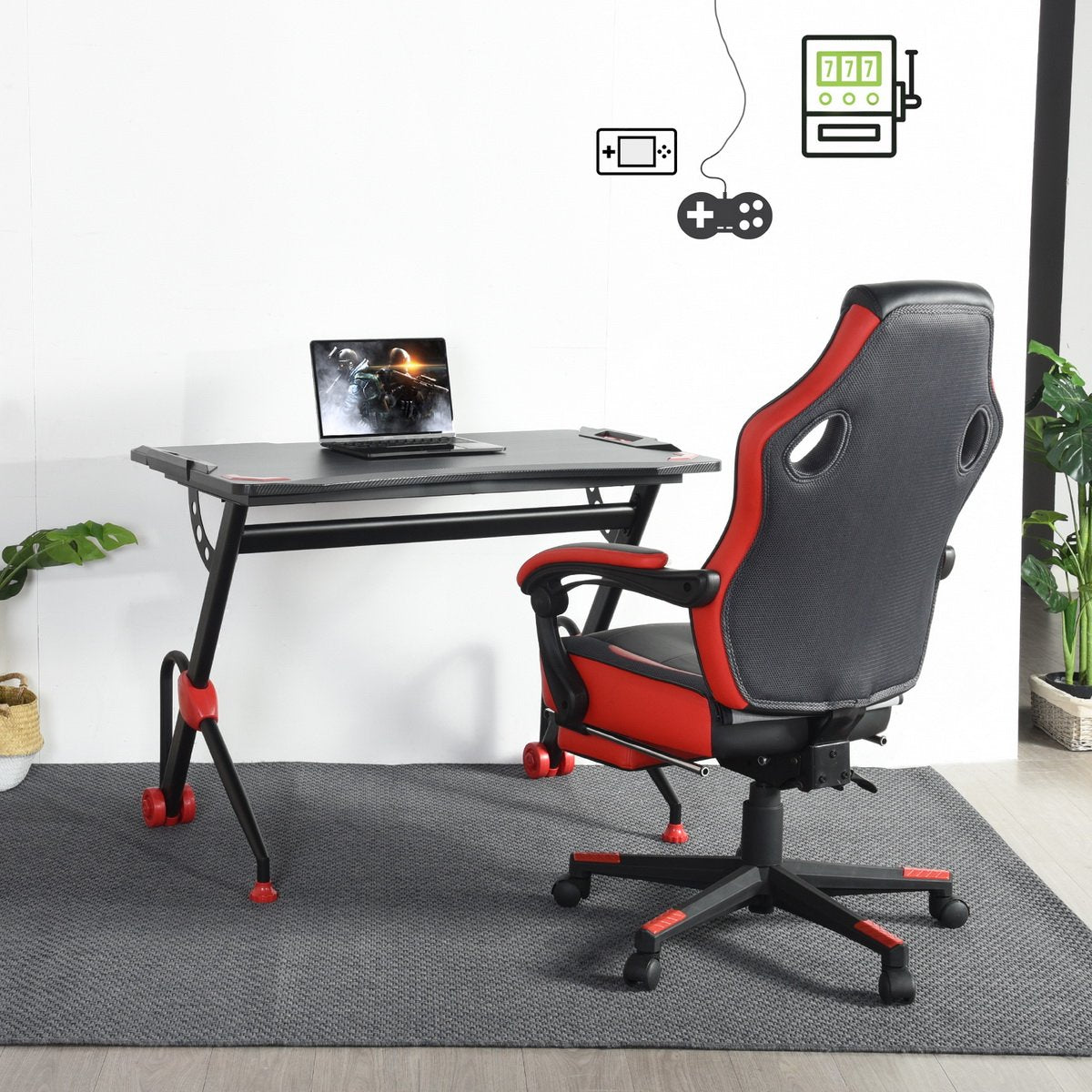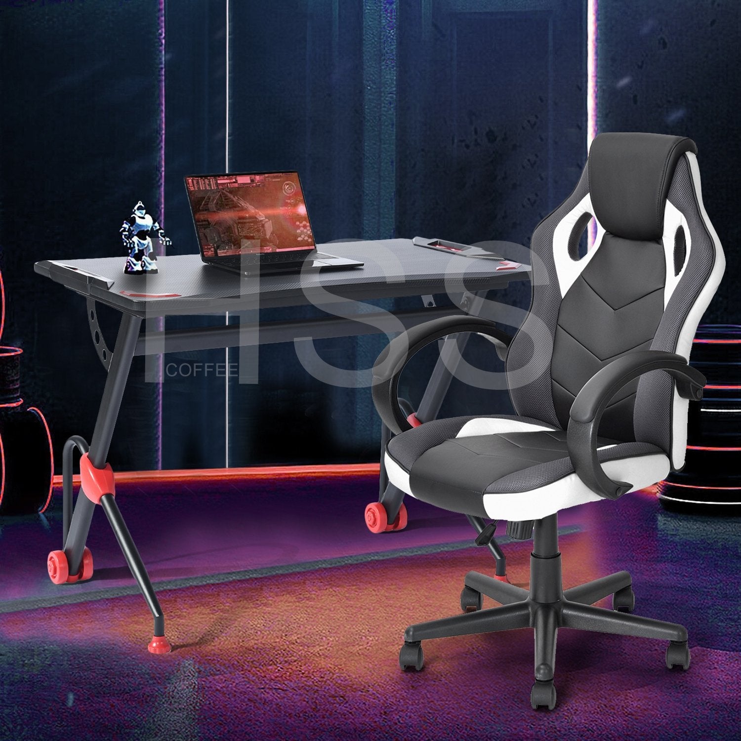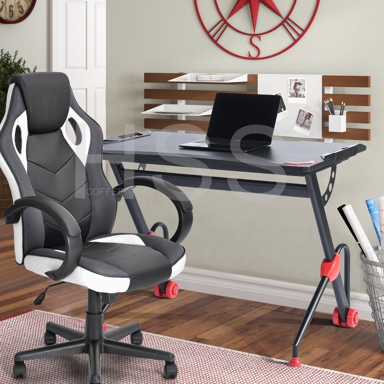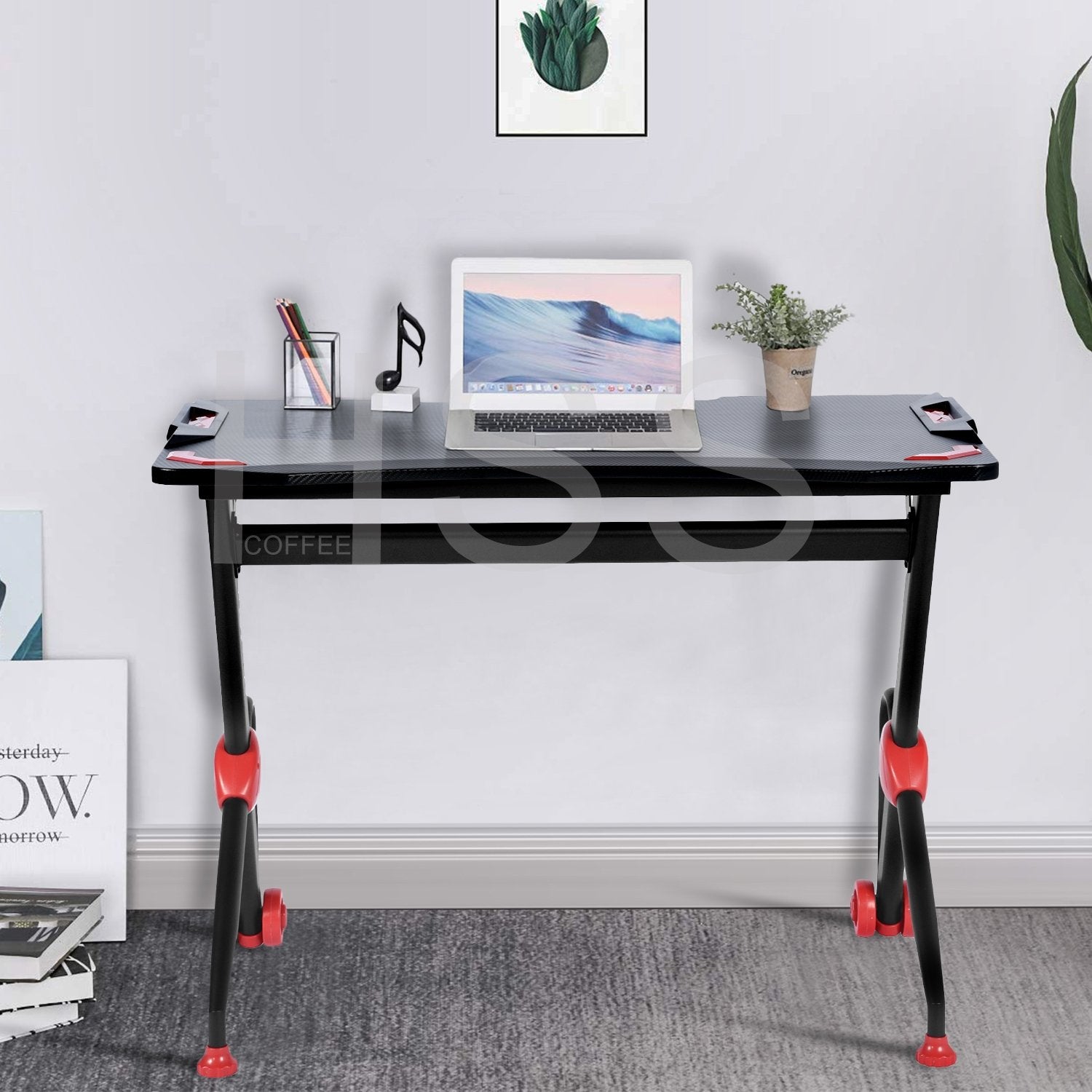 It has large gaming desktop that can withstand 220 lbs of weight, providing ample room for your monitor, PC, laptop, speakers and more. PVC carbon fiber surface is scratch-resistant and easy to clean, reveals excellent performance to allow you to enjoy gaming in enough space. R-shape frame constructed with steel pipes ensure the stability and durability of the table, accompanying you to enjoy your time in playing games. Good in quality and comfortable for usage, the gaming desk is really worth buying!