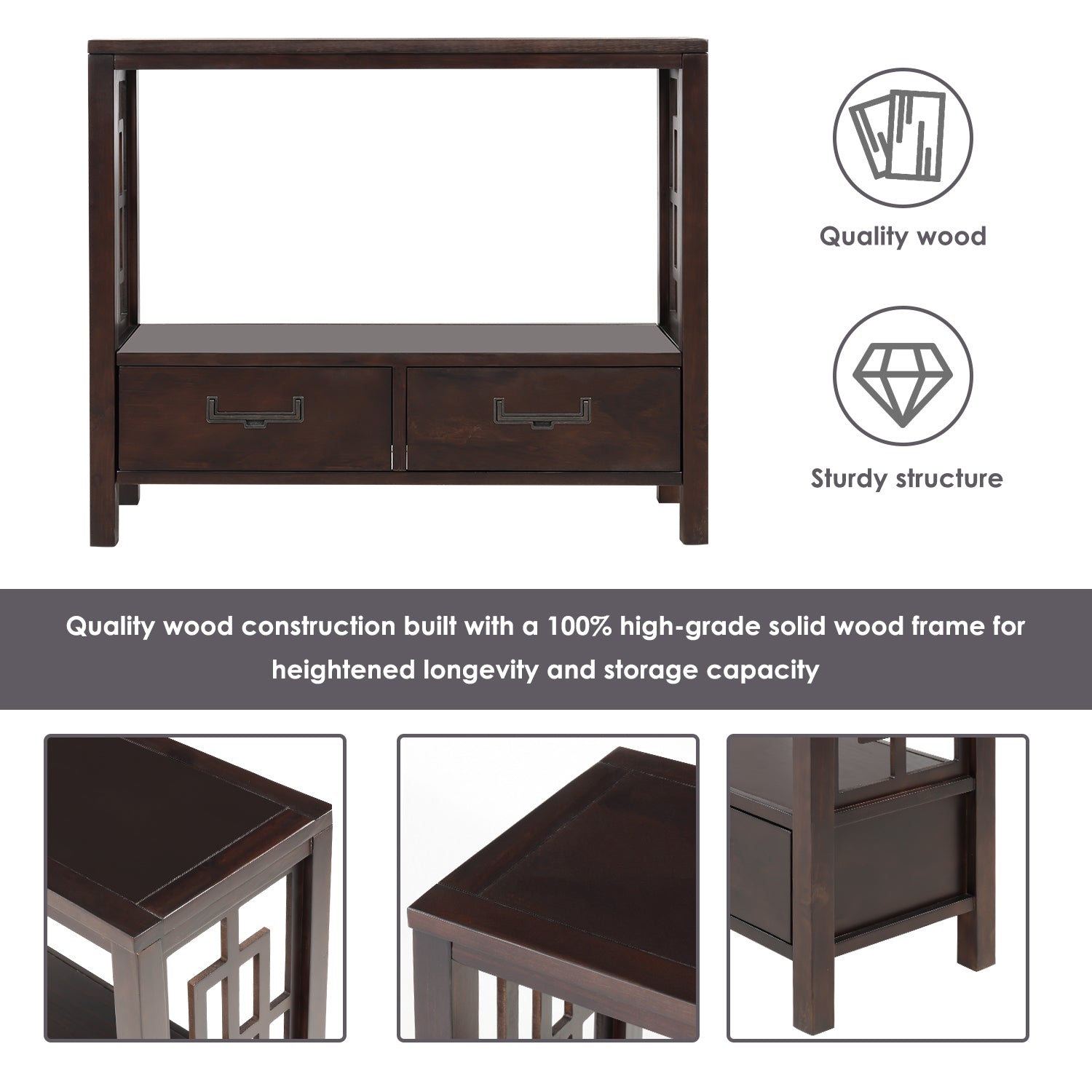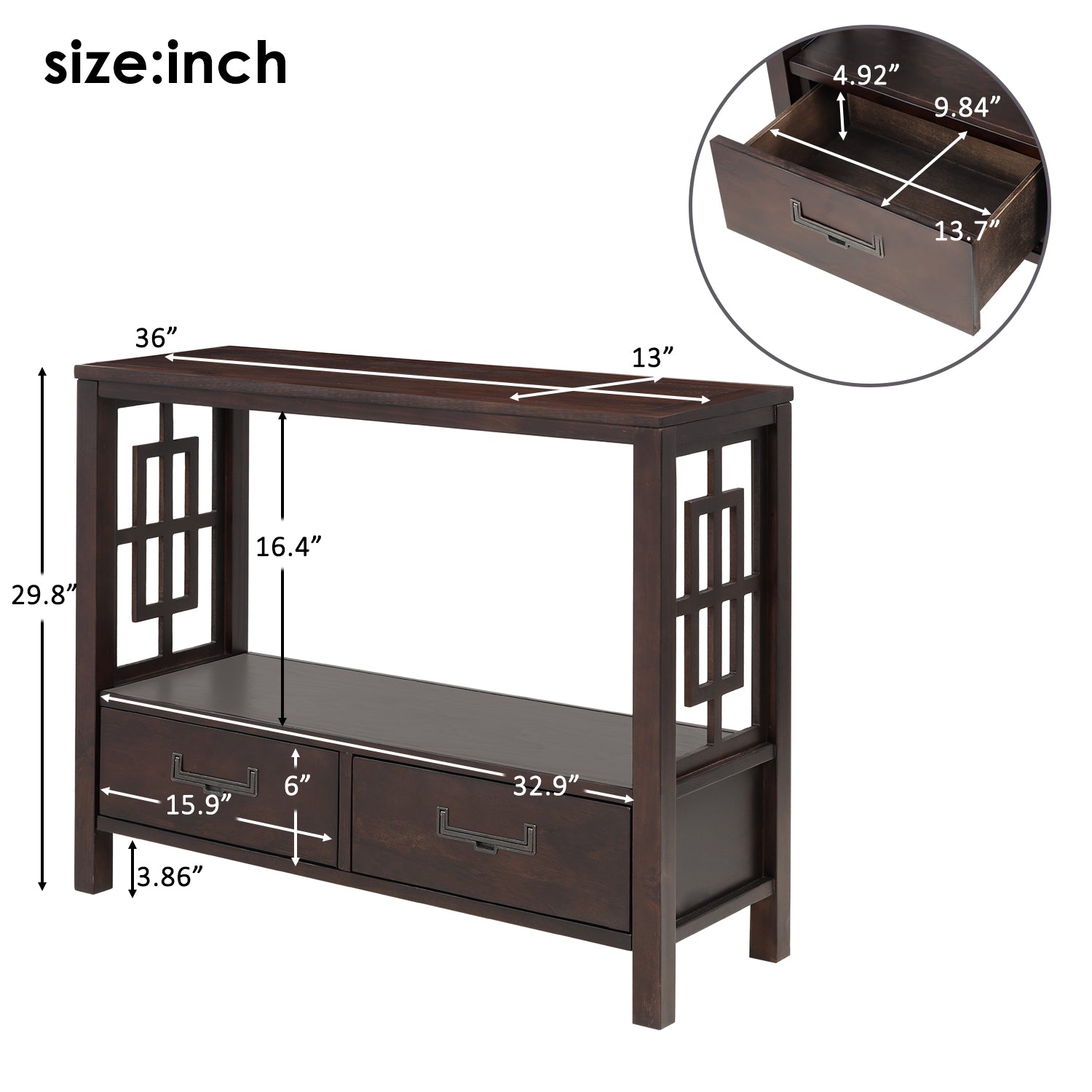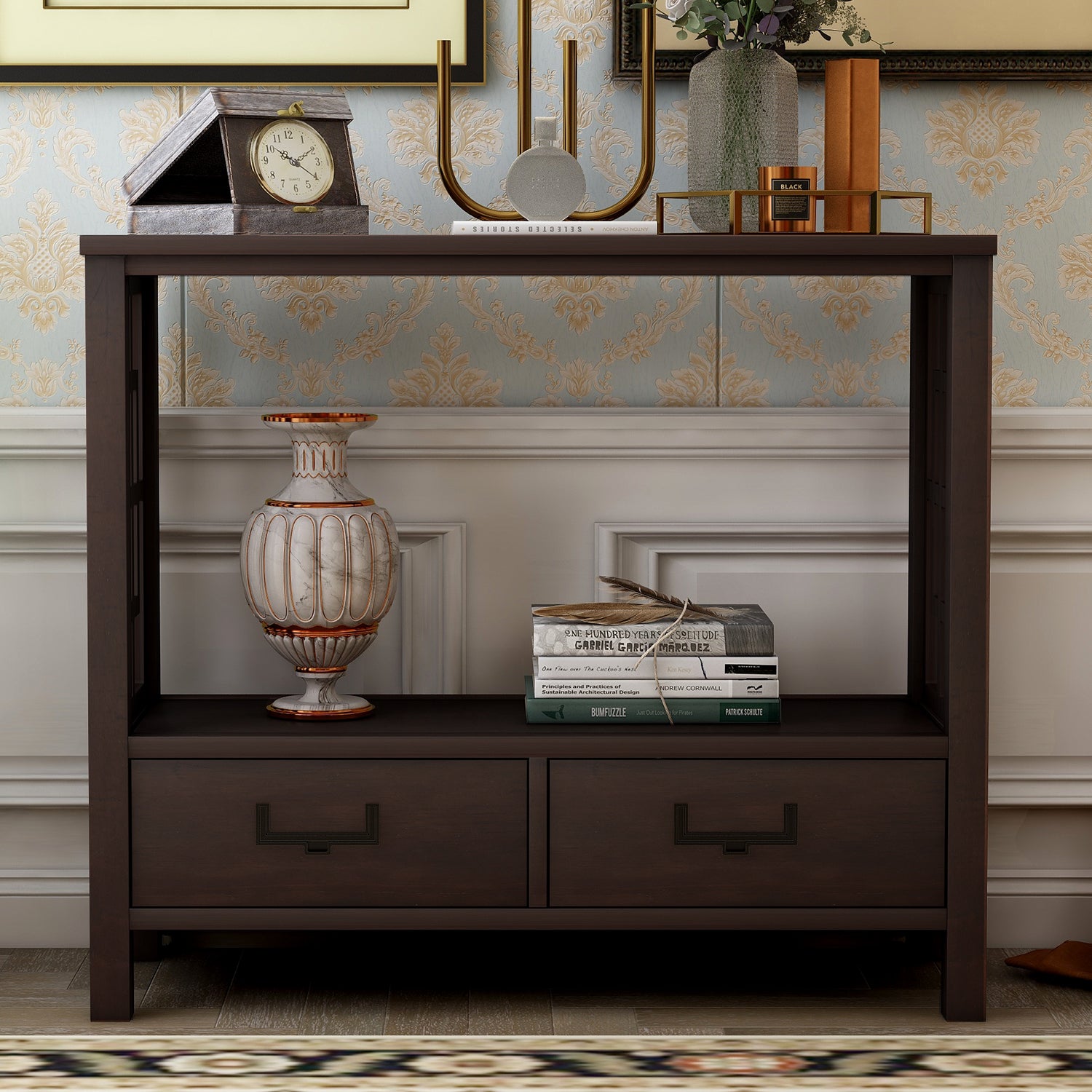 Console Sofa Table with Two Bottom Drawers, Farmhouse Narrow Sofa Table
