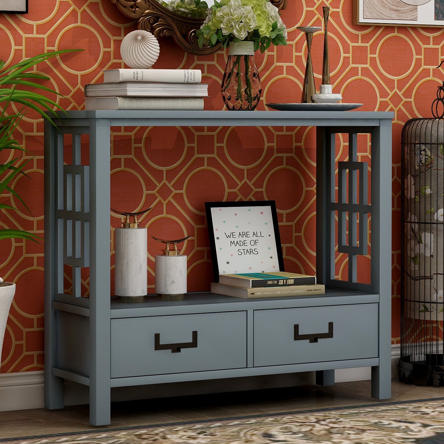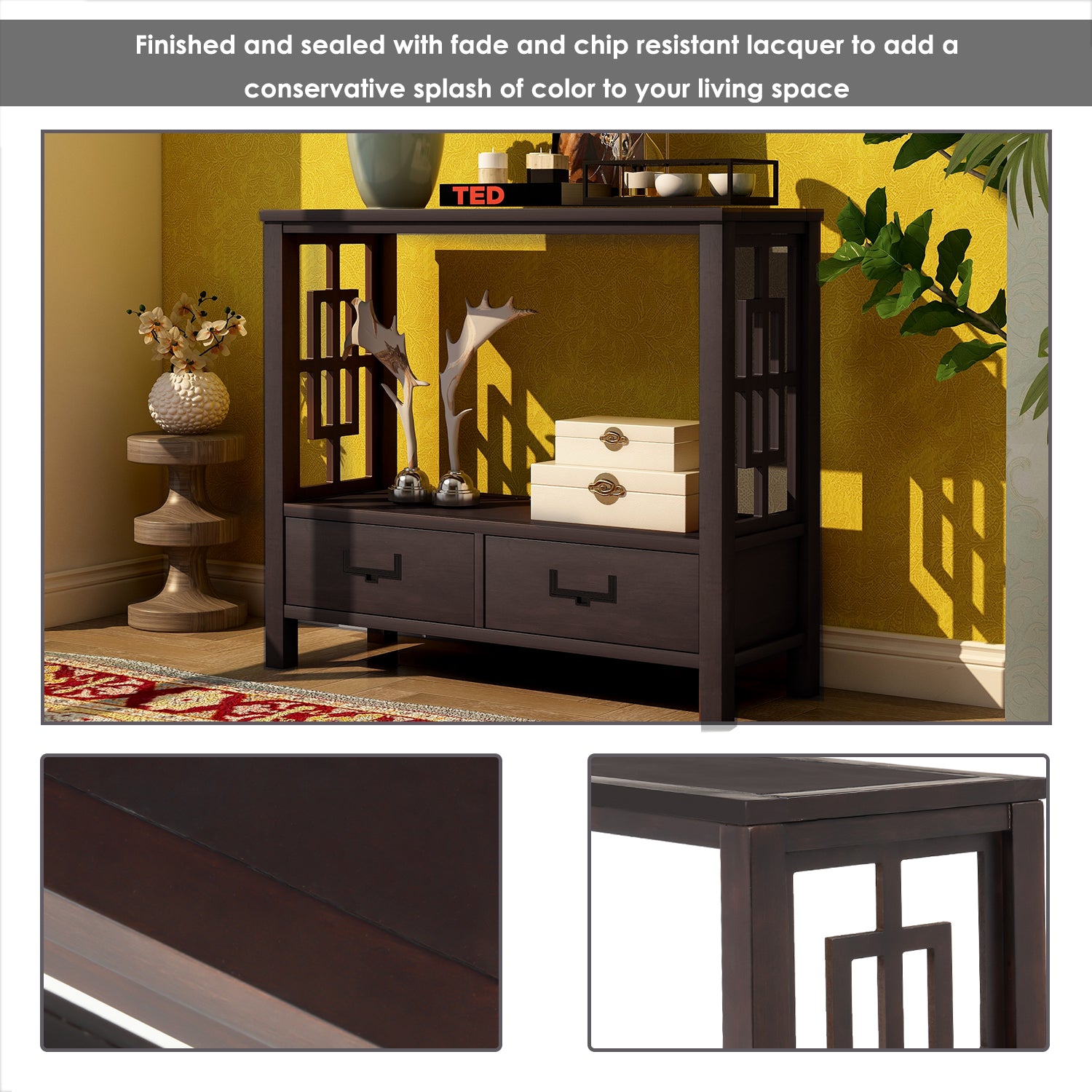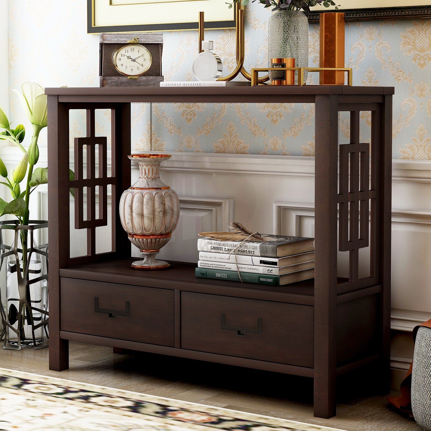 Console Sofa Table with Two Bottom Drawers, Farmhouse Narrow Sofa Table