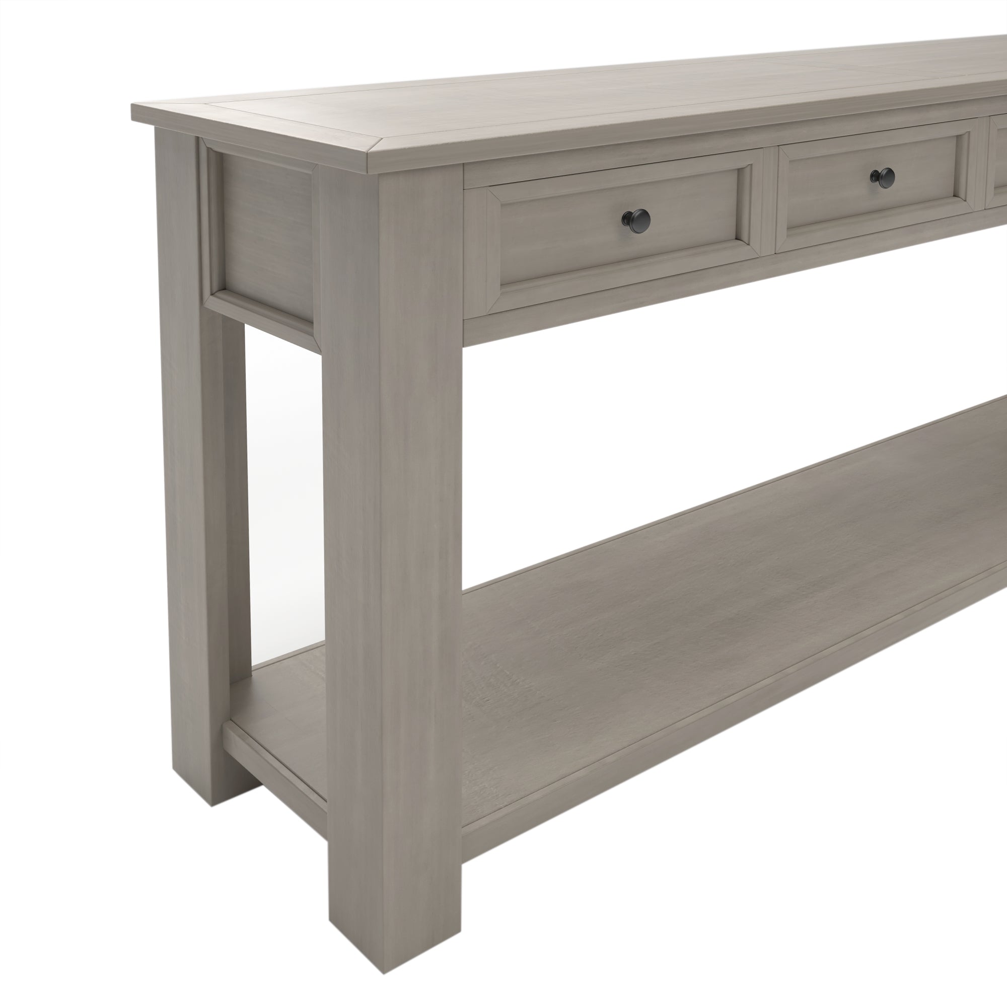 LARGE STORAGE SPACE: Dimensions: 64.2"L× 15"W× 30"H. The console table features with 4 drawers and a fixed lower shelf and long enough tabletop which provide enough storage space. You can put some decorations like flowers, photos, books or other daily items on the shelves. The drawers offer additional space for keys, remote controls and other small things.