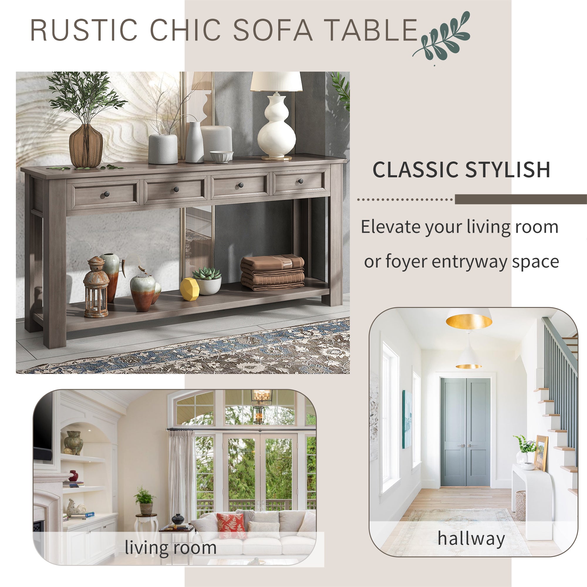 RUSTIC CHIC SOFA TABLE: Classic accent table fits perfectly in any living room. What a stylish piece of console table set to elevate your living room or foyer entryway space!
