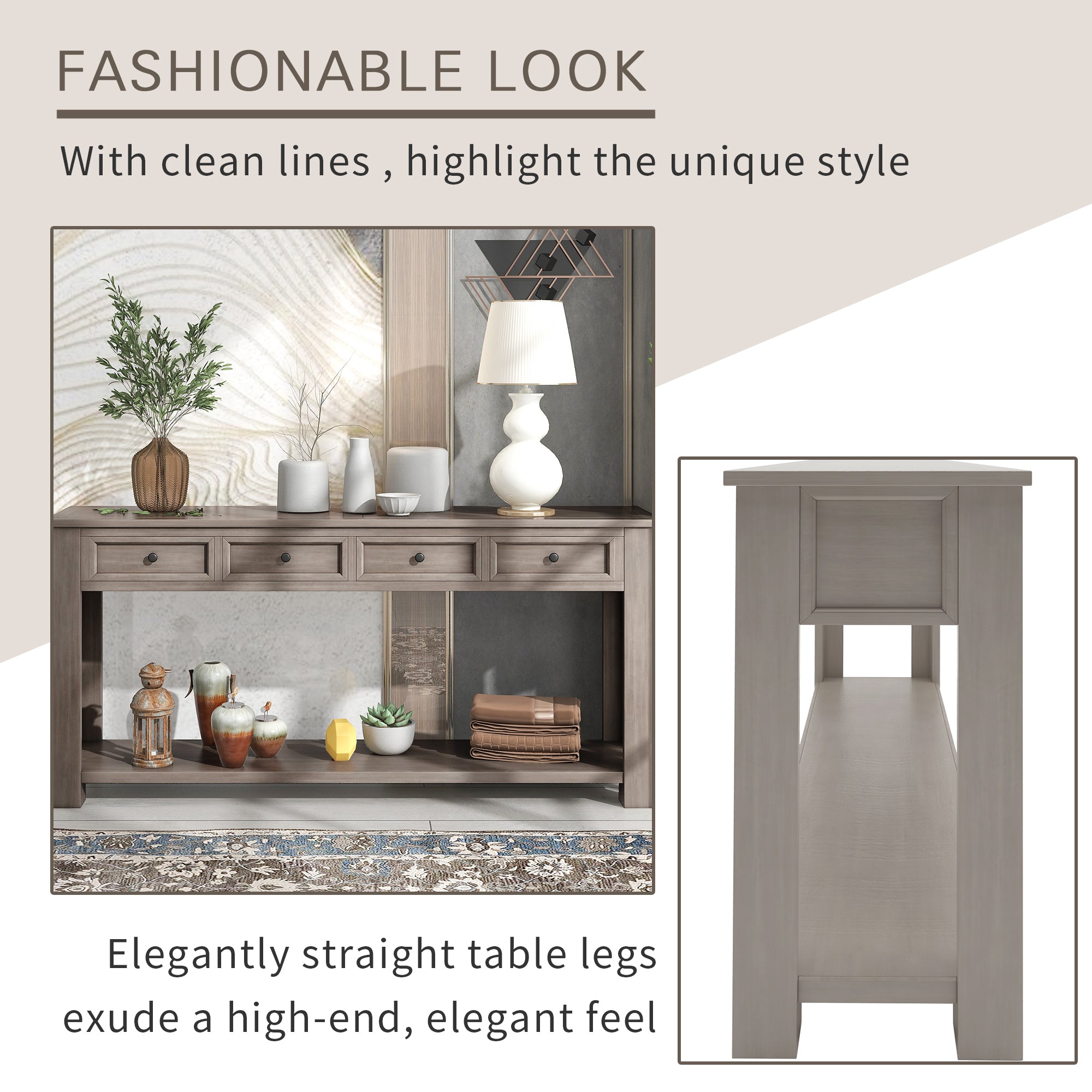 FASHIONABLE LOOK: Rectangular console table with clean lines , elegantly straight table legs exude a high-end, elegant feel. It decorates your house and highlight the unique style.