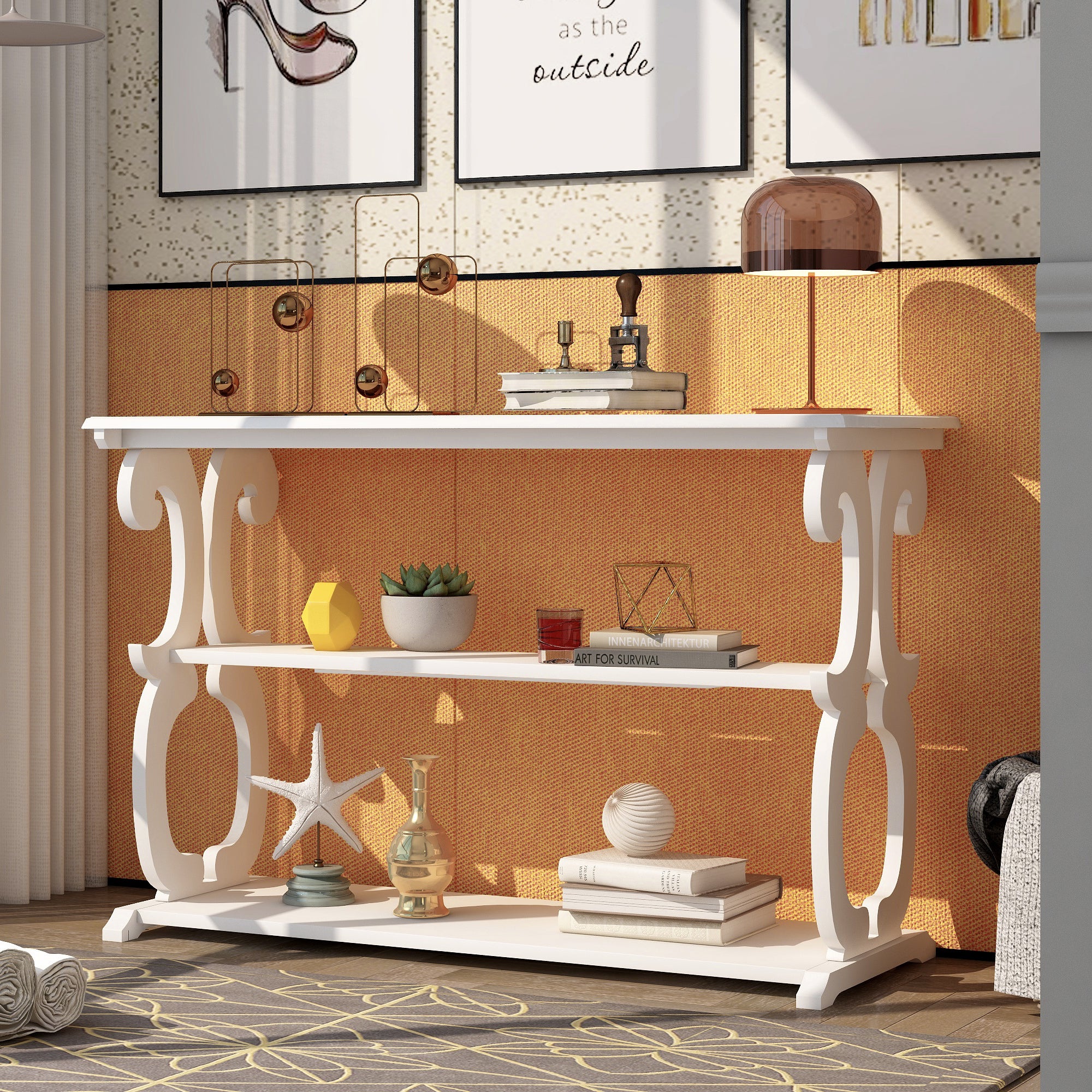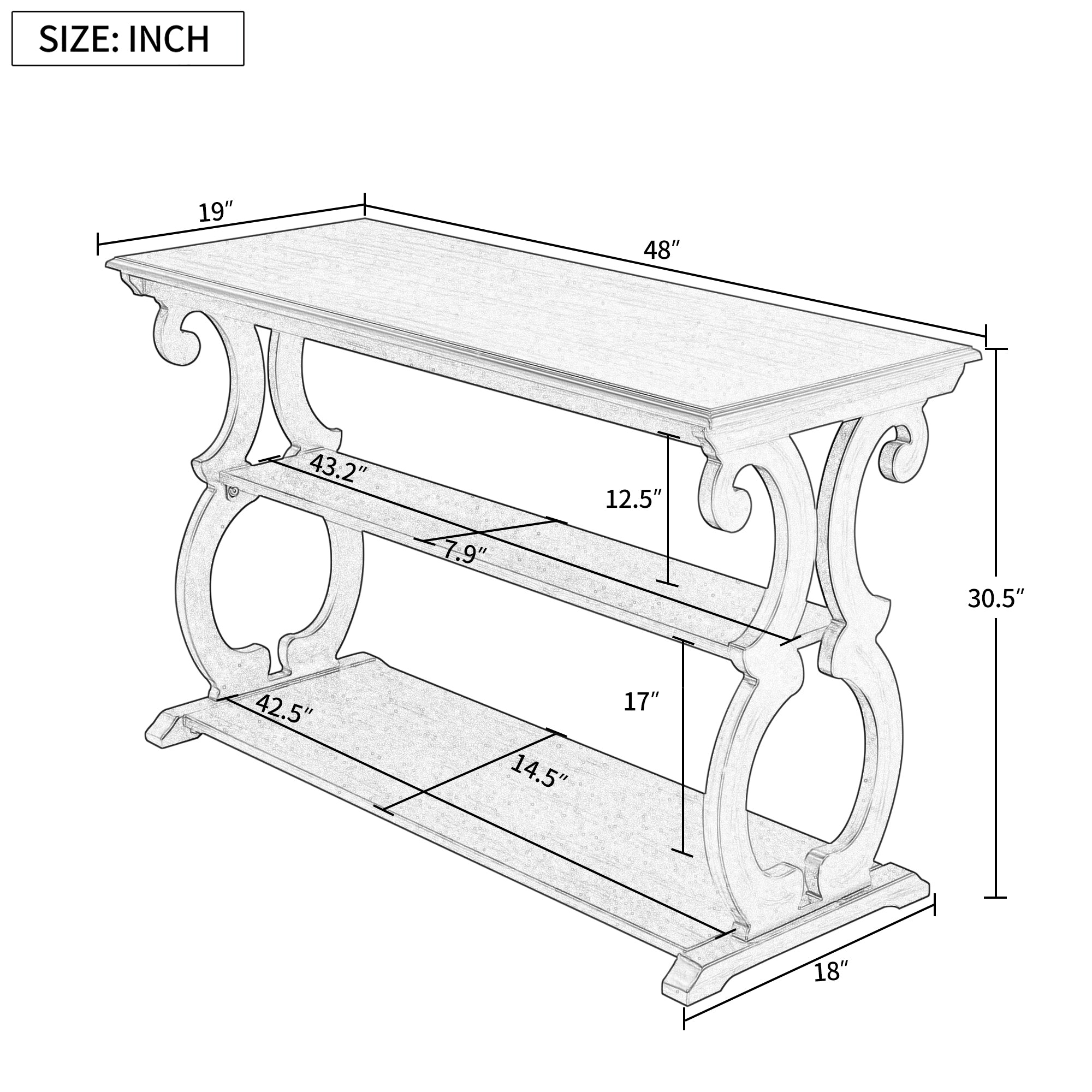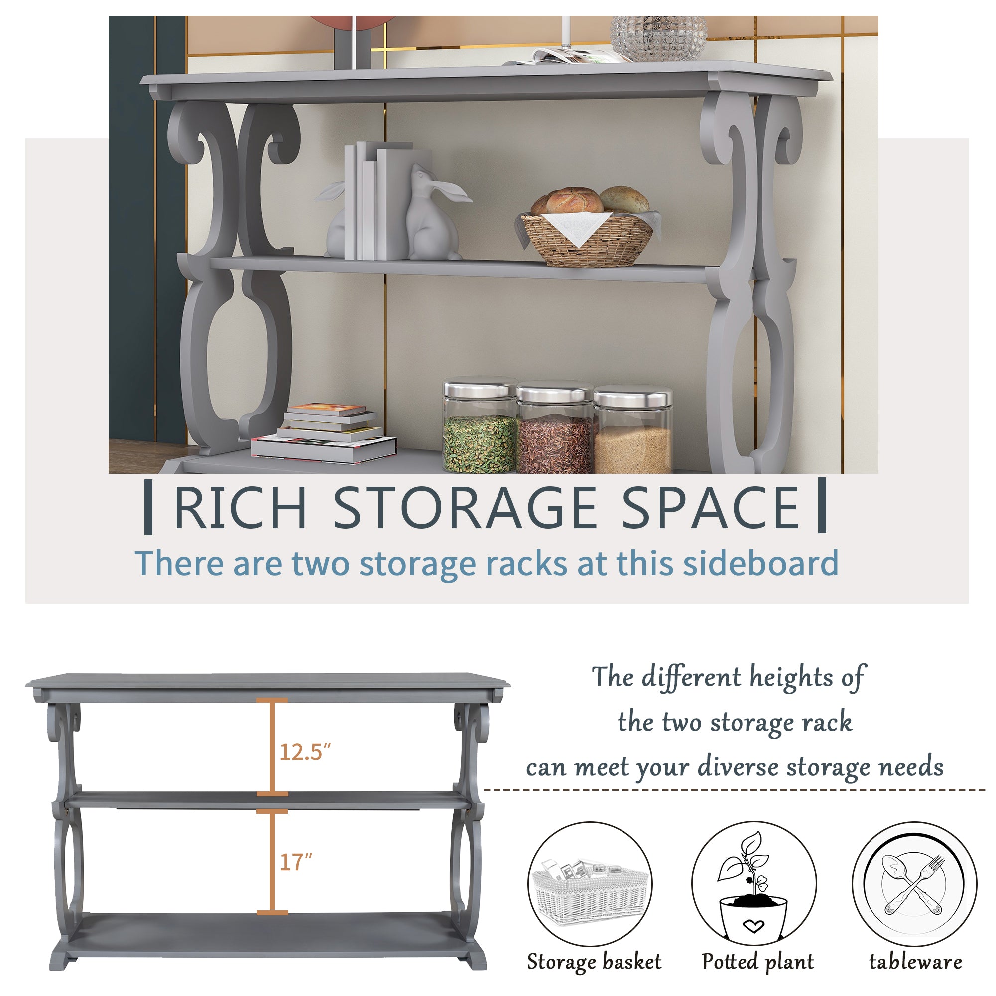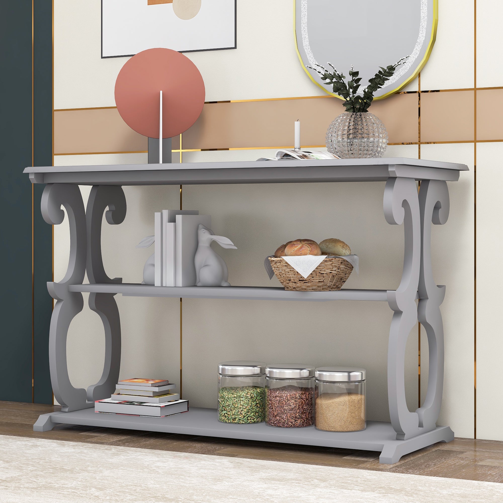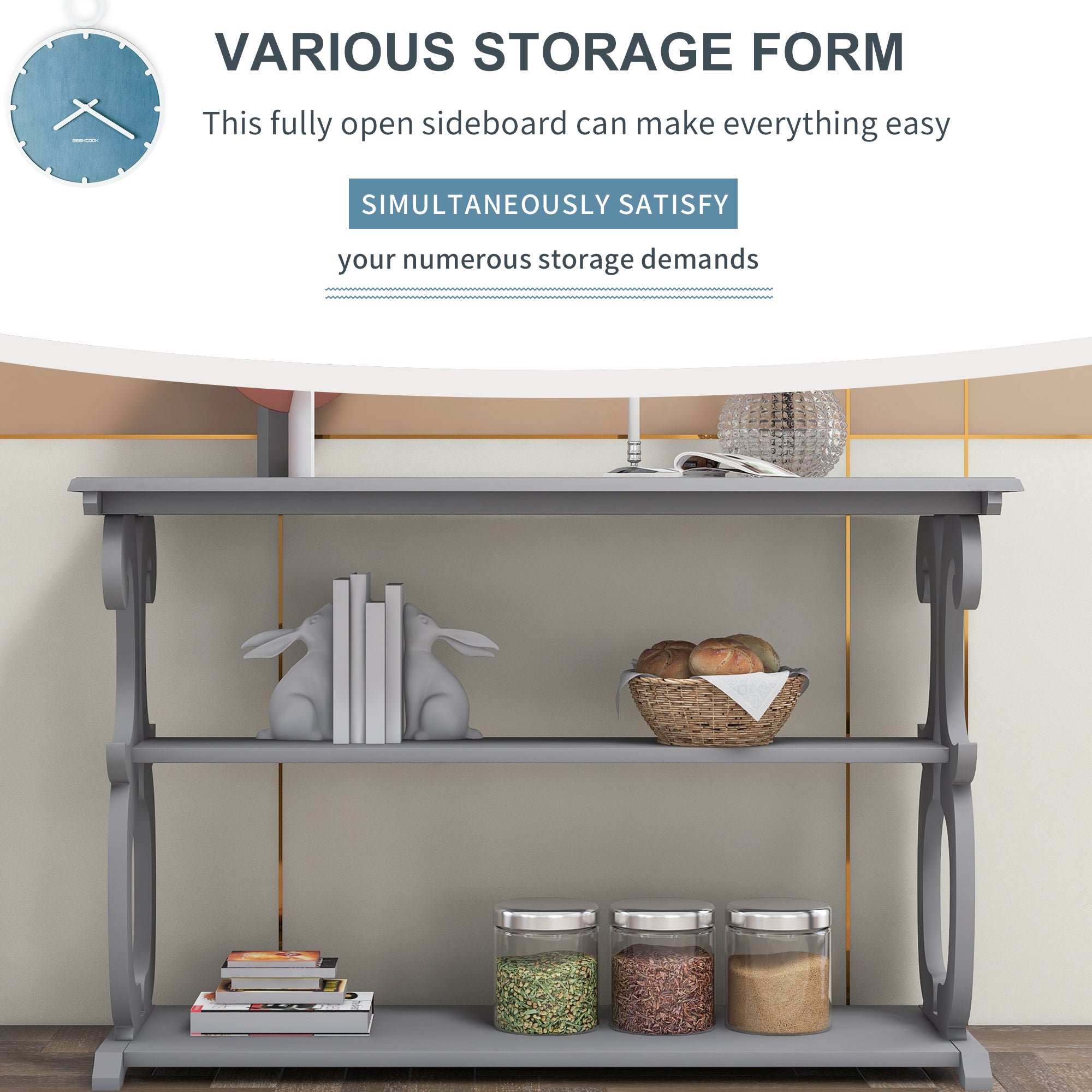 Console Table Sideboard with 3-Tier Open Storage Shelf, Vintage Carved Design Living room