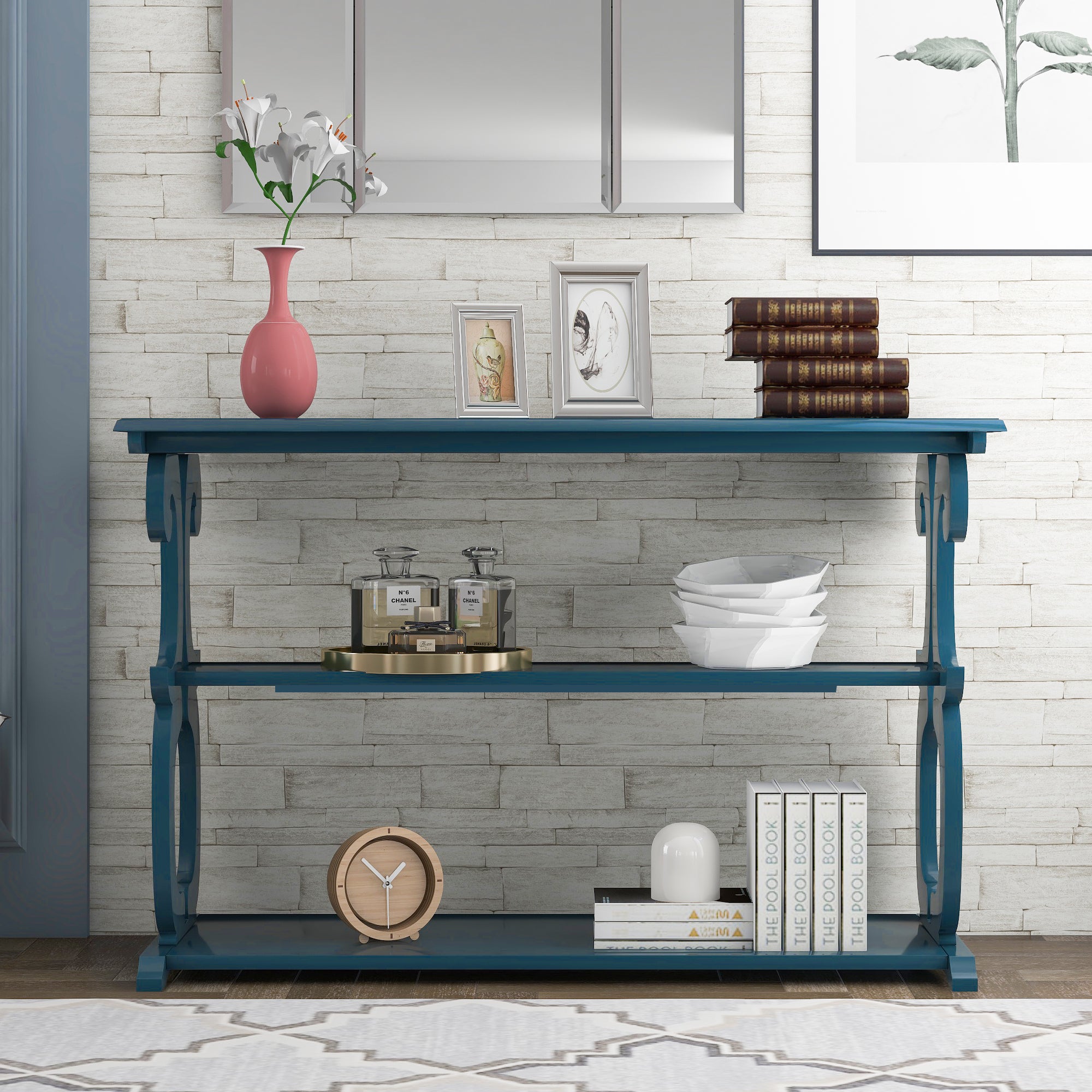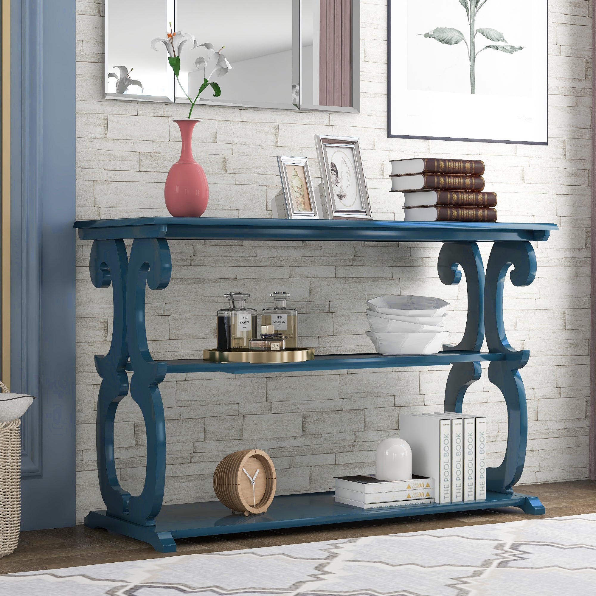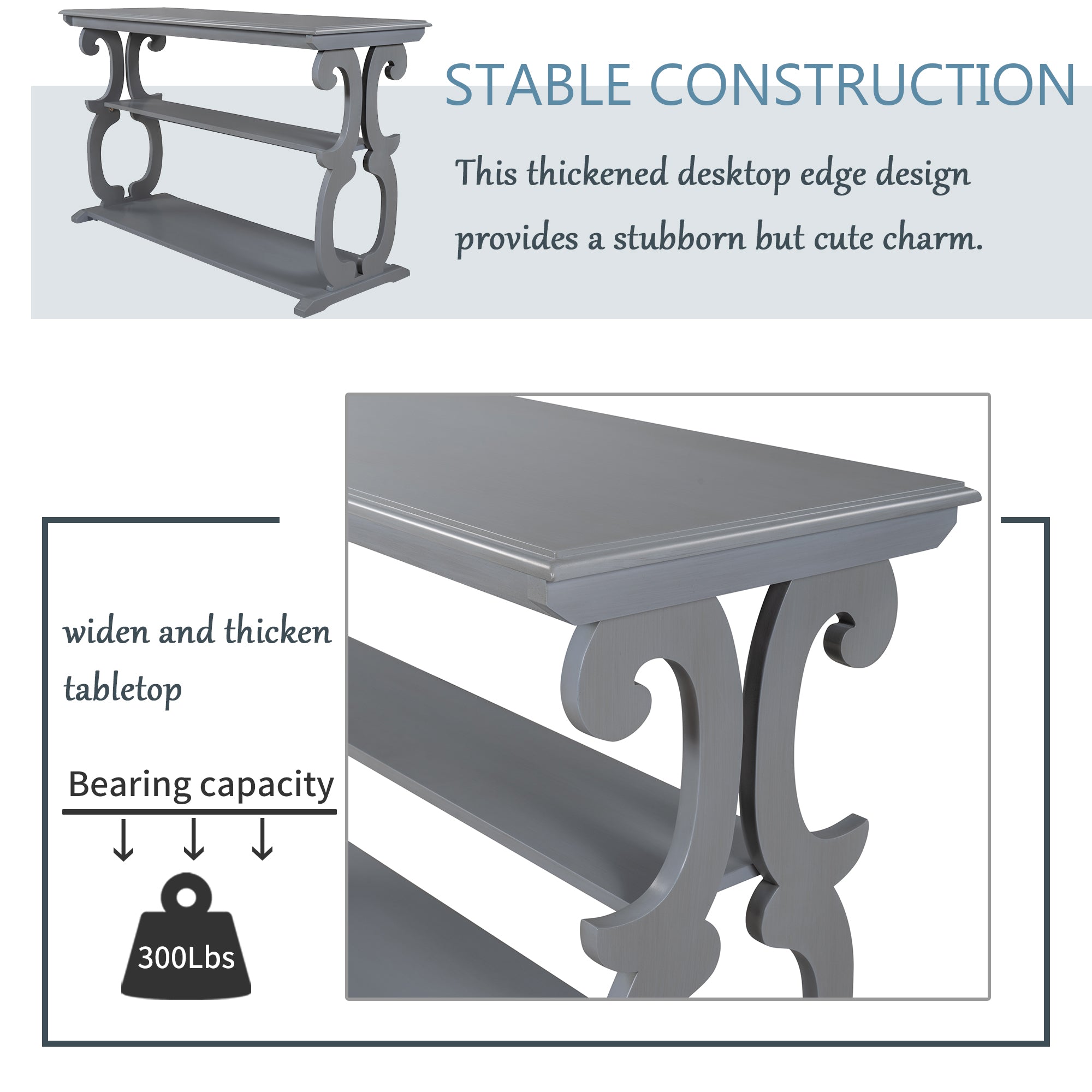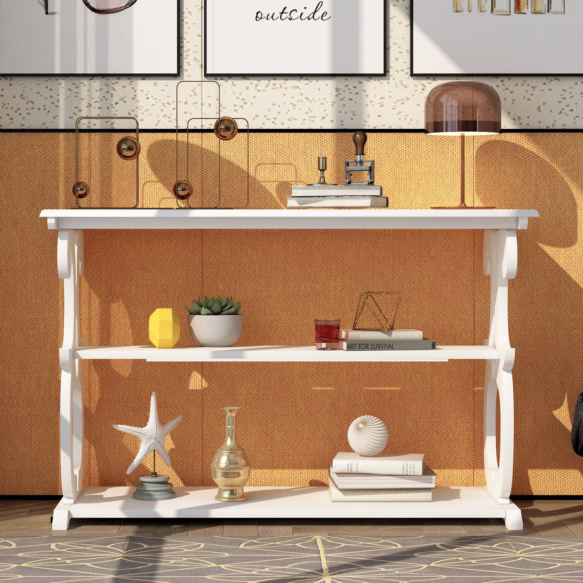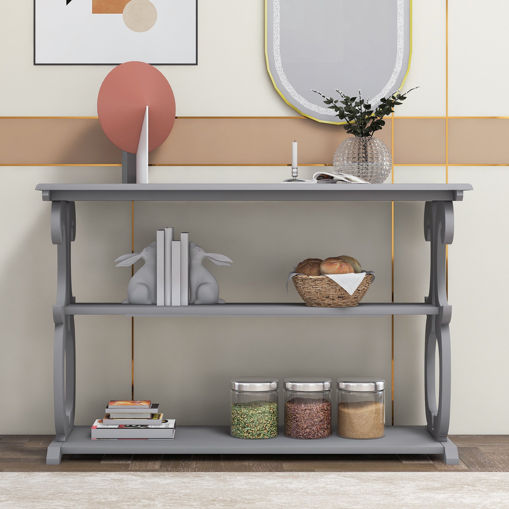 Console Table Sideboard with 3-Tier Open Storage Shelf, Vintage Carved Design Living room