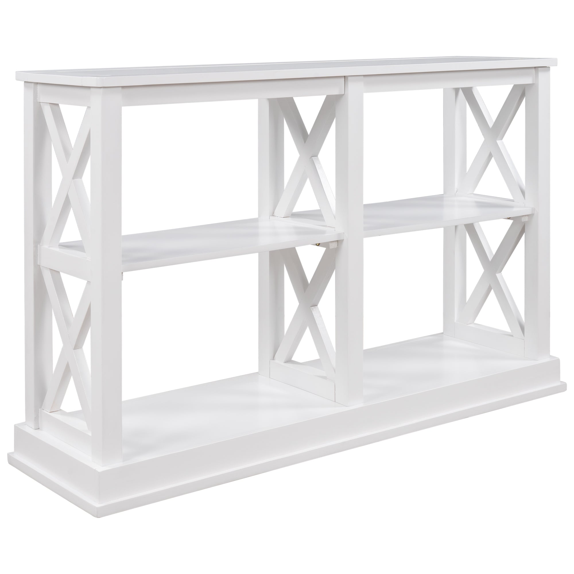Console Table with 3-Tier Open Storage Spaces and "X" Legs, Narrow Sofa Entry Table