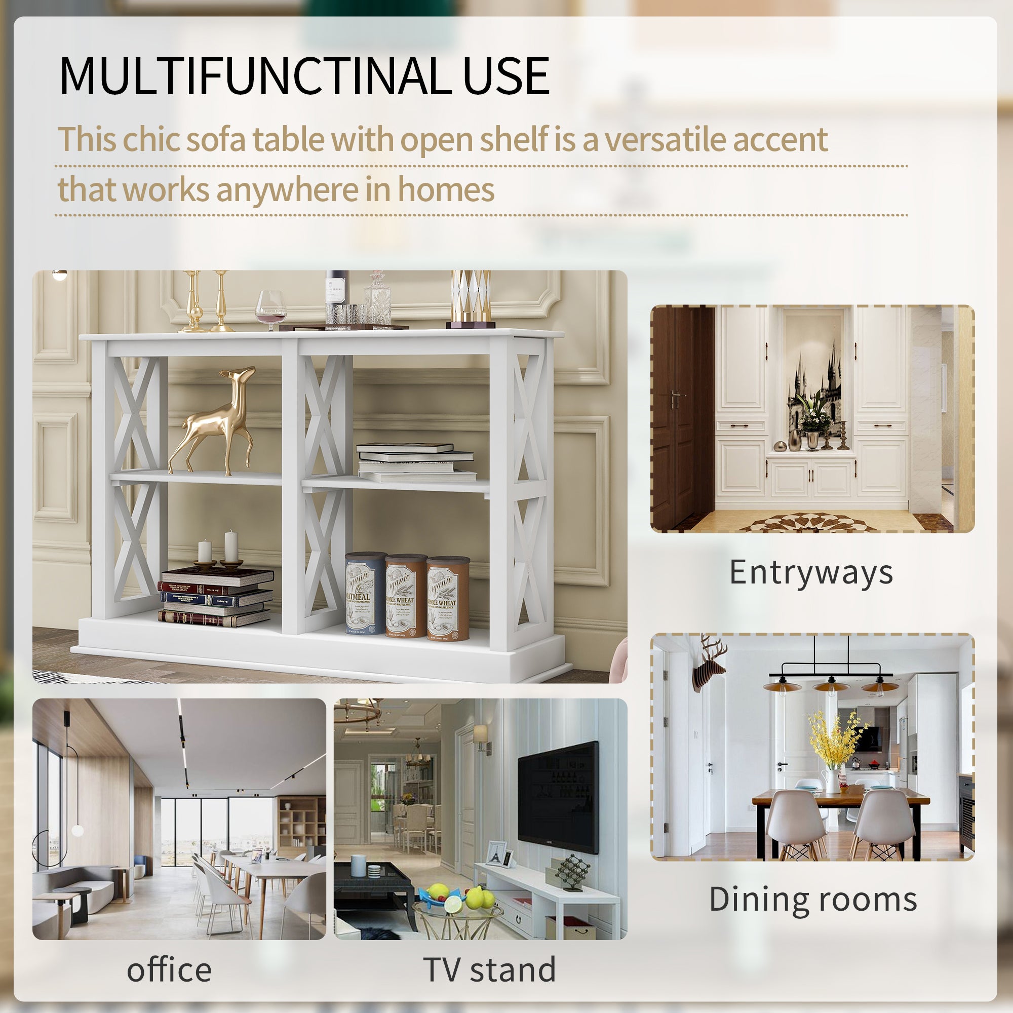 MULTI-FUNCTIONAL USE: This chic sofa table with open shelf is a versatile accent that works anywhere in homes-from the entryway wall to the back of a living room sofa, to the empty spaces in office. Great ideal as a console table, hallway table, entry table, entryway shelf or even works as a TV stand.