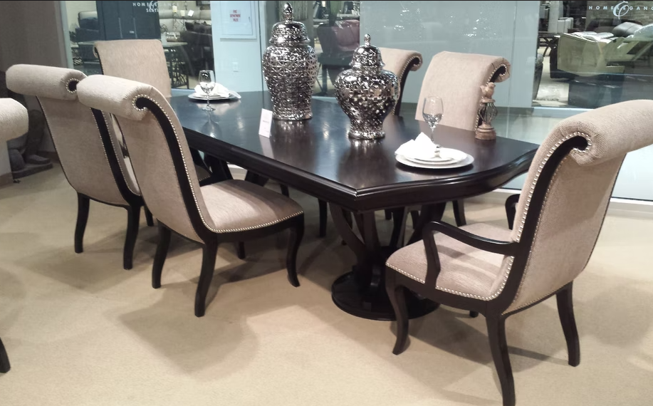 Features:-•Made of maple veneer, wood and engineered wood•Espresso finish•Separate extension leaf•Table extends by pulling both ends and dropping in leaf•Seats capacity 6Product Description:-Sophisticated soft contemporary design is achieved in your dining room with the addition of this Collection. Rectangular double pedestal table features a distinct birdcage style base. An espresso finish highlights the unique veneer pattern.Product Dimensions:-Overall Dimension: 45.5" x 84" - 106.5" x 30.5"HApron to floor: 26.75"Length of leaf: 22" x 1Listing Includes :- One Rectangular Dining Table Only.Chairs: NOT INCLUDEDSimple Assembly Required.Shipment Service:Shipping Service Include Curb Side Delivery With Free Lift Gate Service.NOTE : No Inside Home Delivery.Shipment will take around 8-14 Business days