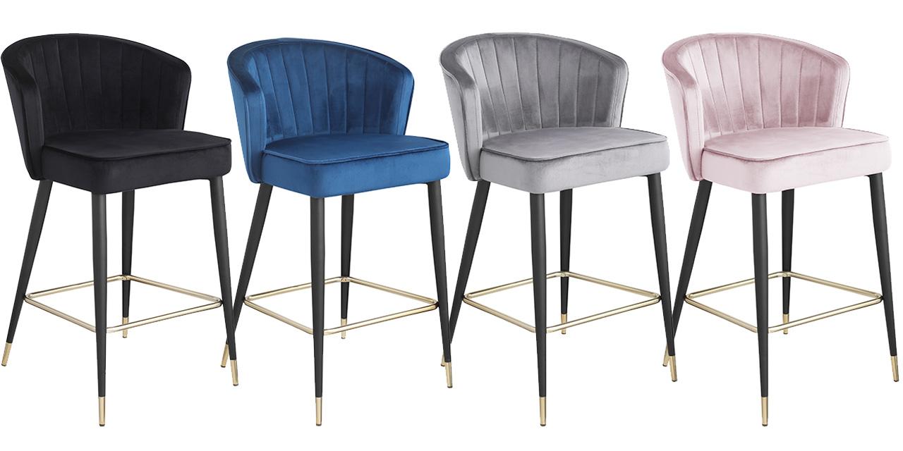 - MODERN AND COMFORTABLE BAR STOOLS: The bar stools are made of Metal legs, padded with foam and covered with velvet fabric , The barstools are ergonomically designed: You can lean against the back of the bar chairs and put your legs on the footrest for a better sitting position. Modern bar chairs are suitable for many places, such as dining room, bedroom, balcony, living room, resting room, coffee room ,restaurant and so on.