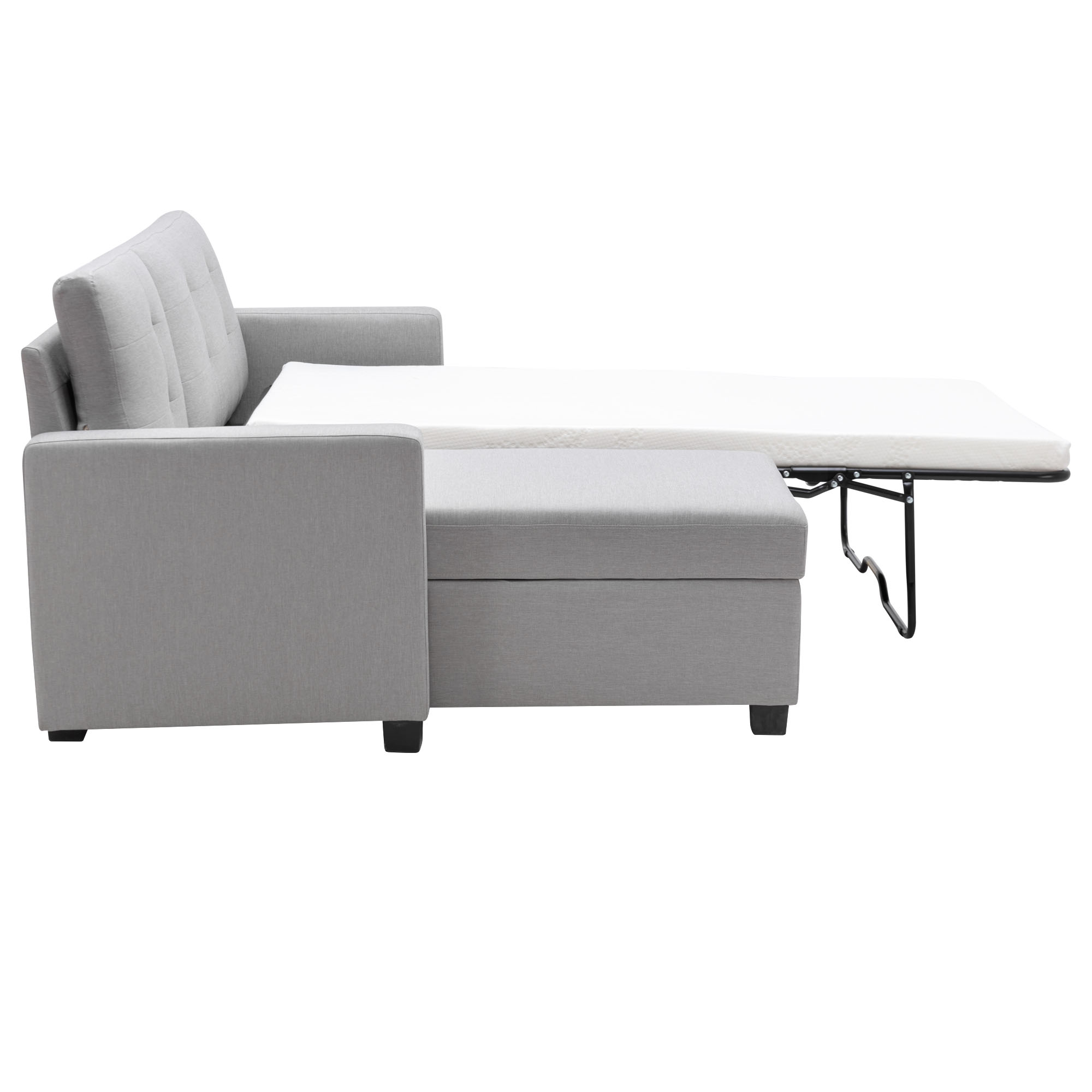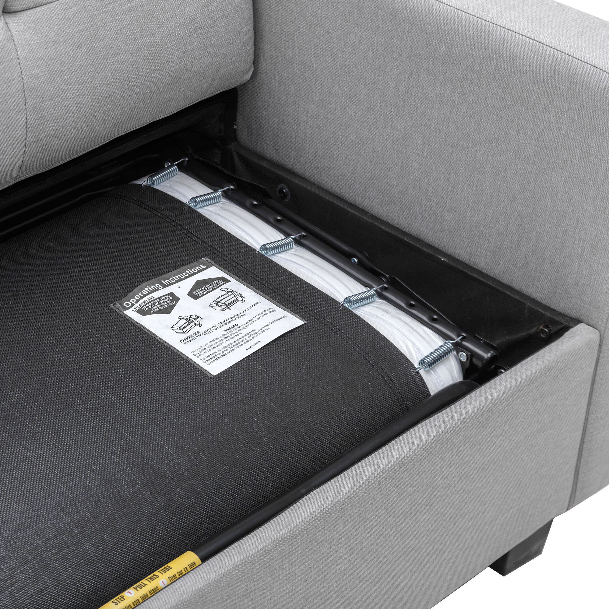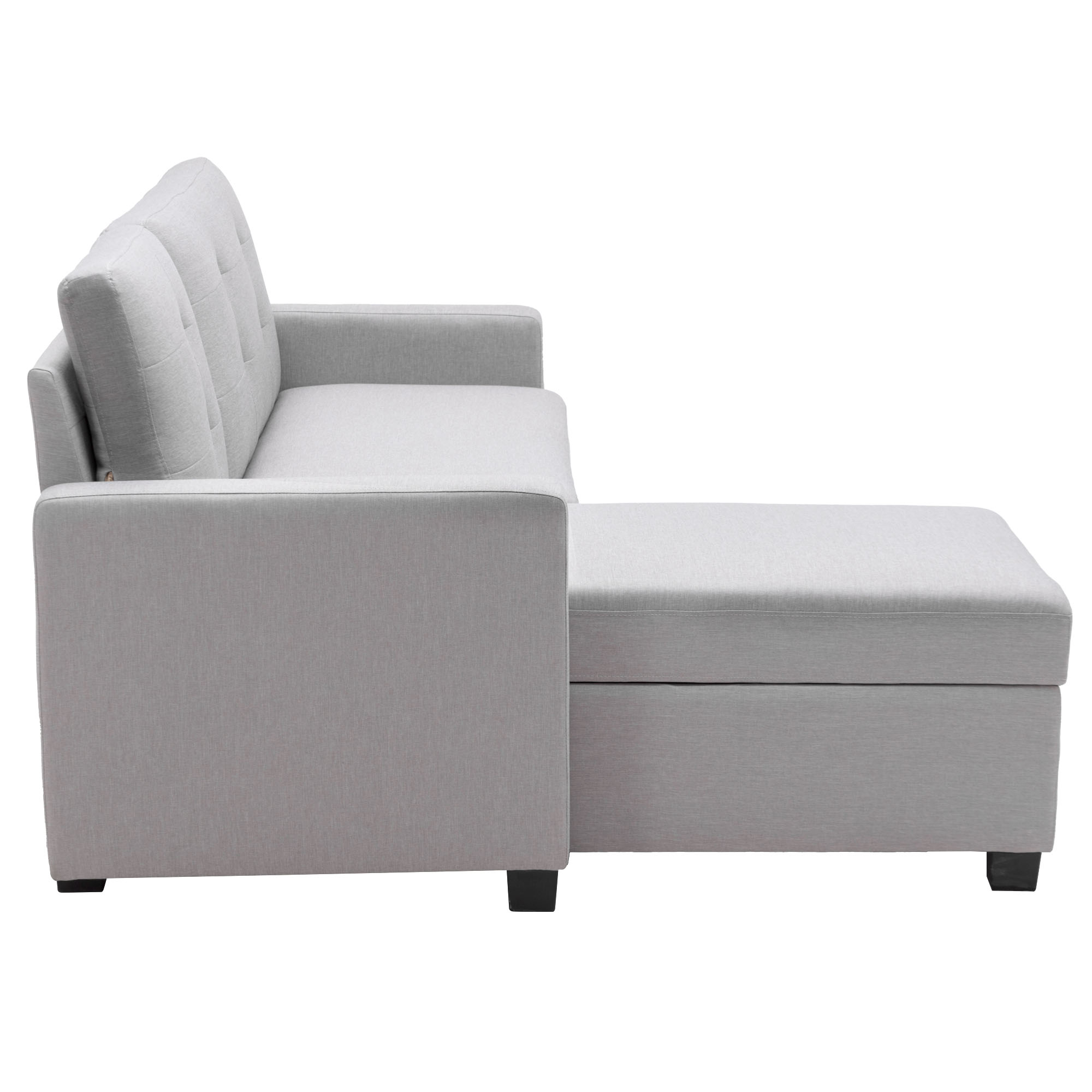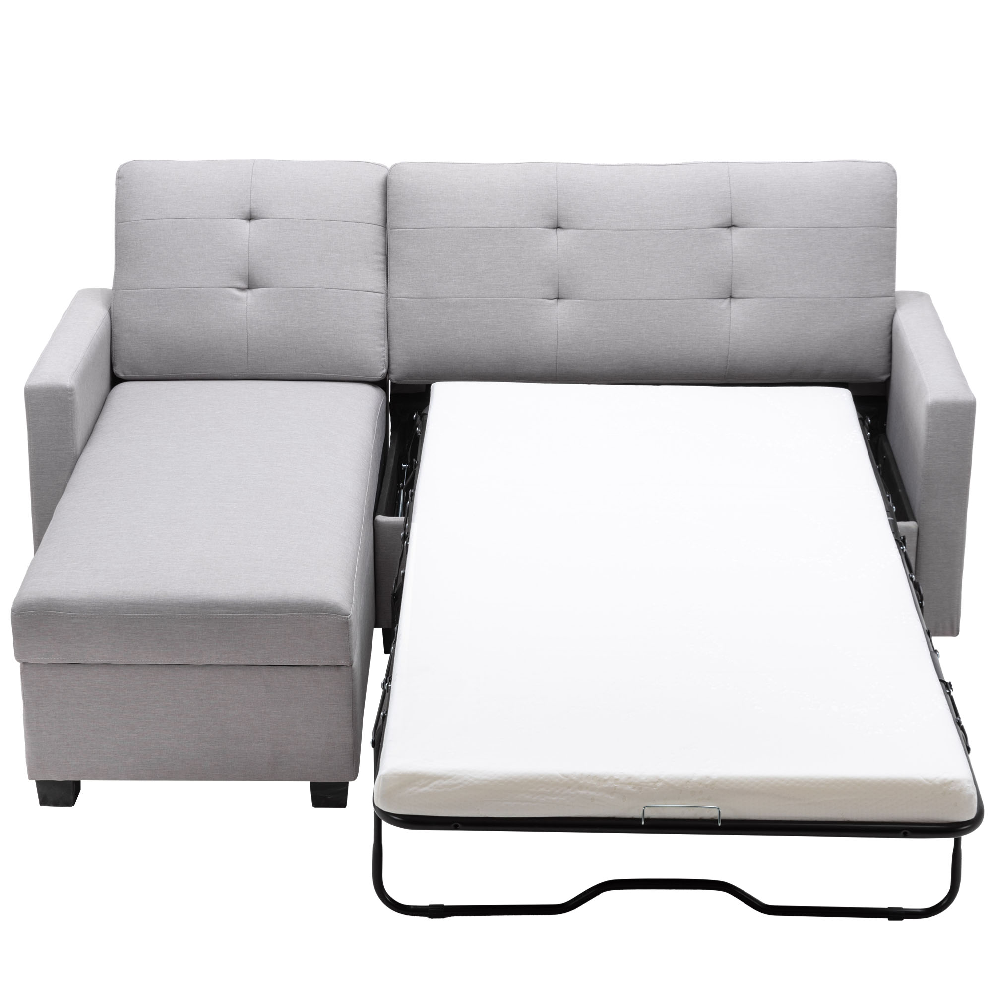 ▲Selling Points【Multi-Function Sleeper Couch 】The pull out sleeper sofa is a comfortable couch that can be easily and quickly converted into a visitor bed when a friend needs to stay overnight.【Sofa Bed Includes Mattresses】This sofa bed includes a foldable mattress, you don't need to buy an extra mattress, just simply prepare a sheet, can enjoy a comfortable sleep.【Free Combination】You can change the shape of the couch by moving the position of the chaise. The chaise can be assembled both on the left or on the right.You can adjust your living room funiture freely according to your needs and preferences.【Hidden Surprises】Bonus storage function under the chaise. It is not only a good choice for children ’s toys, but also can store blankets ,magazines,and living room items.【Ultimate Comfort】Sofa wrapped in high-quality linen, skin-friendly, giving you a gentle touch; Cushions filled with high density foam, which is soft and elastic, giving you an enjoyable rest experience.▲Product Details: