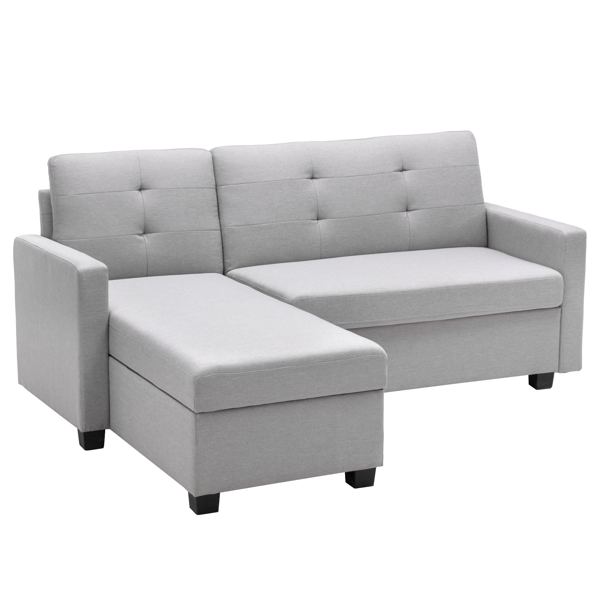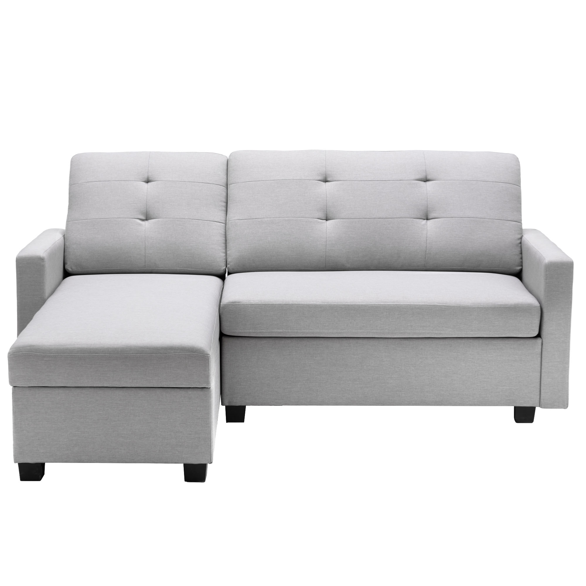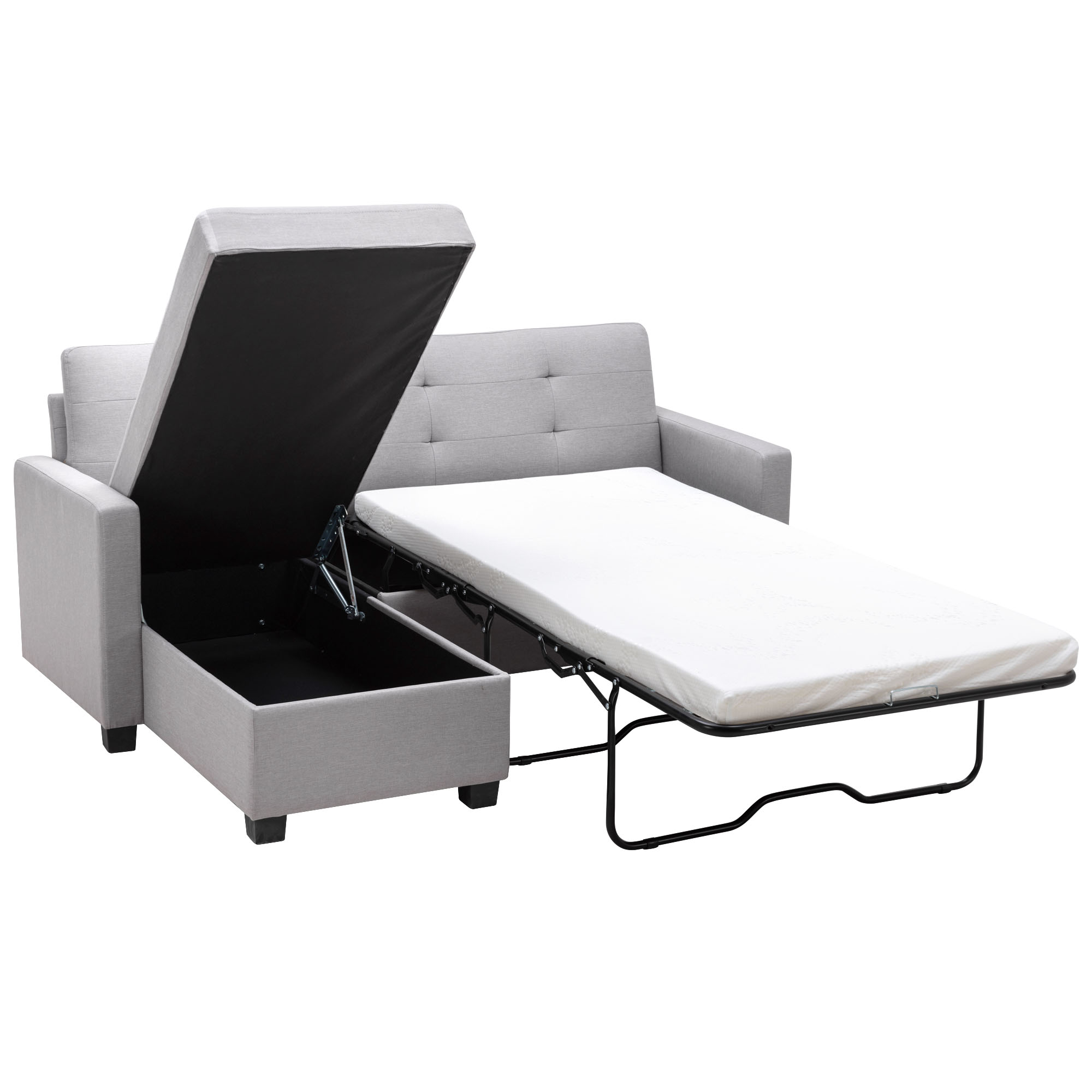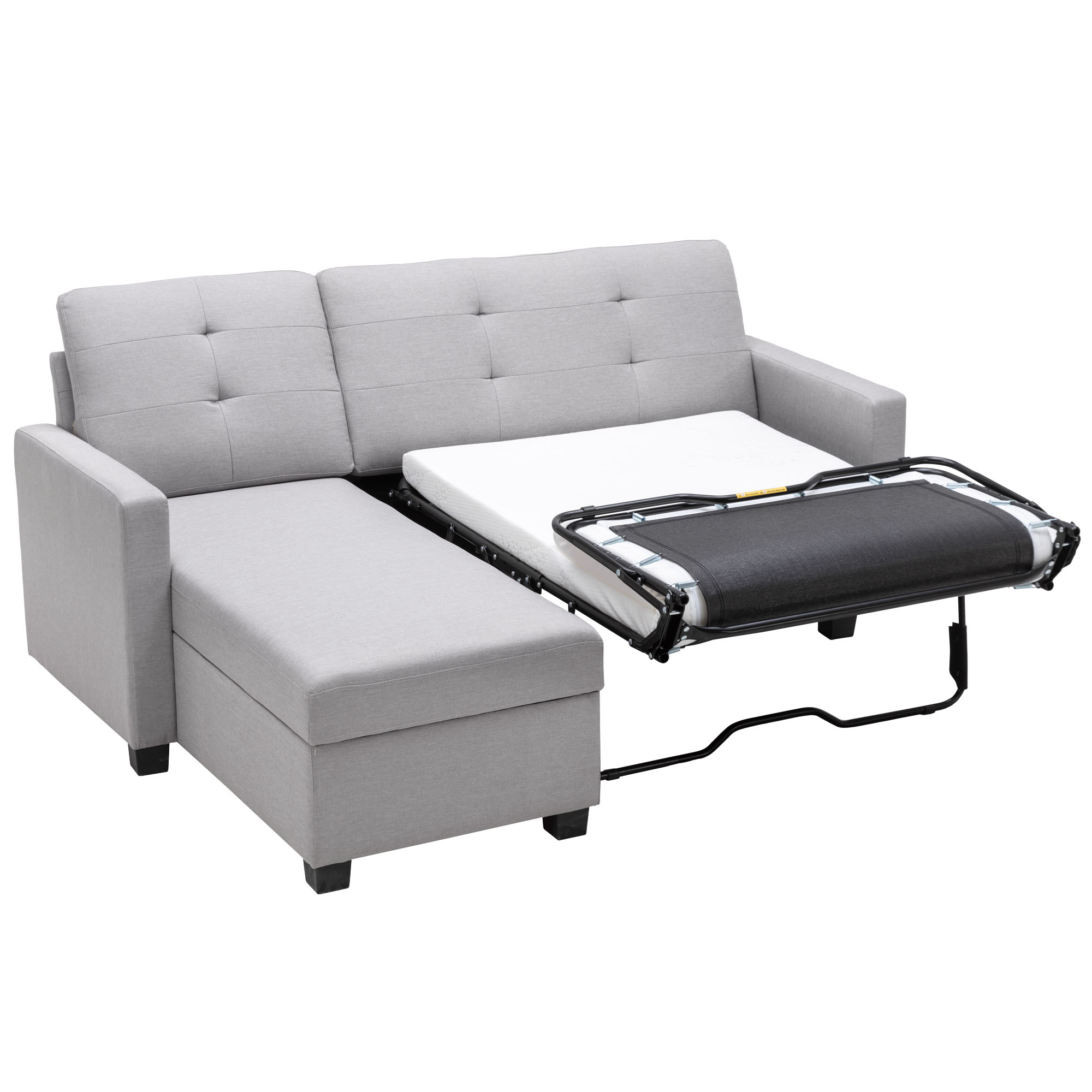 ▲Selling Points【Multi-Function Sleeper Couch 】The pull out sleeper sofa is a comfortable couch that can be easily and quickly converted into a visitor bed when a friend needs to stay overnight.【Sofa Bed Includes Mattresses】This sofa bed includes a foldable mattress, you don't need to buy an extra mattress, just simply prepare a sheet, can enjoy a comfortable sleep.【Free Combination】You can change the shape of the couch by moving the position of the chaise. The chaise can be assembled both on the left or on the right.You can adjust your living room funiture freely according to your needs and preferences.【Hidden Surprises】Bonus storage function under the chaise. It is not only a good choice for children ’s toys, but also can store blankets ,magazines,and living room items.【Ultimate Comfort】Sofa wrapped in high-quality linen, skin-friendly, giving you a gentle touch; Cushions filled with high density foam, which is soft and elastic, giving you an enjoyable rest experience.▲Product Details: