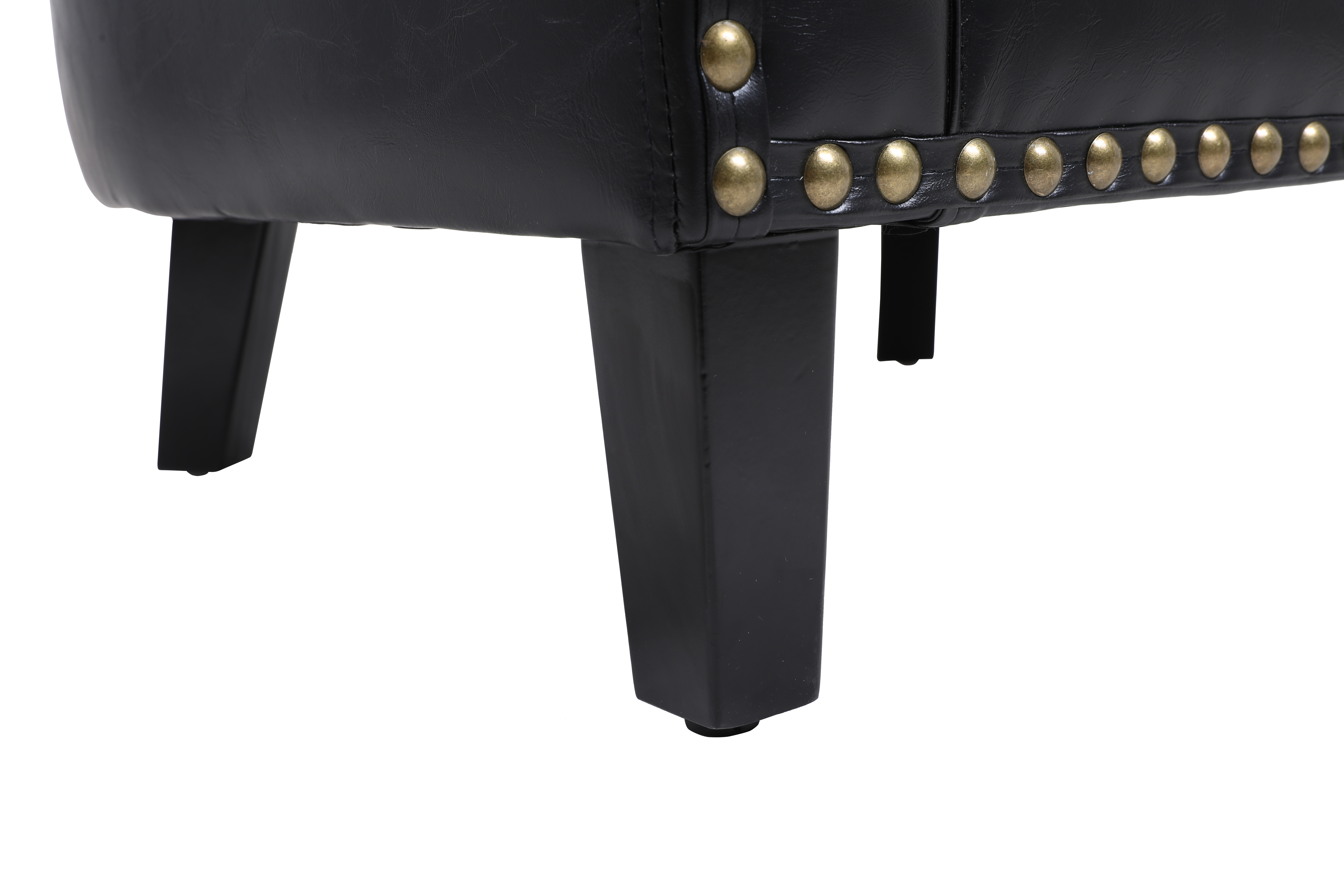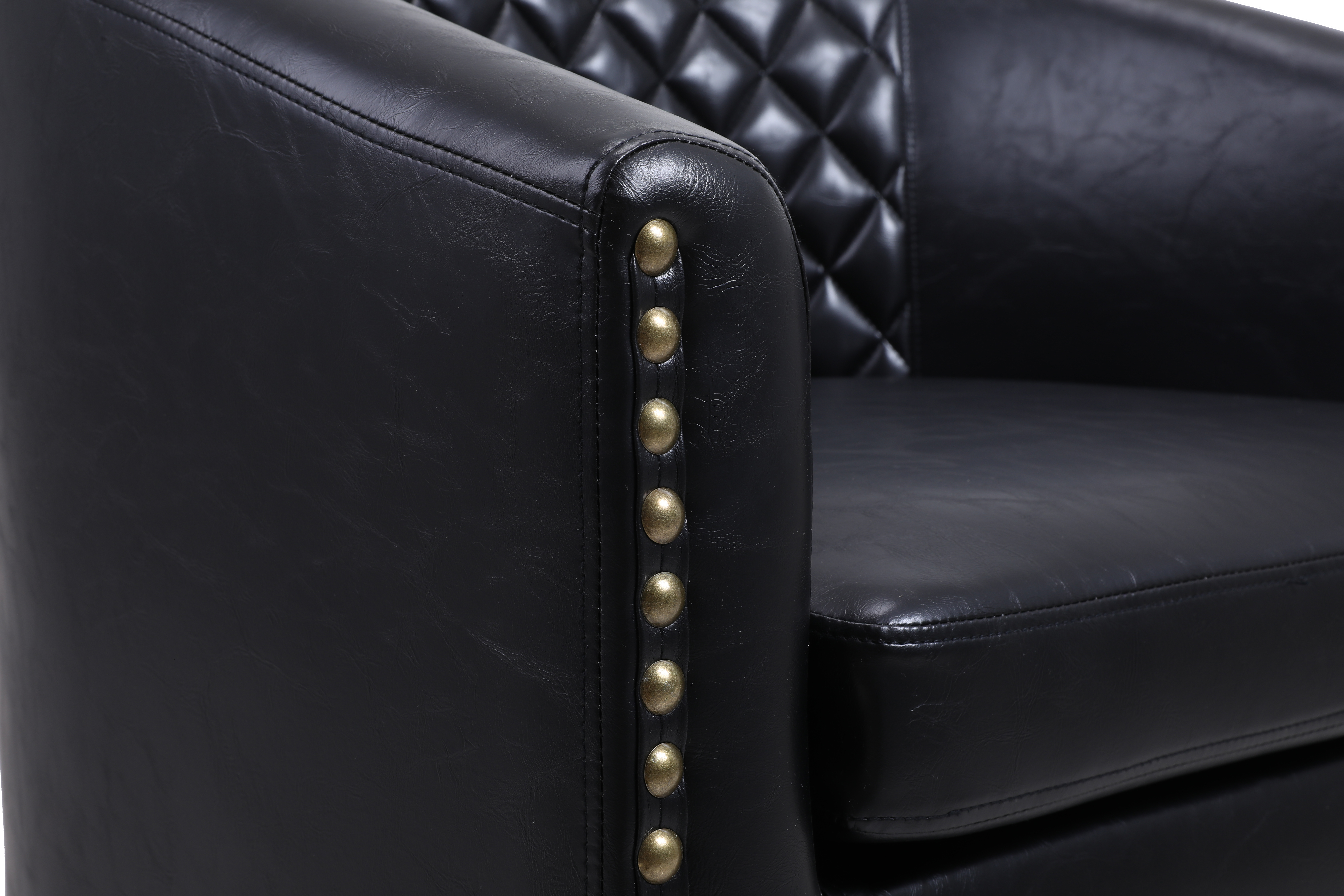 COOLMORE accent Barrel chair living room chair with nailheads and solid wood legs Black pu leather