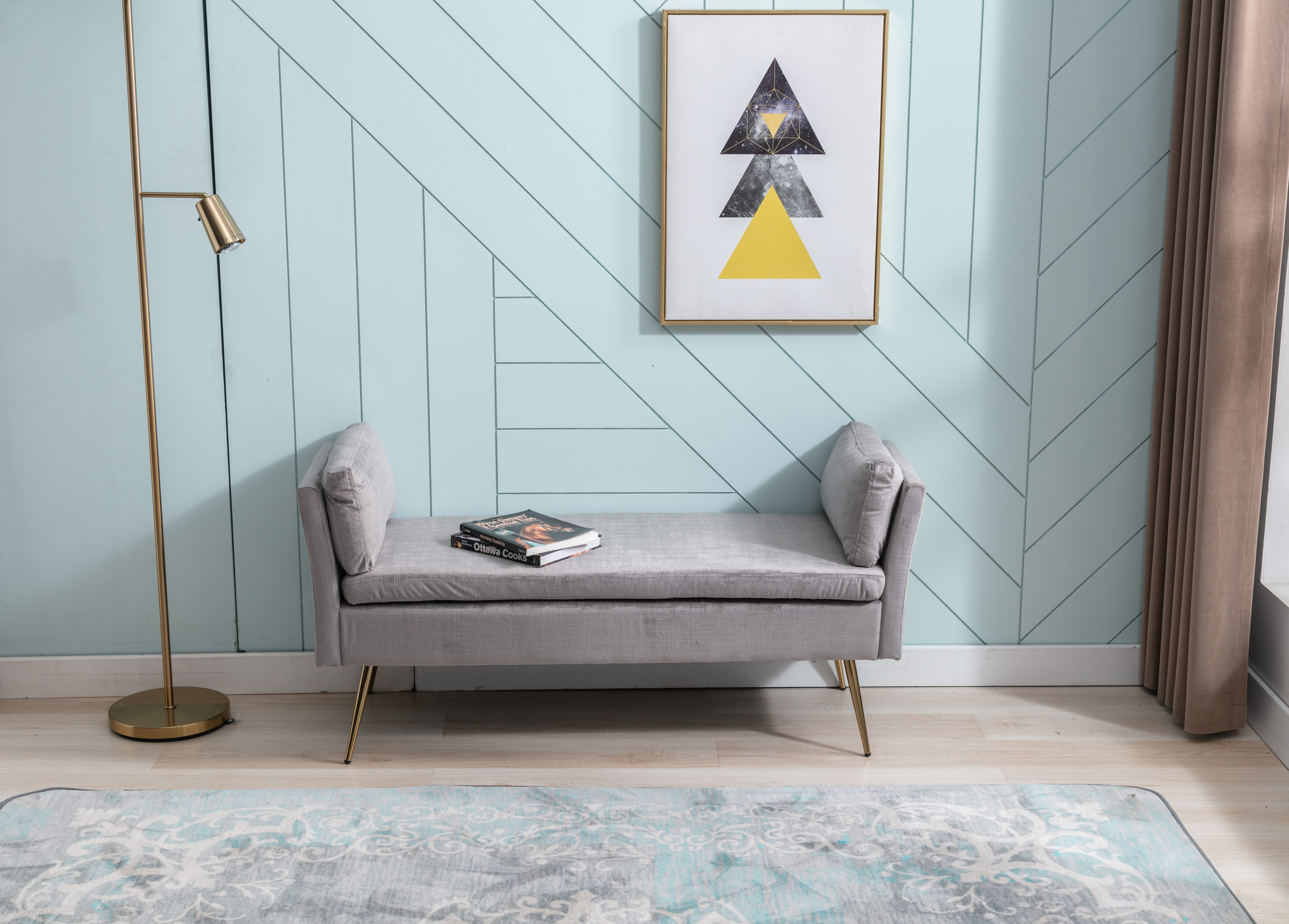 Finding the right style is necessary to help bring a room together and this chic, stylish upholstered bench is the perfect addition to any living room, bedroom, or entryway. It features a beautiful elegant exterior . along with sturdy metal legs and a roomy interior that is perfect for storing extra pillows and blankets, shoes, or other clothing and accessories.