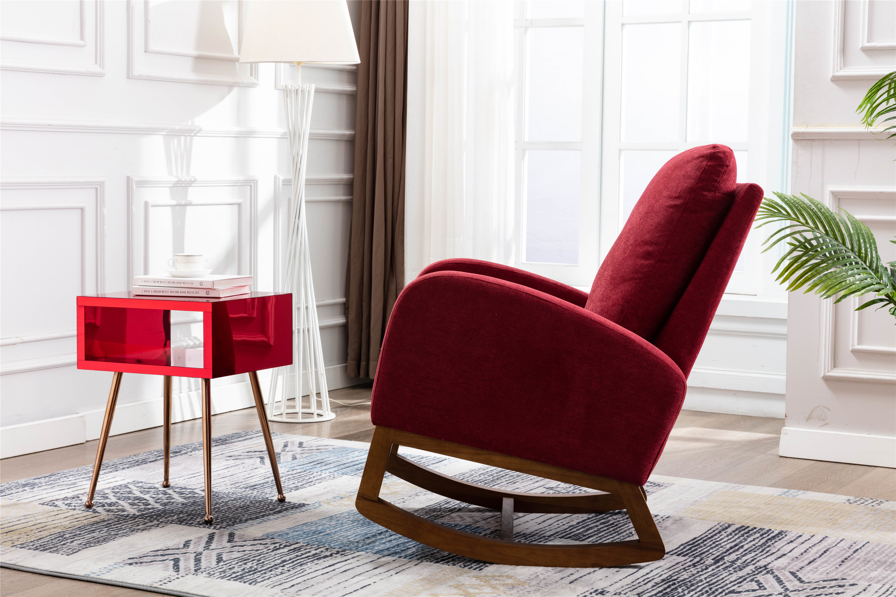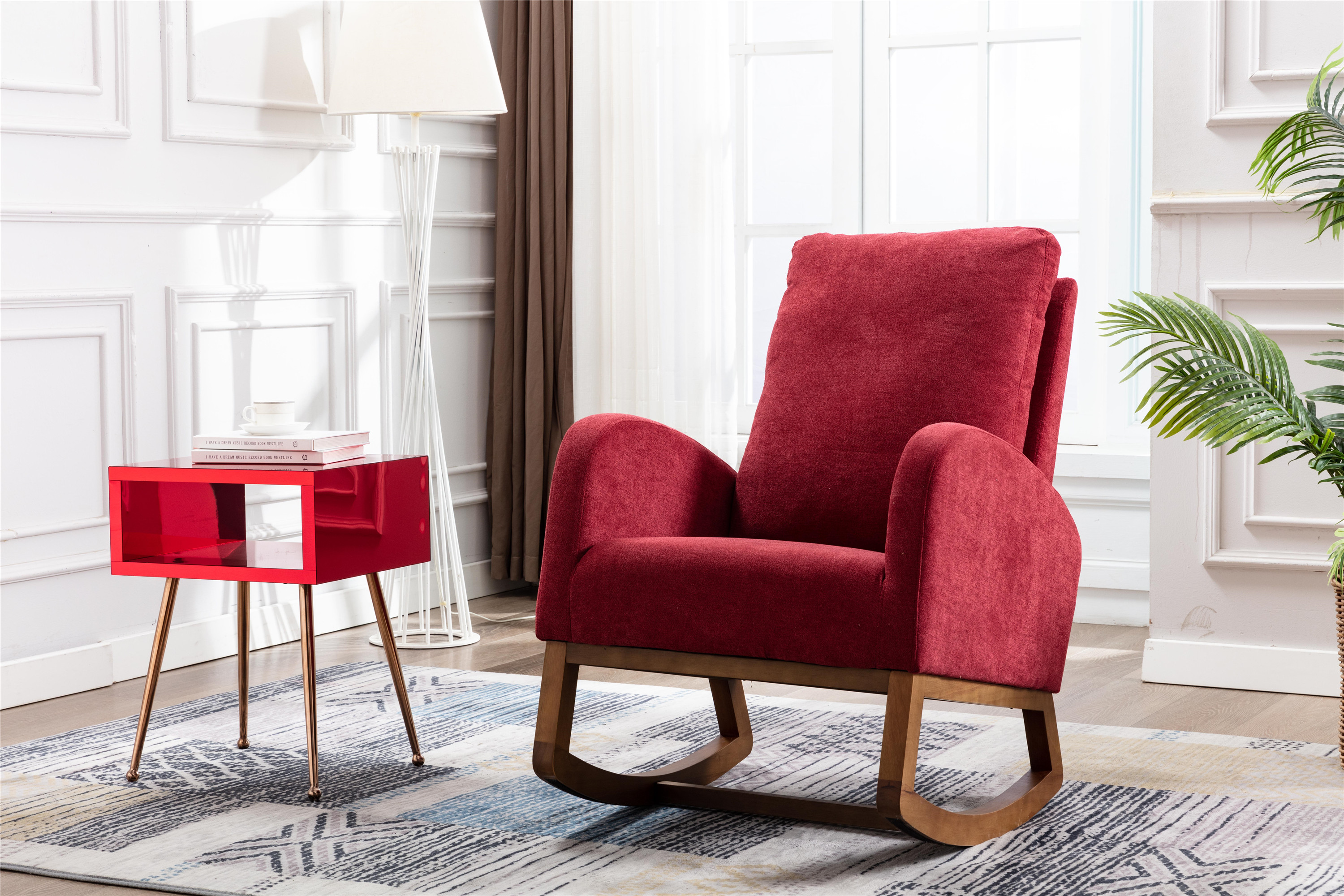 Comfortable Rocking Chair: The Designs rocking chair provides a chic place to sip a cup of coffee, dive into a fabulous book, or just whittle away the time comfortably