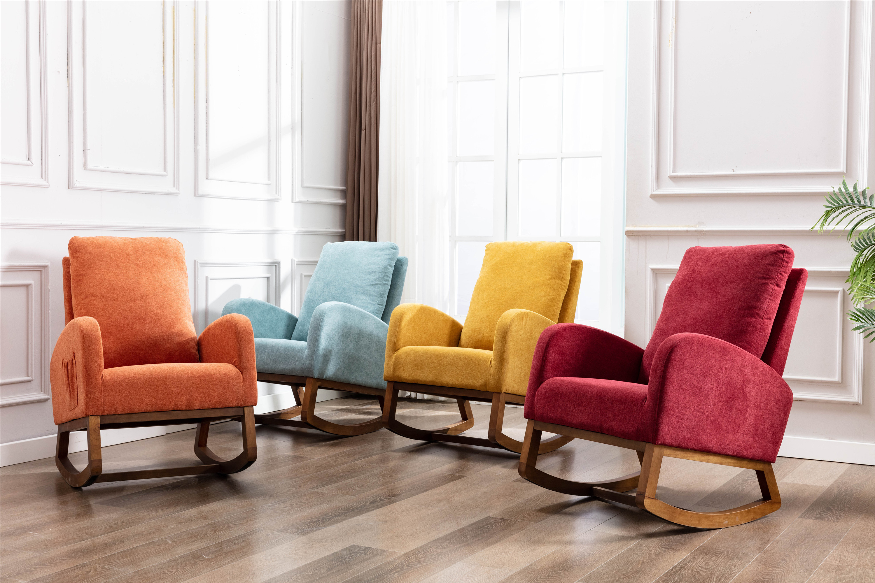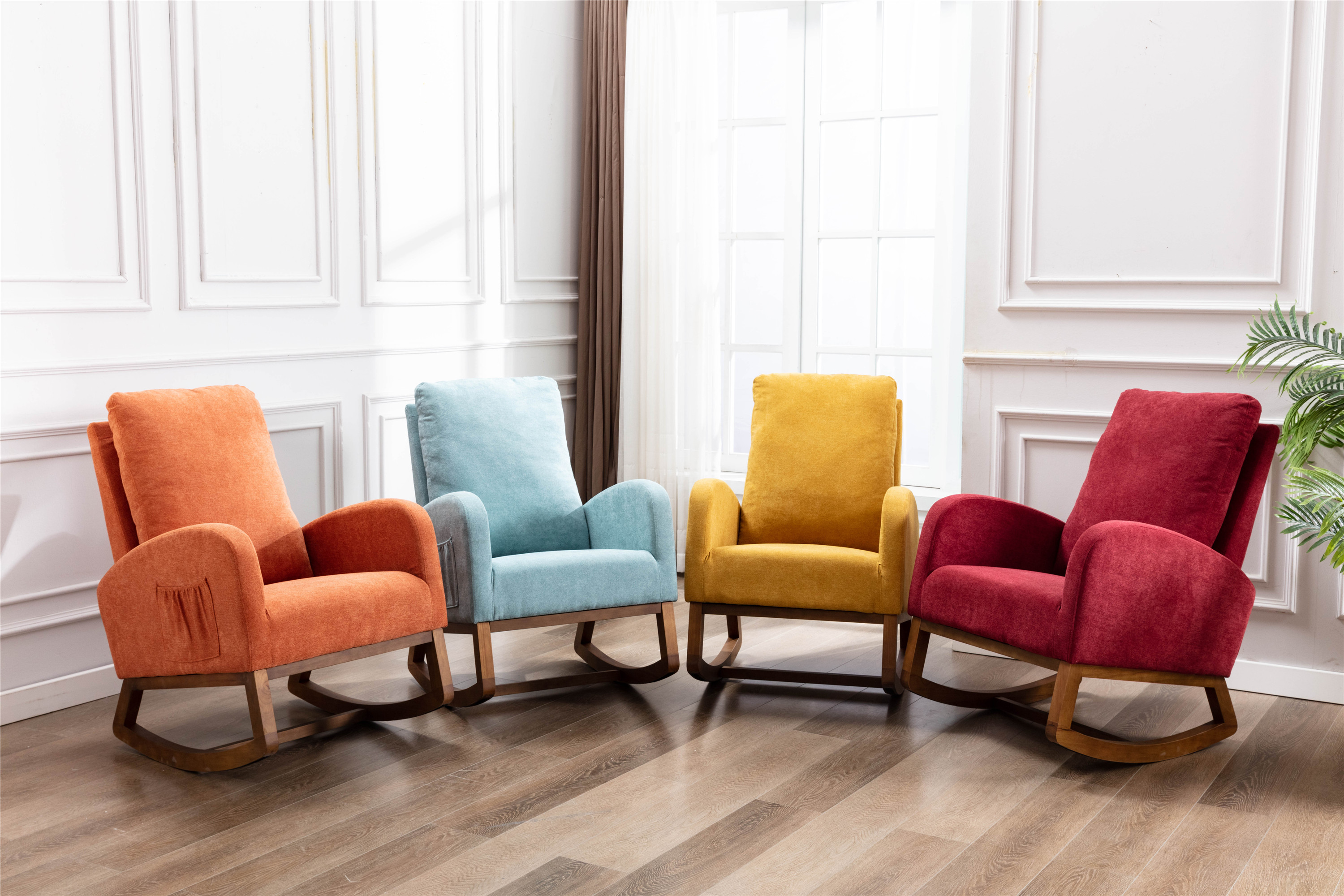 Inspired by mid-century modern design, This rocking chair feels right at home in a nursery, living room or any shared space. High back contoured design and ergonomic arm height add more charms to this piece.