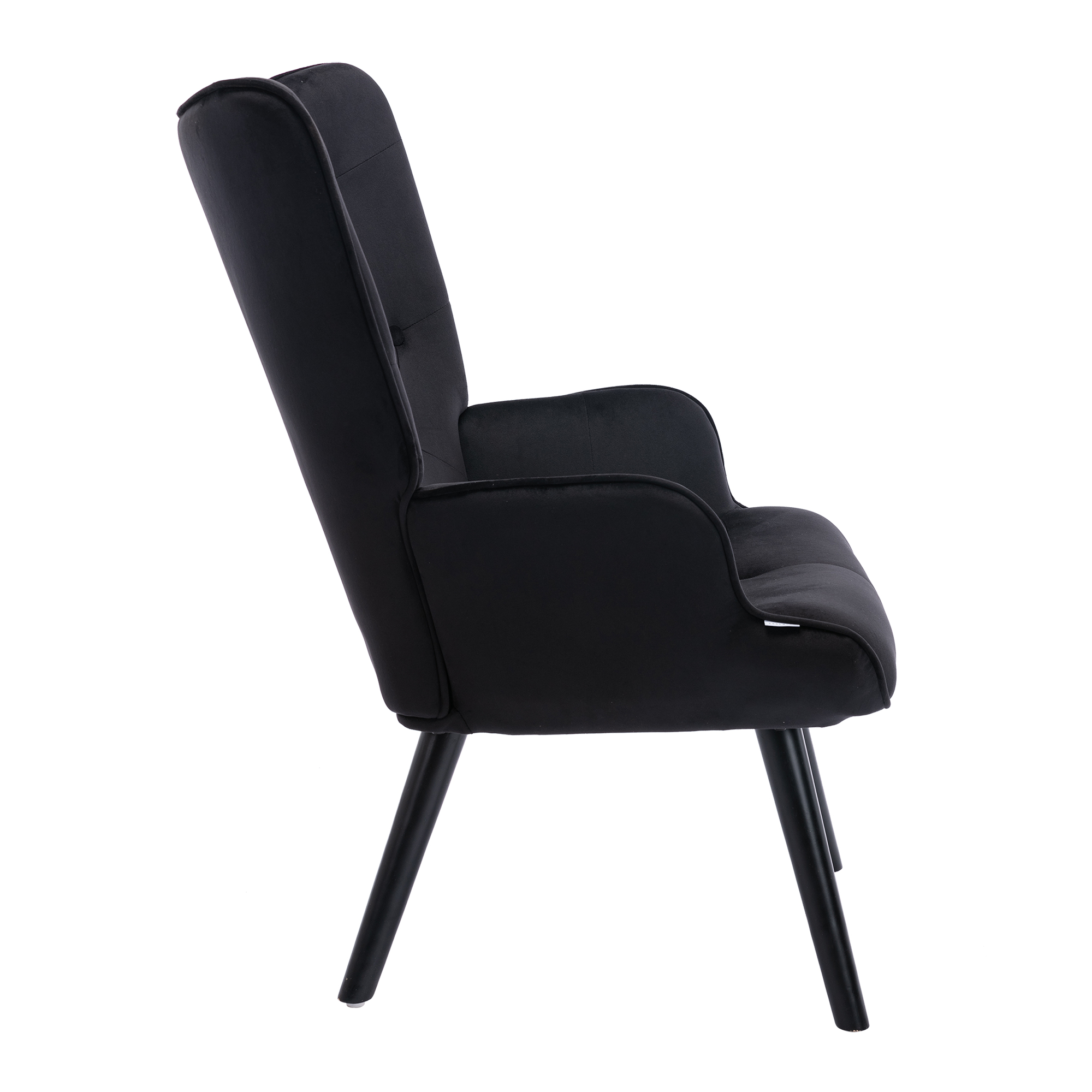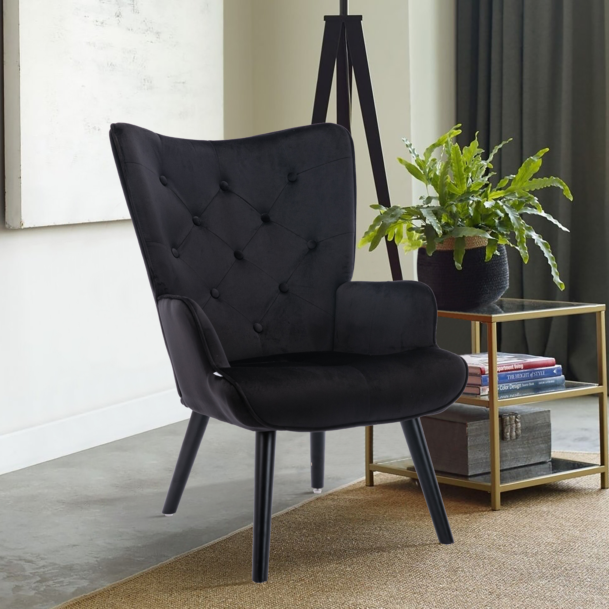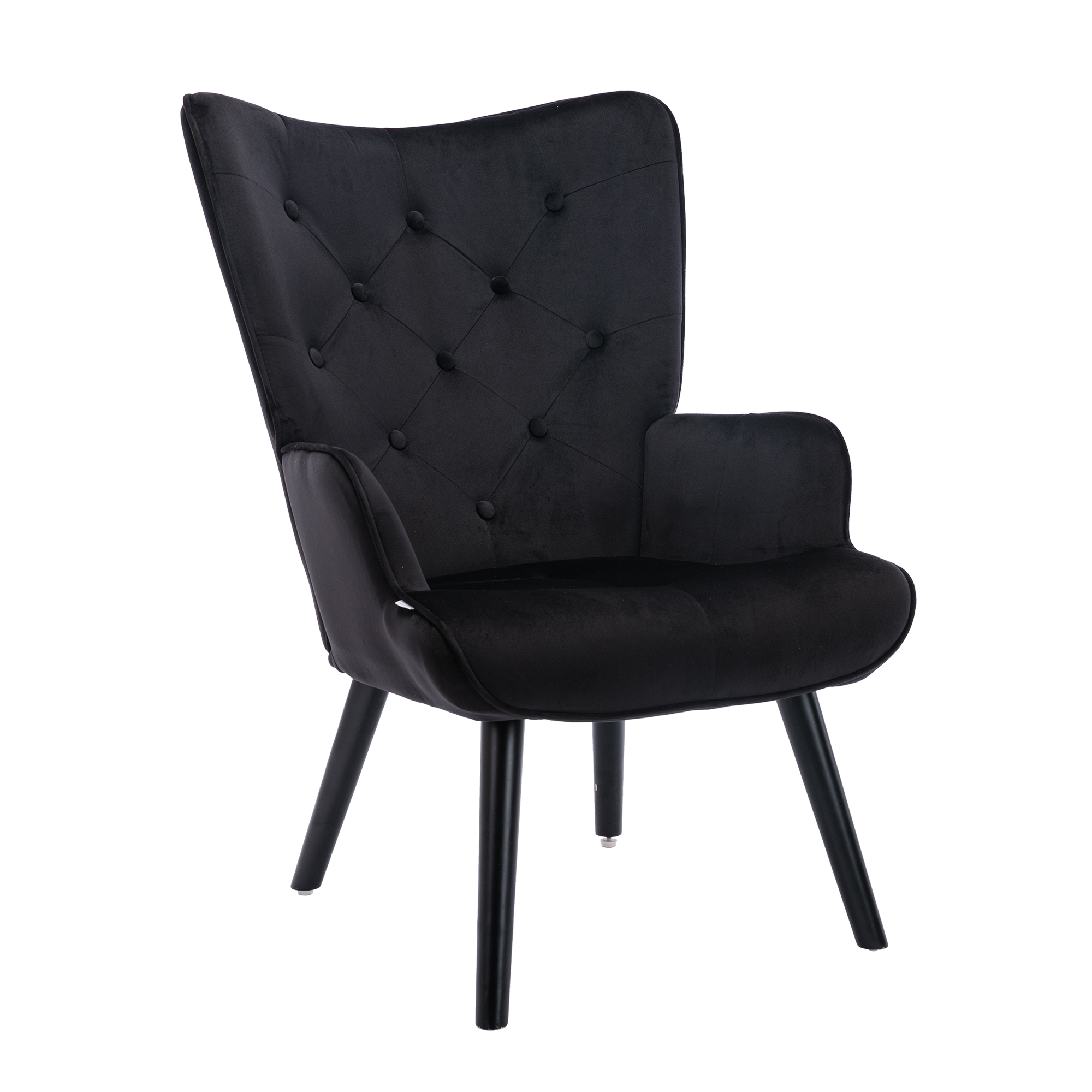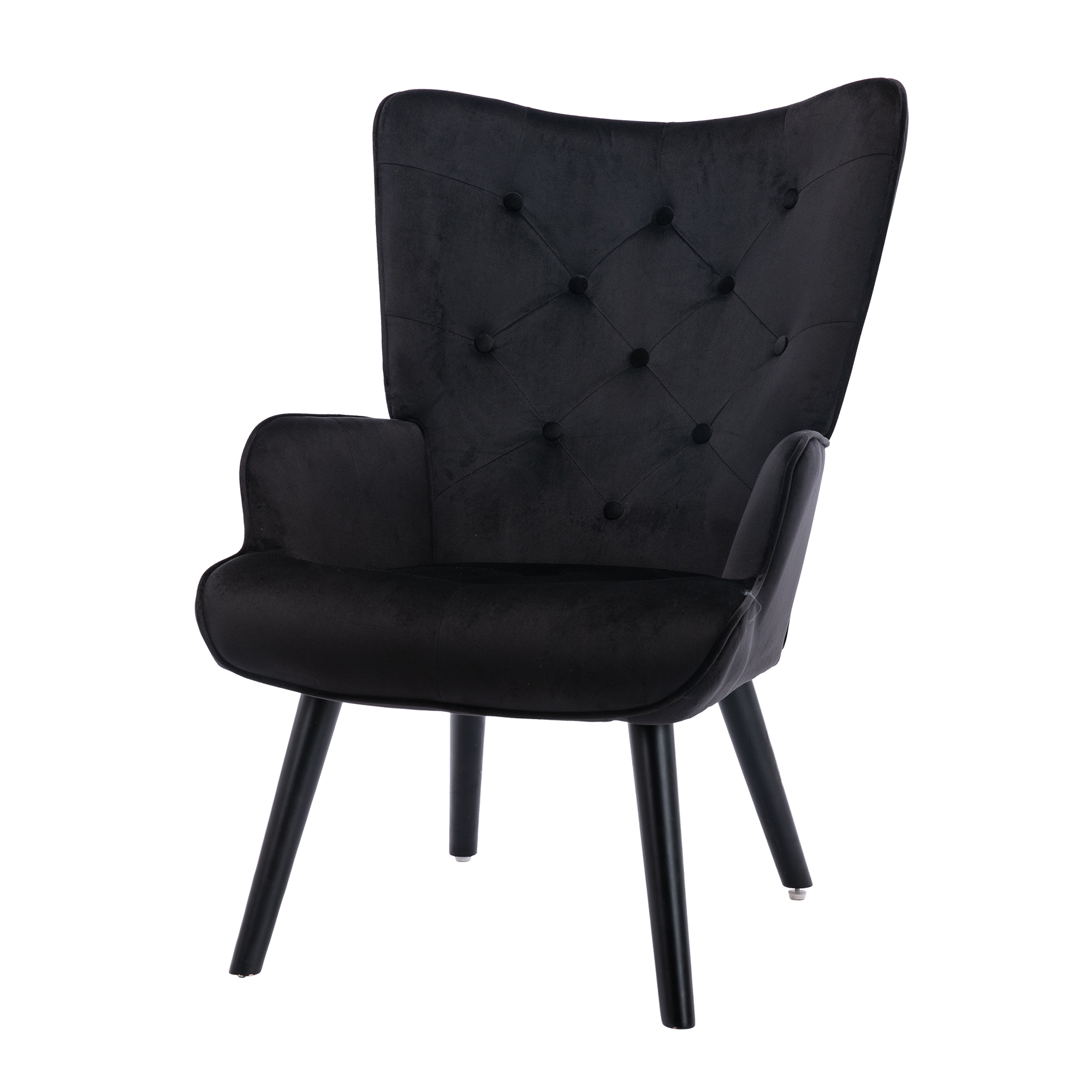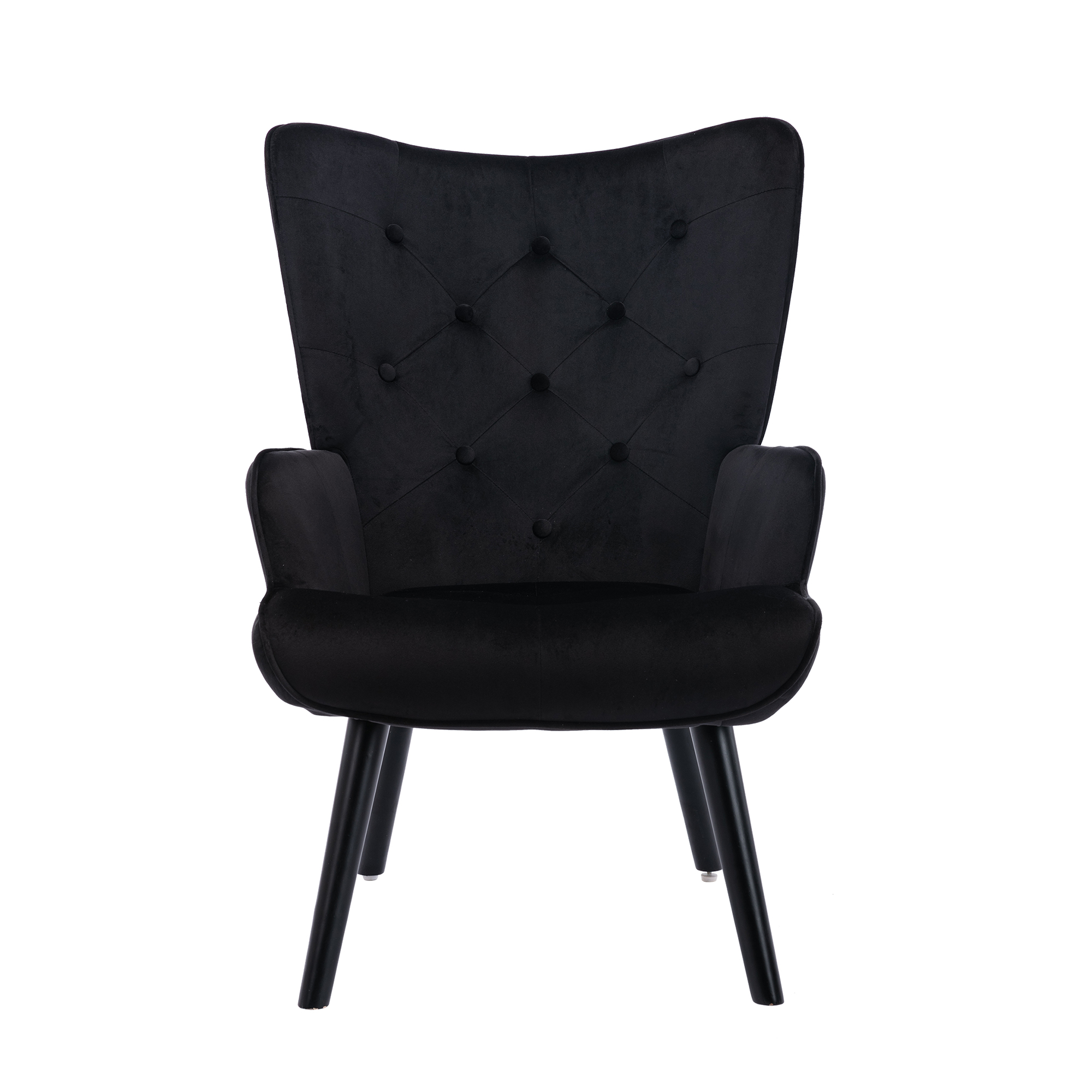 Perfect for rounding out your home with a handy perch, an accent chair like this is a great option curling up with aGood book or settling in for a TV binge, while also lending your space an on-trend look. Crafted from solid wood, and manufactured wood frame. Round arms, a camelback, and button tufting round this piece out with eye-catching mid-century-inspired touches