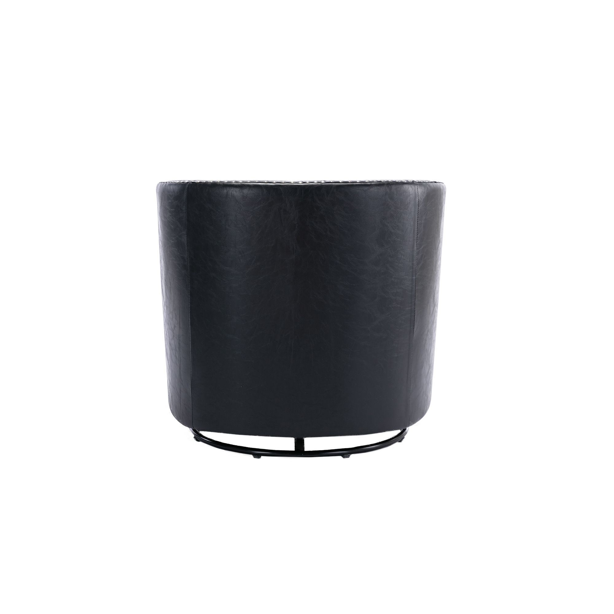 The Harlow has a solid metal base that easily supports swivel rotation and gliding capabilities. It is covered with an easy to clean durable polyester fabric with foam filling, and has convenient side pocketsher!