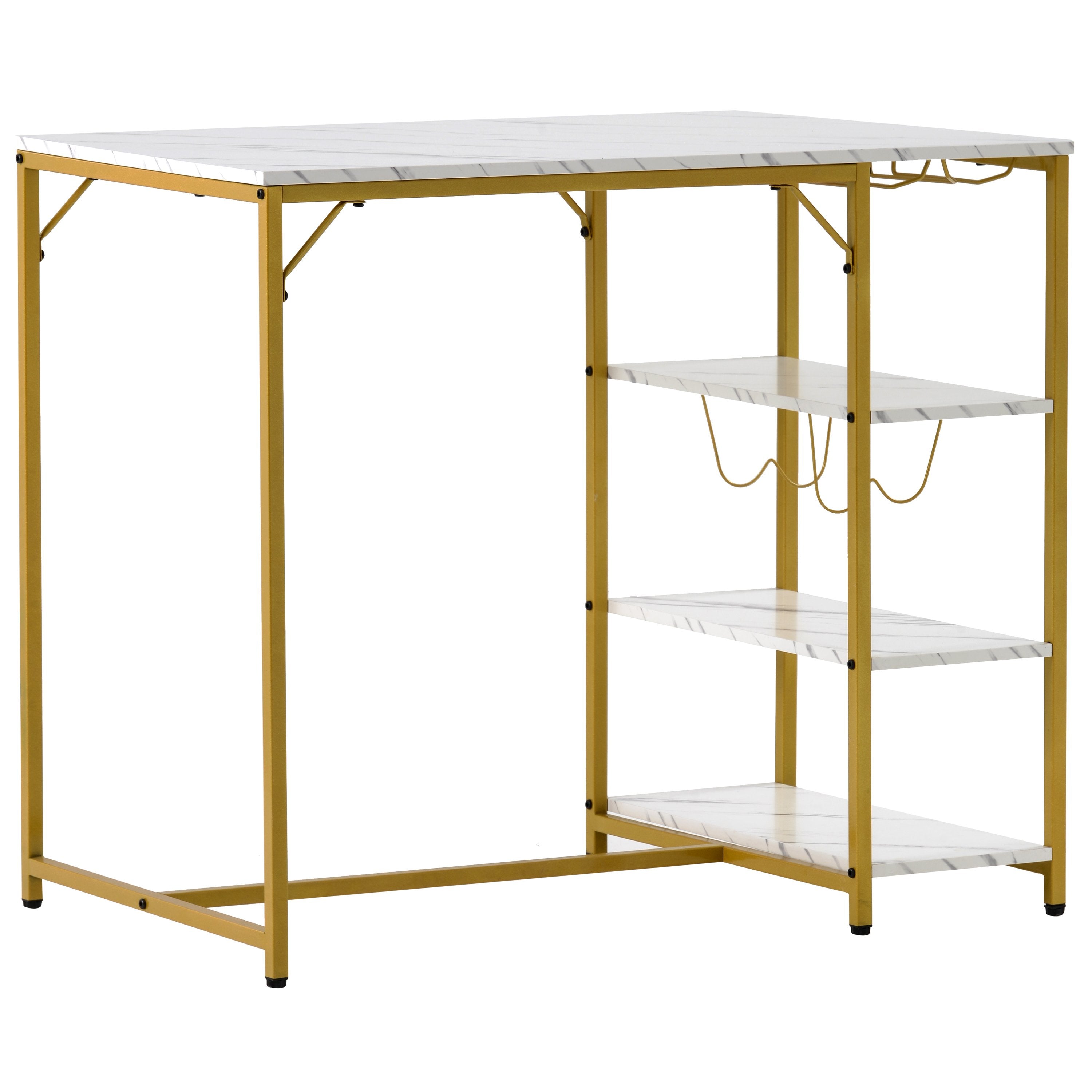 Multipurpose Table---For those who own a small kitchen, this dining table can also be used as kitchen island with a butcher block.With creative design, this table is also designed with 4 glass holders and 2 wine racks so that enjoying a glass of wine when dining with your loved ones is possible. If you don[t want them, they can also be removed. Built with 3 practical open shelves, all of your storage needs can be met easily.