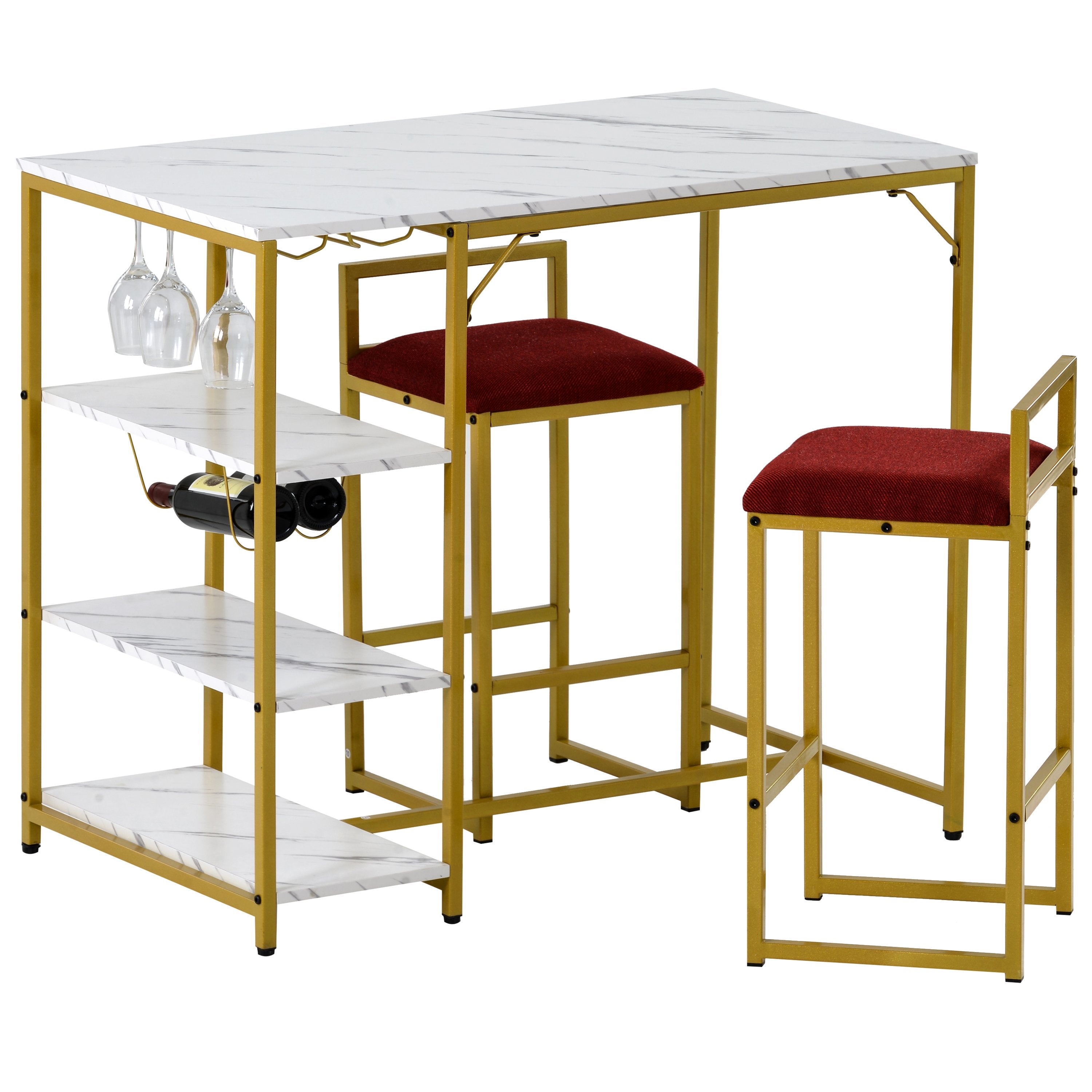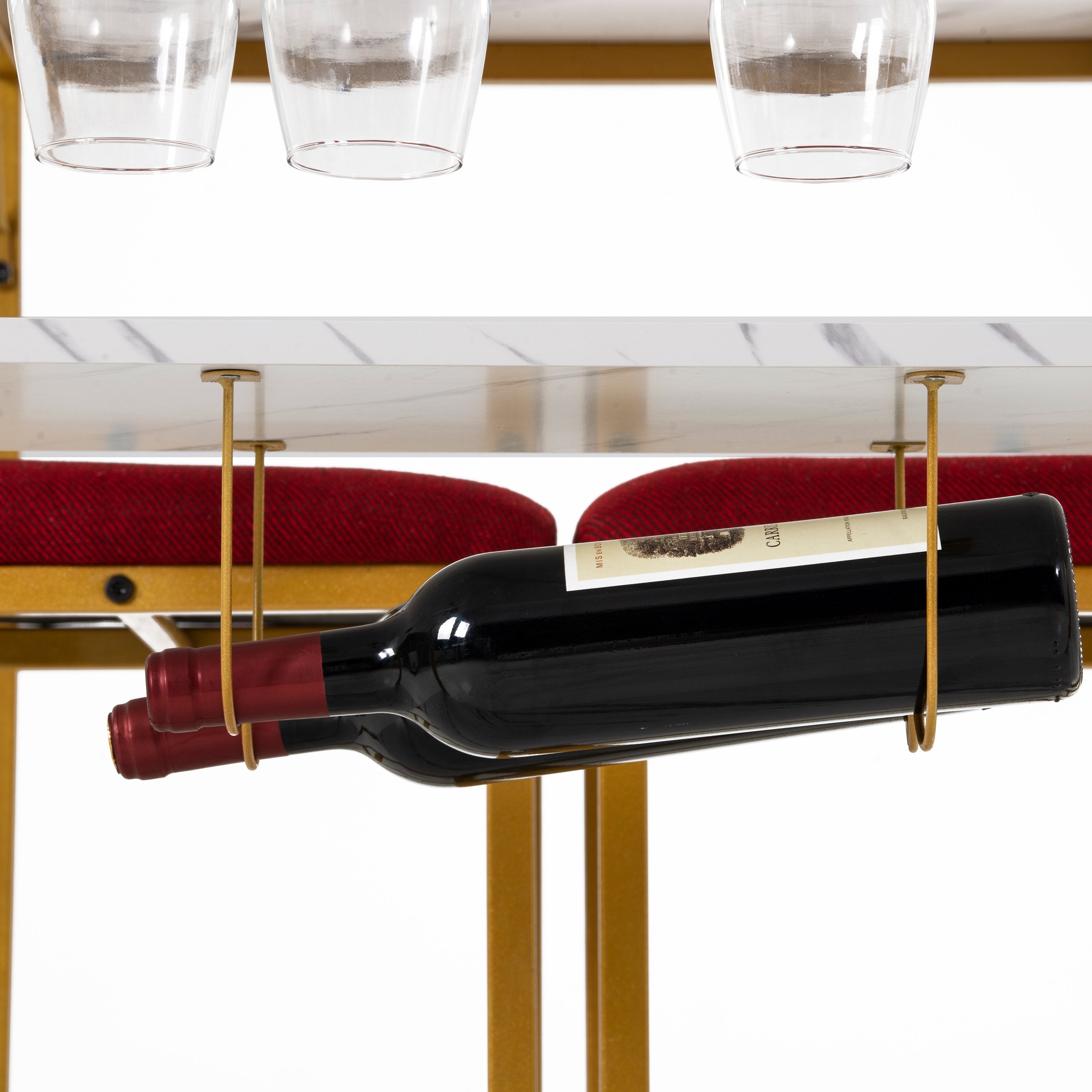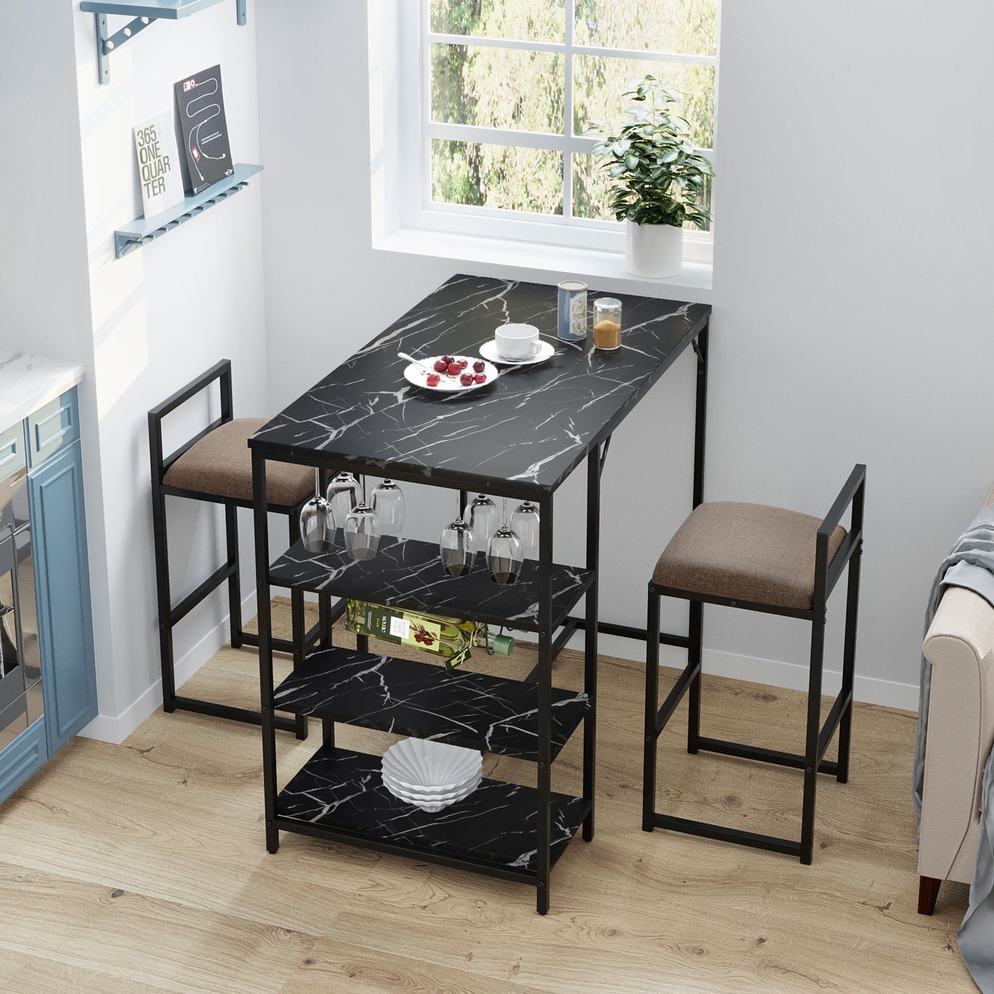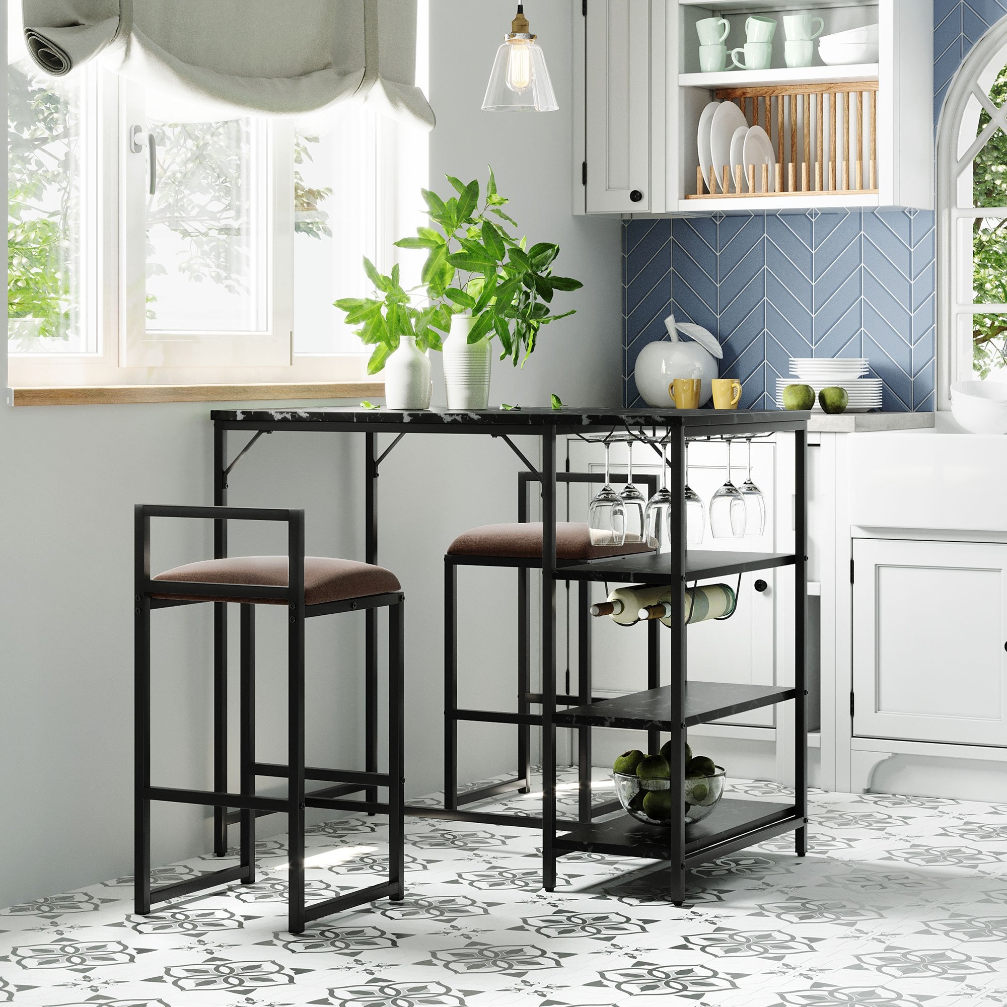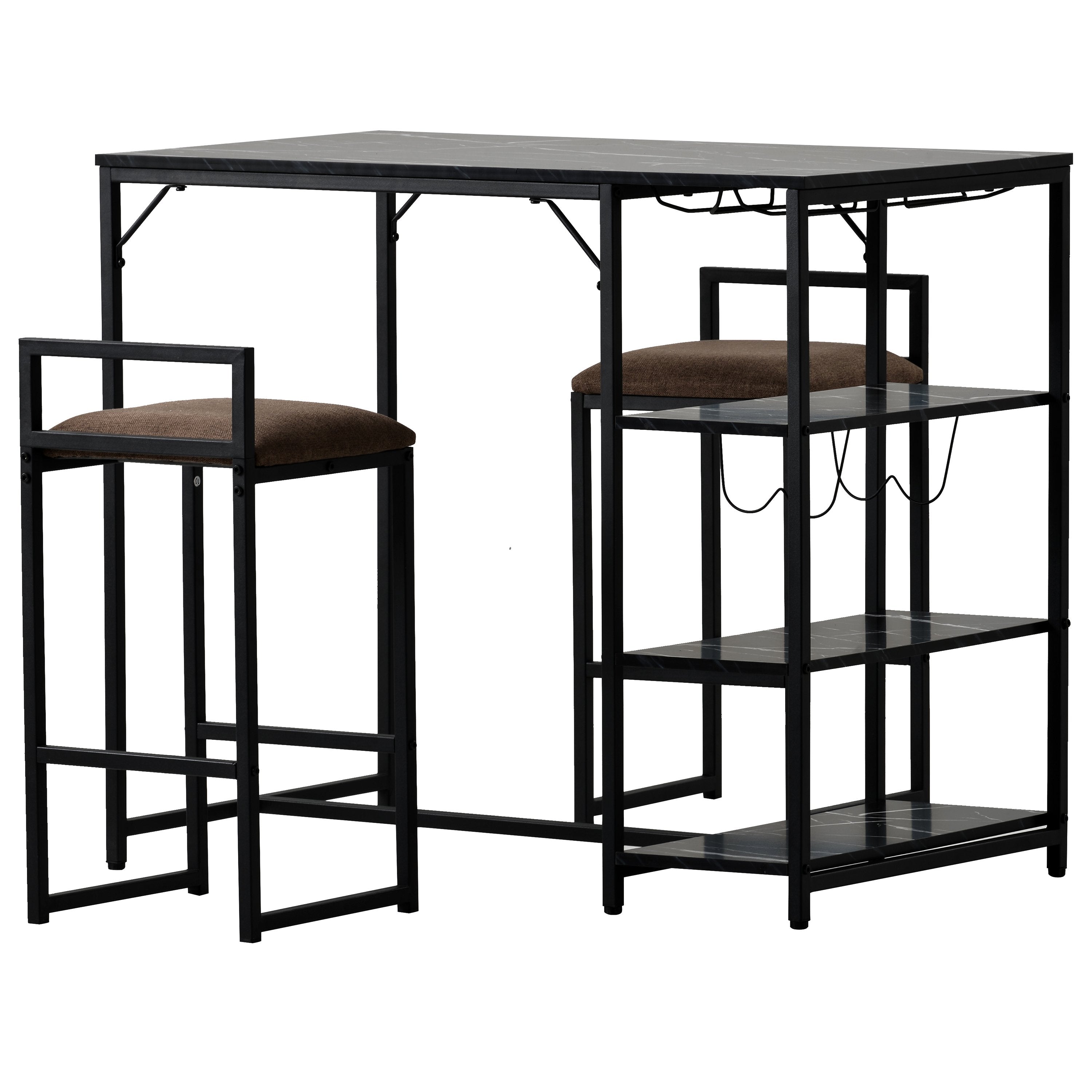 Counter Height 3-piece Bar Dining Table Set with 2 Upholstered Bar Stools/Chairs, 4 Glass Holders,2 Wine Racks and 3 Open Storage Shelves for Small Places
