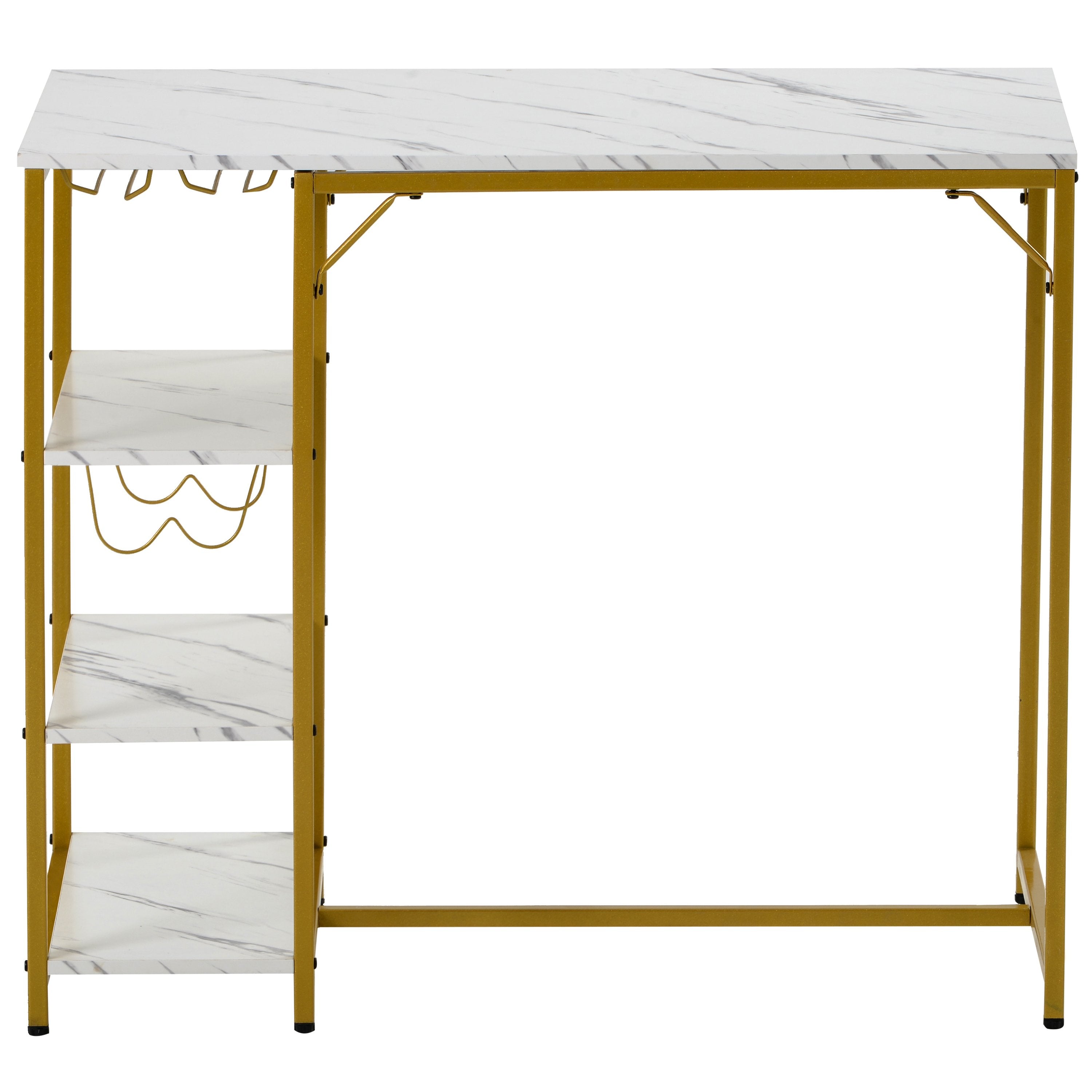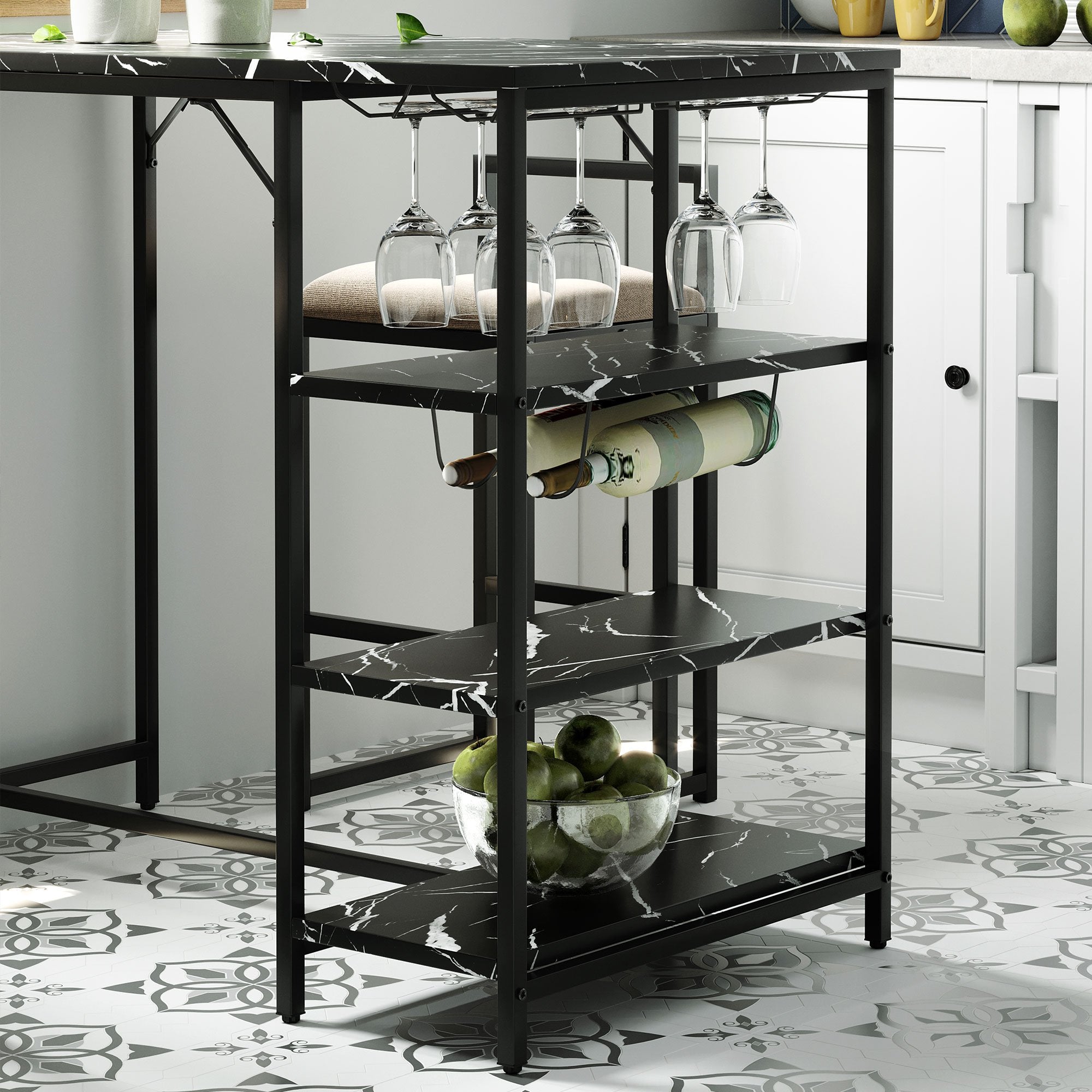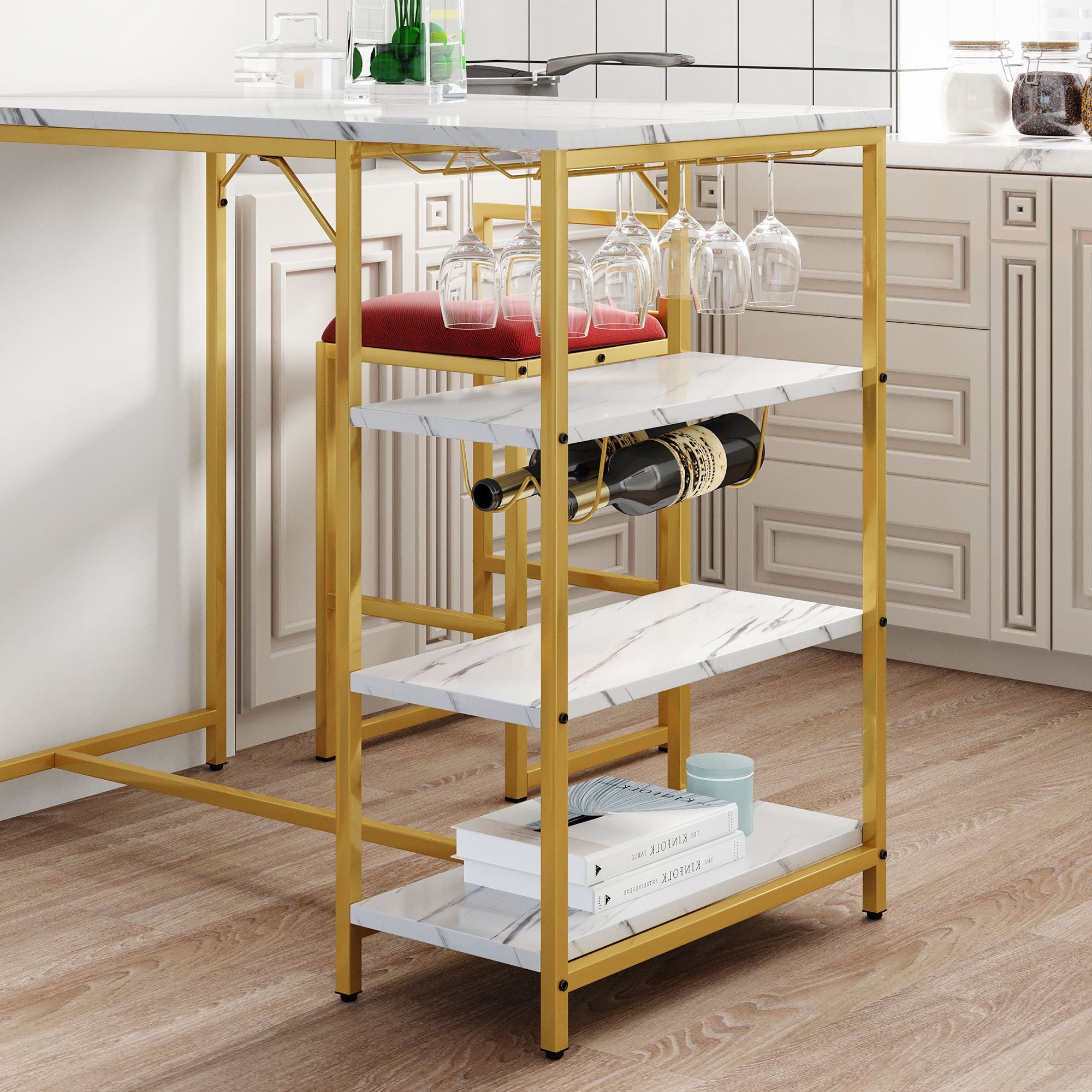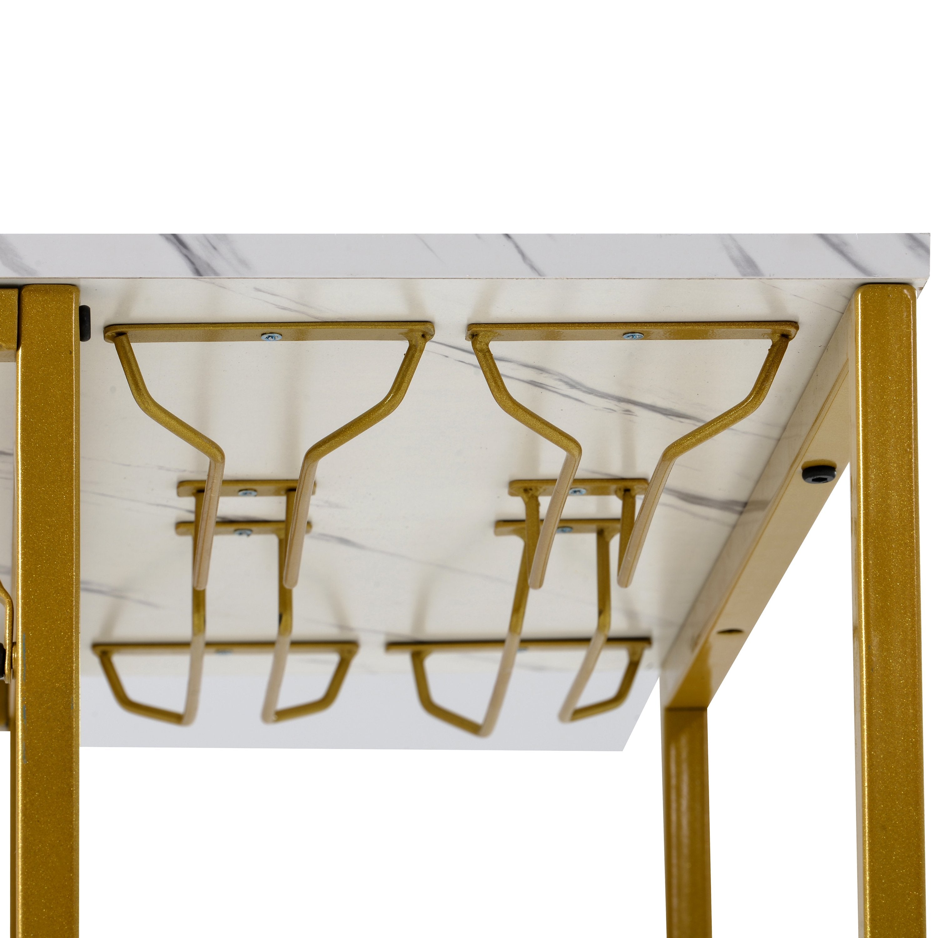 Counter Height 3-piece Bar Dining Table Set with 2 Upholstered Bar Stools/Chairs, 4 Glass Holders,2 Wine Racks and 3 Open Storage Shelves for Small Places