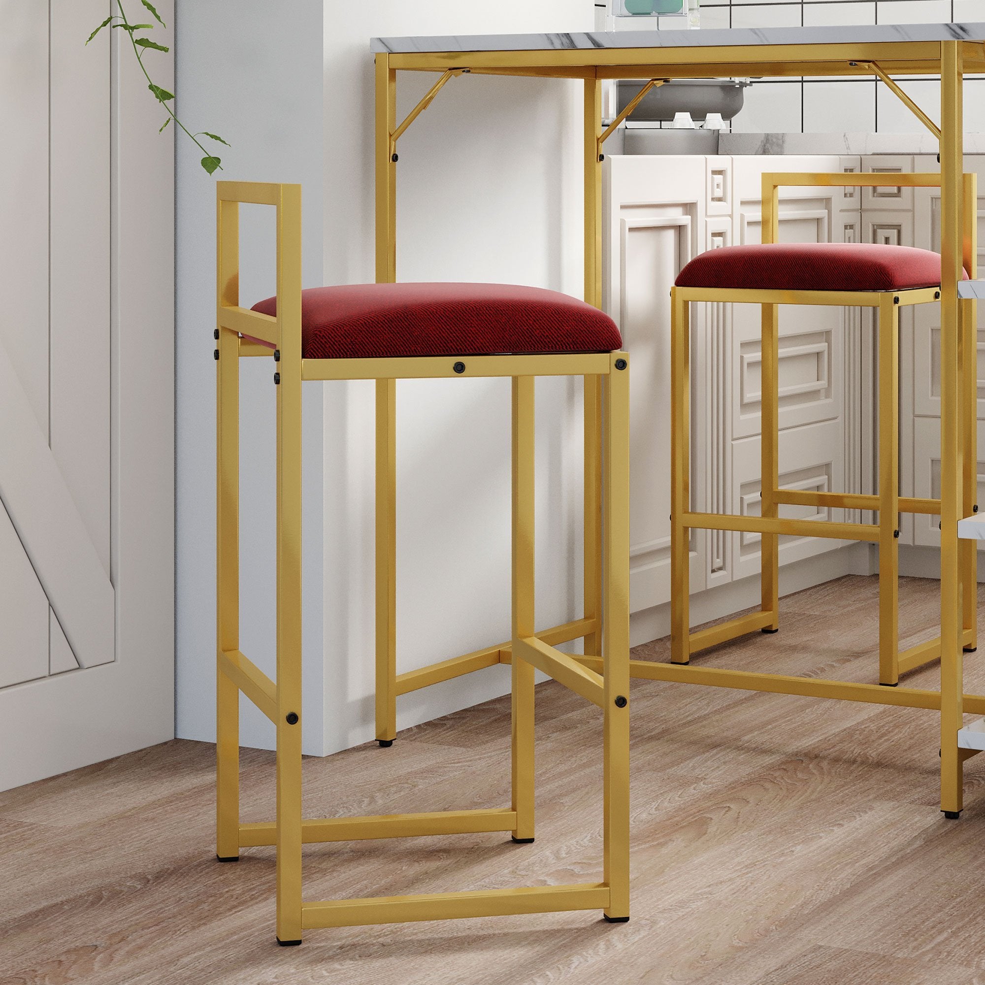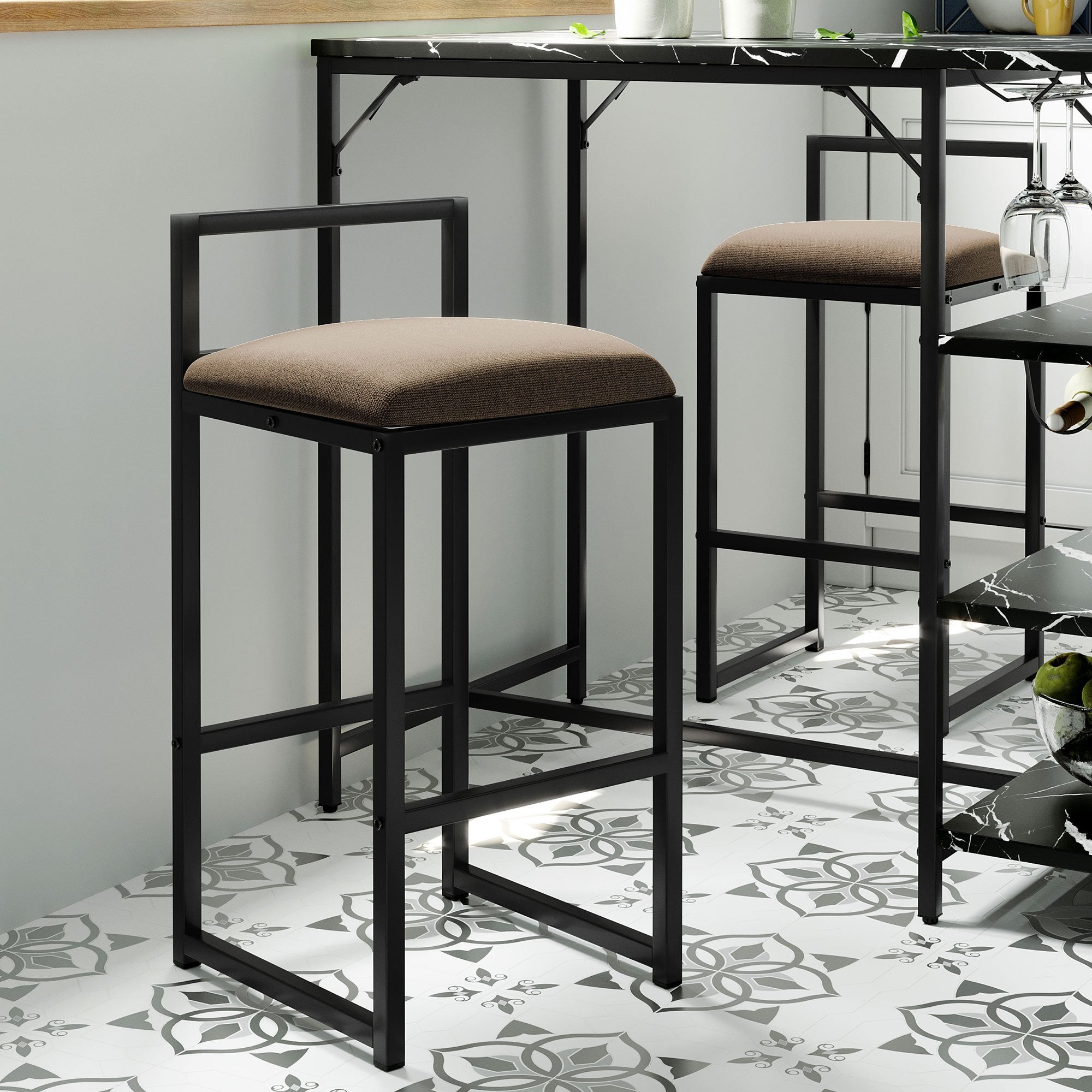 Upholstered Stools/Chairs---This stools are with low backs and upholstered seats so that it can support your back with more comfort. Each stool is designed with footrest bars under the seat so that you can put your feet in the most comfortable position.