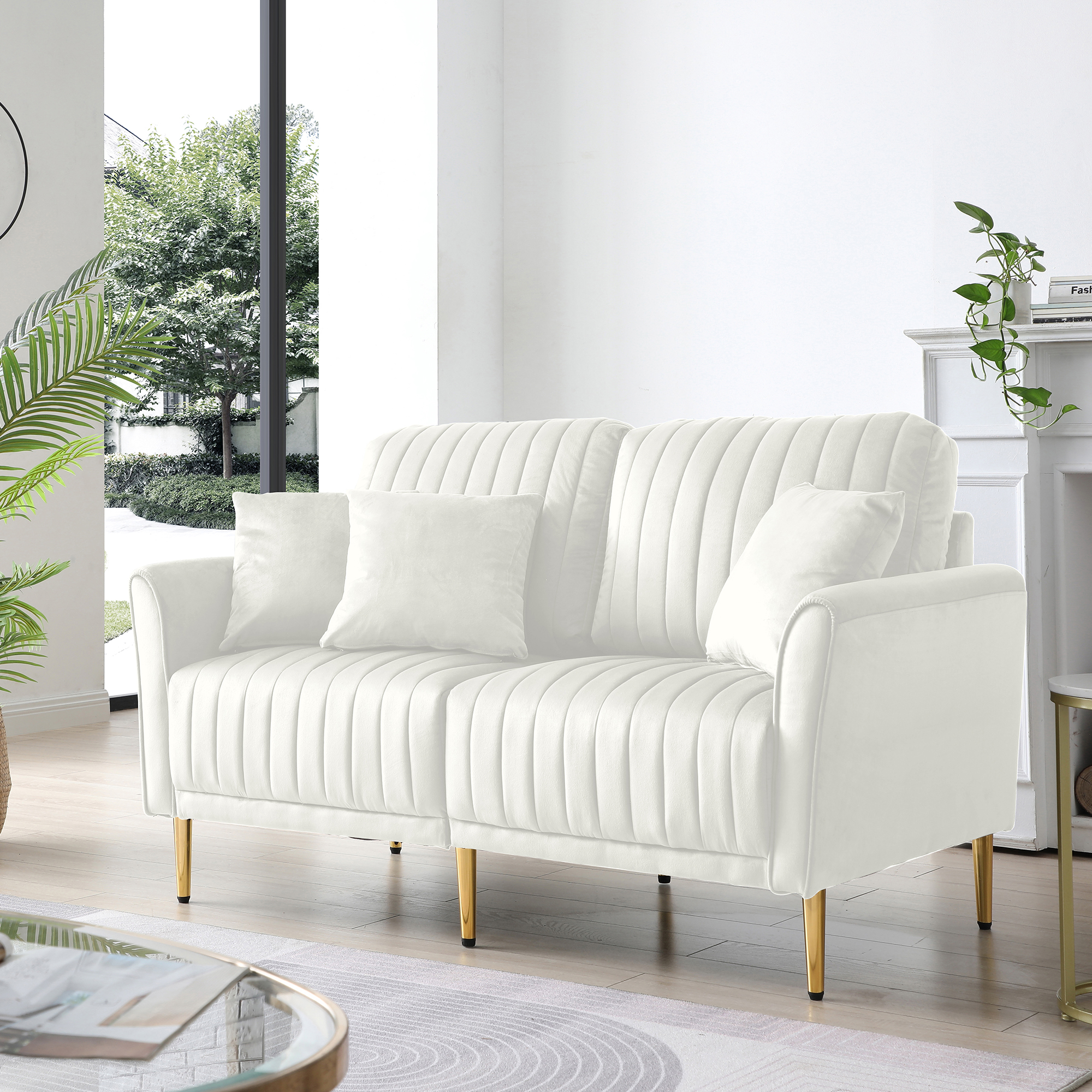 Fall back into a dream-like sofa with more than eight different combinations to make a unique home style your own, more than six color choices bring you a timeless luxury inspired home, join us and step into the warm elegance of this contemporary living space. Premium velvet cover, handcrafted channel tufting and opulent metal legs unite to evoke a feeling of monumental luxury.