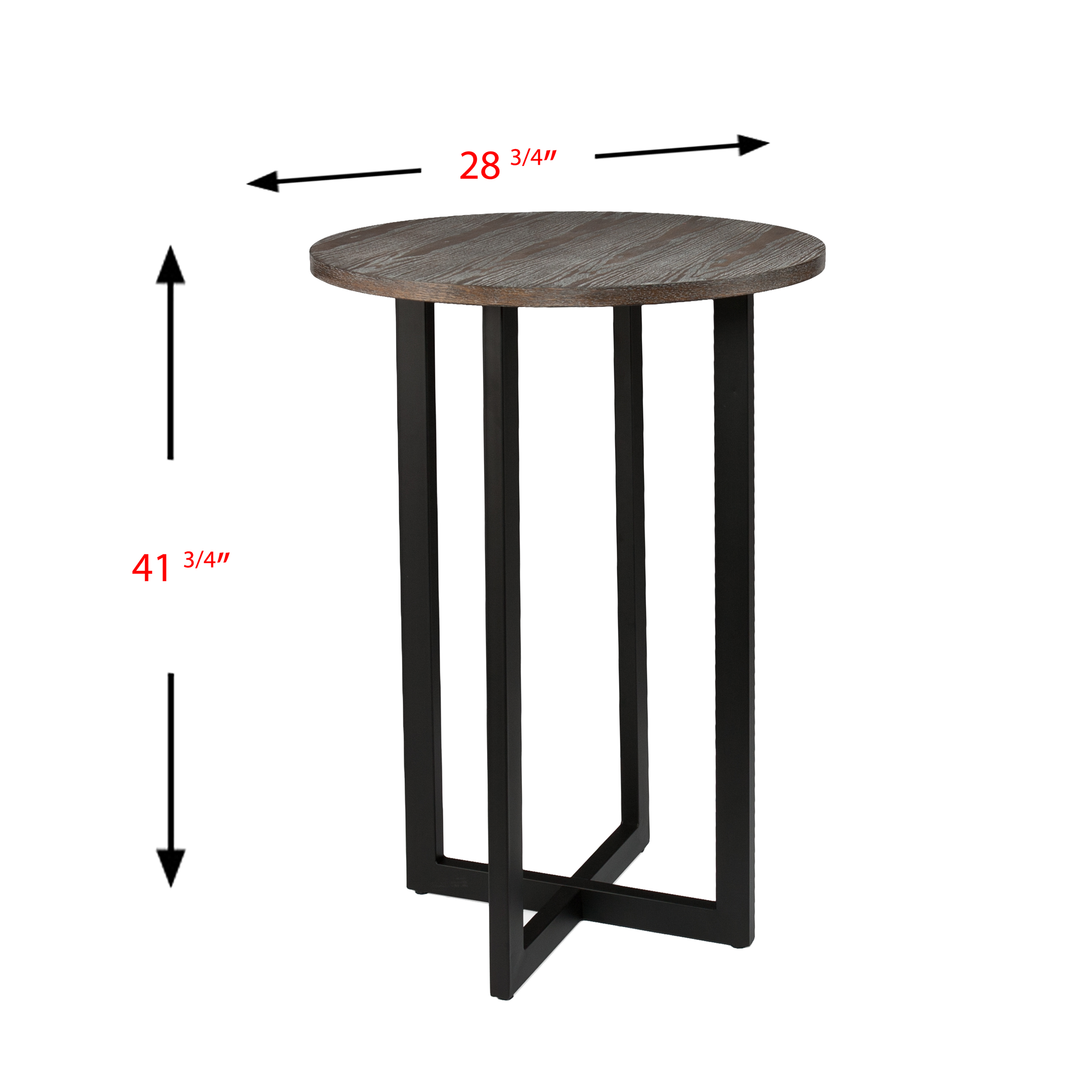 Into the woods. The Danby Bistro Table dishes out multipurpose in versatile meal or work space. Dining in small spaces is well served by this bistro, from kitchen nook to shared space in the living room. Devour the gorgeous grain of burnt oak, whilecontrasting black metal lifts this bistro table to new heights. Inherently well-rounded.