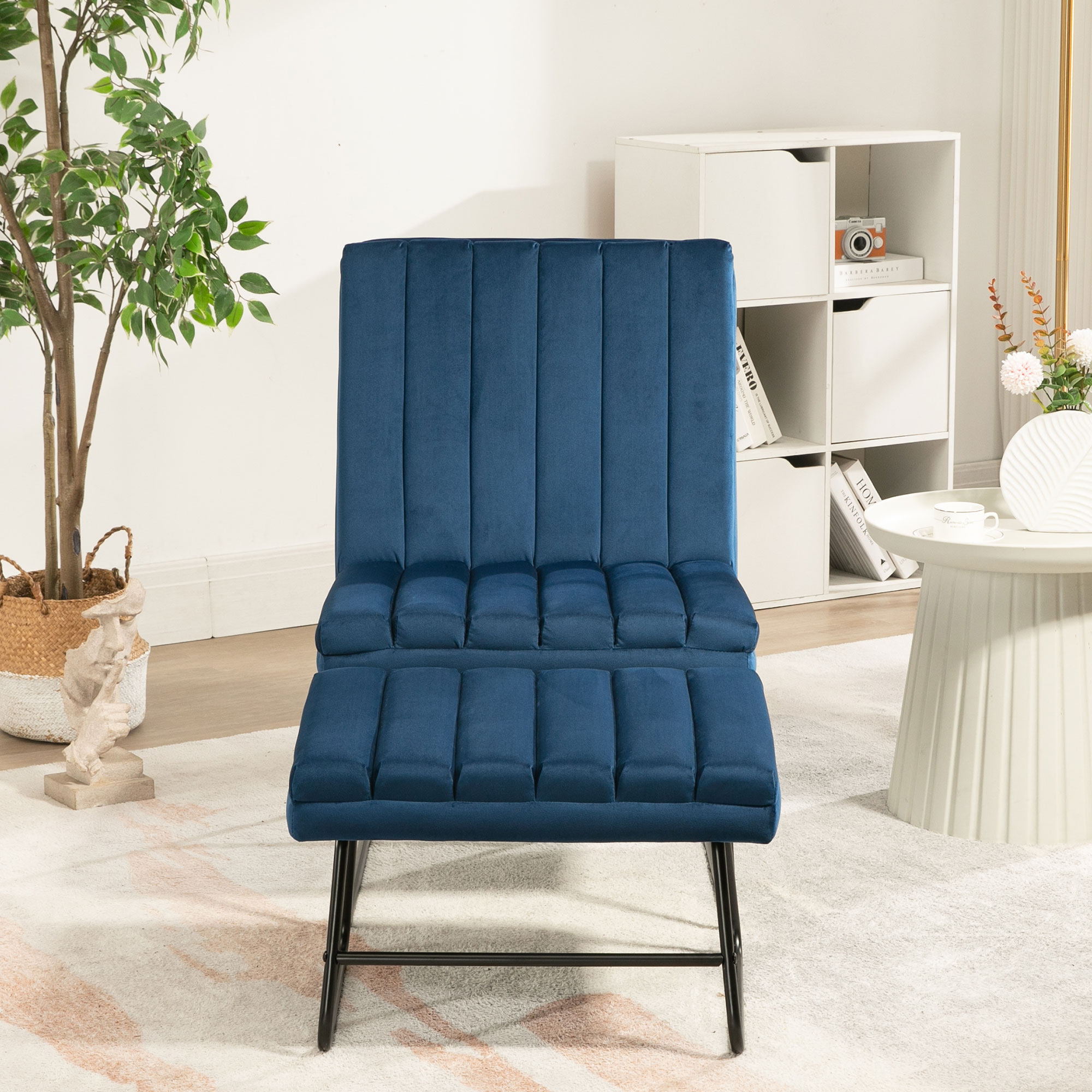 Dark Blue Modern Lazy Lounge Chair, Contemporary Single Leisure Upholstered Sofa Chair Set