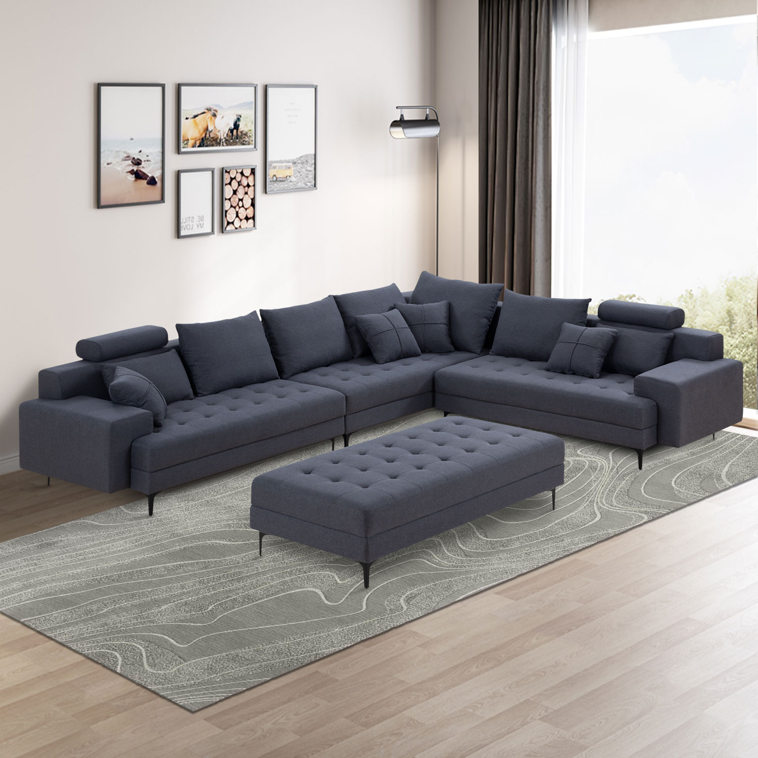 SPACIOUS SECTIONAL SOFA - Delivering luxe comfort and style to the modern home, this sectional sofa collection features a spacious silhouette for cozy, comfortable loungingFABRIC UPHOLSTERY - Covered in soft polyester and linen fabric, this upholstered sectional sofa is soft to the touch. calming hue and spacious profile complement a variety of home décorsLUXE LOUNGE SPOT - With a clean-lined design, the simple style of this large sectional sofa do not go unnoticed. Its cushions make it perfect for the living room, family room, or game roomPLUSH COMFORT - Foam padded cushions overstuffed with cotton offer a luxurious sink-in feel. Whether you're entertaining, lounging, or relaxing, Commix provides superior comfortDURABLE CONSTRUCTION - Built to last, Commix is designed for everyday use. The wood frame lends sturdy support to this cozy living room collection.