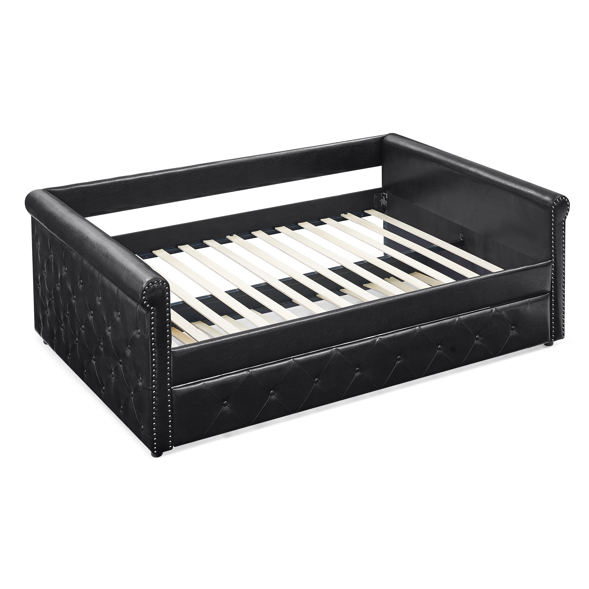 - Comfortable Experience. Foam-padded sides and back that provide optimal back support and comfort. This twin-size daybed provides you with a great seating experience that ergonomically supports your back and arms. Meanwhile gorgeous PU ensures you can keep cool for extended periods.