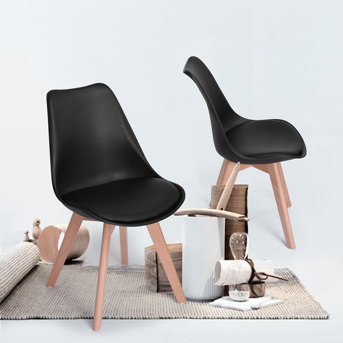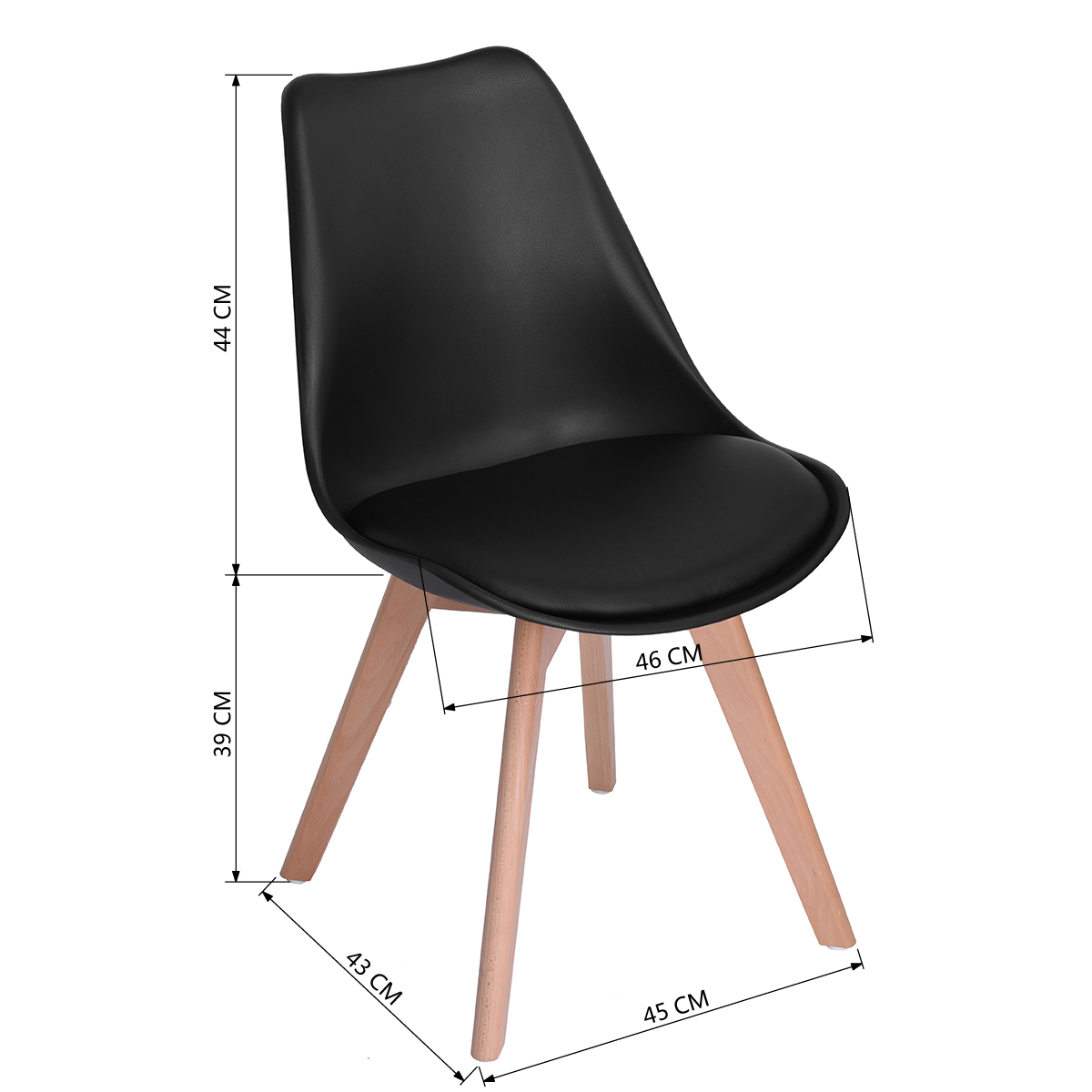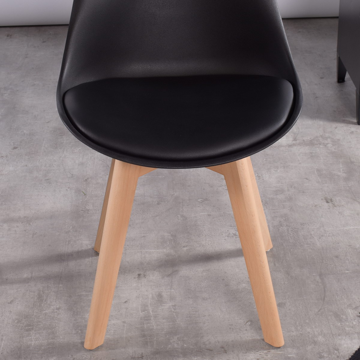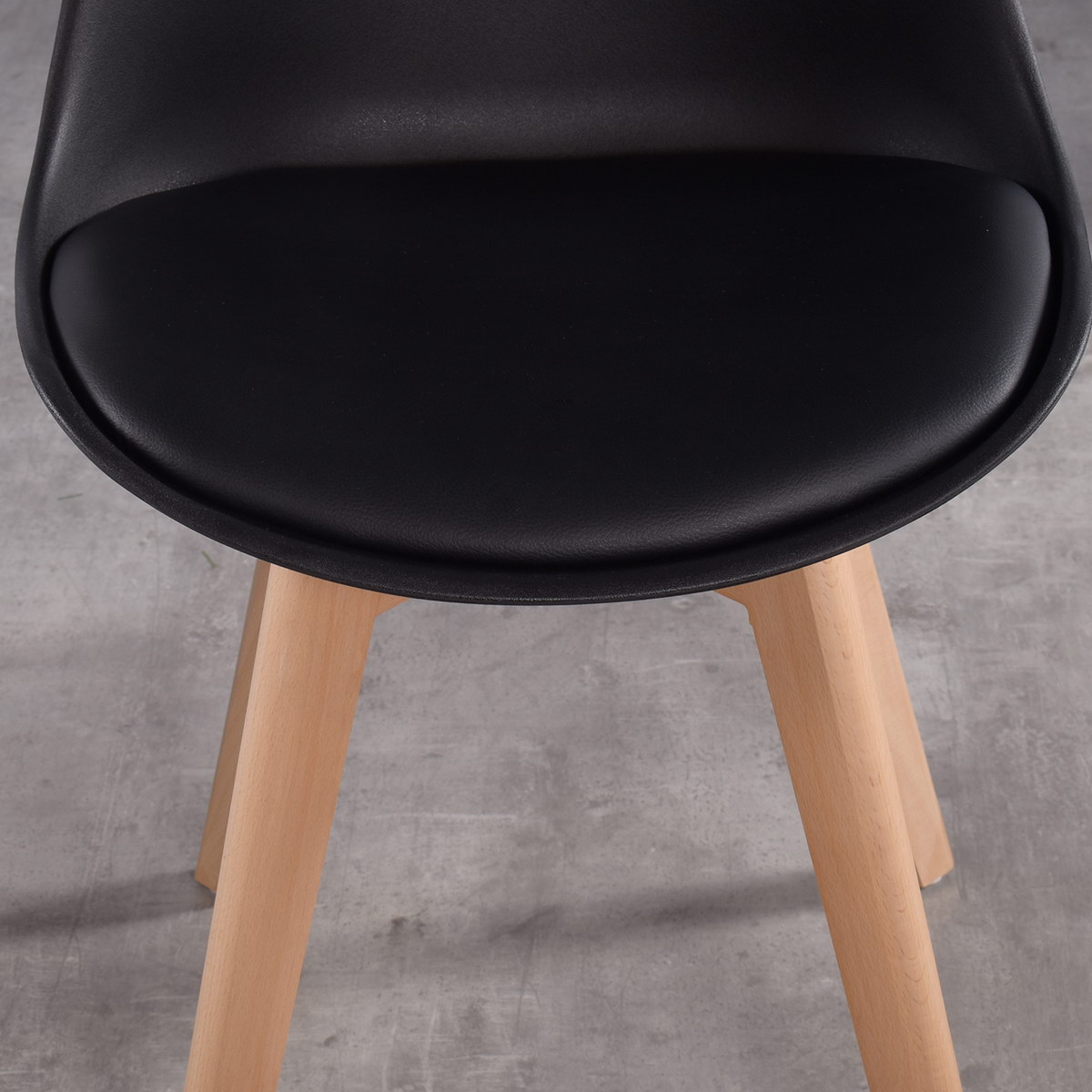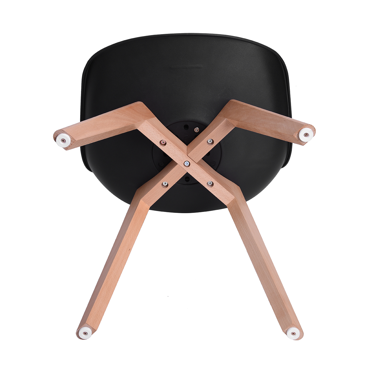 - They have beech wood legs and a plastic body with a synthetic leather seat covering.