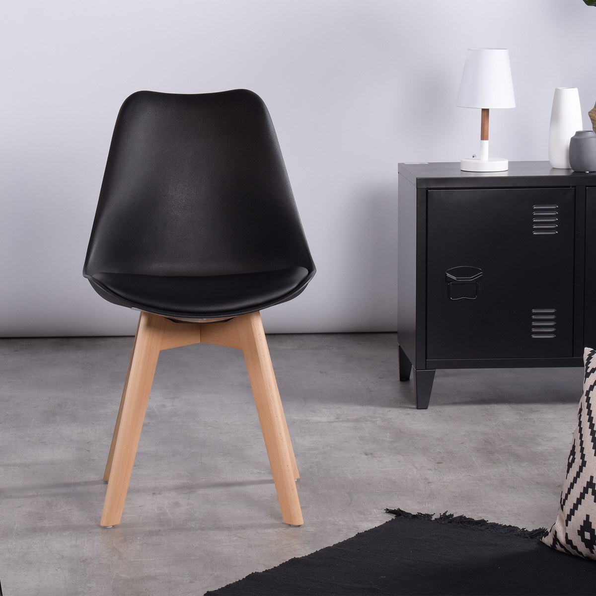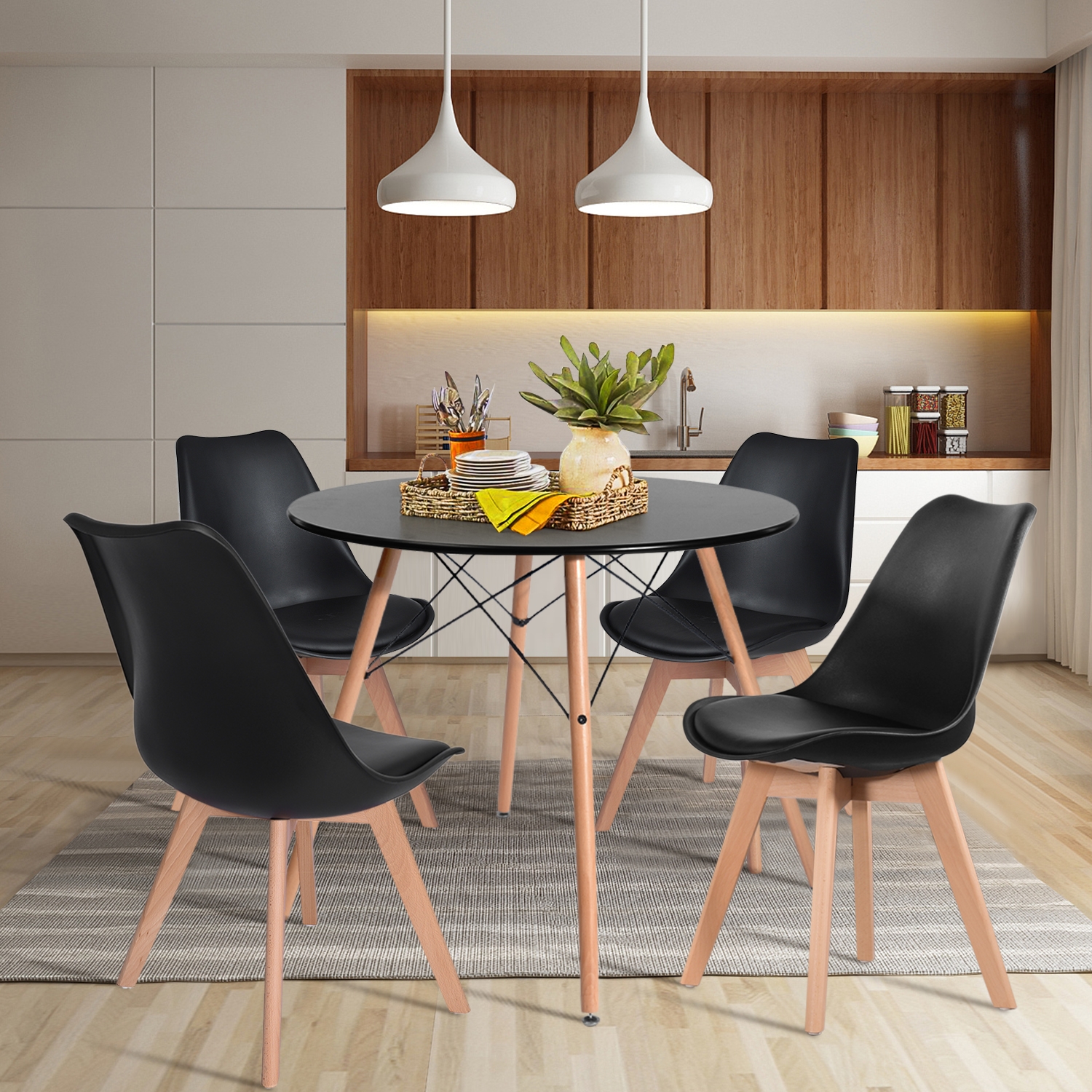 - Pure black in colour, which matches your kitchen cupboards so it also pairs really well with your home.