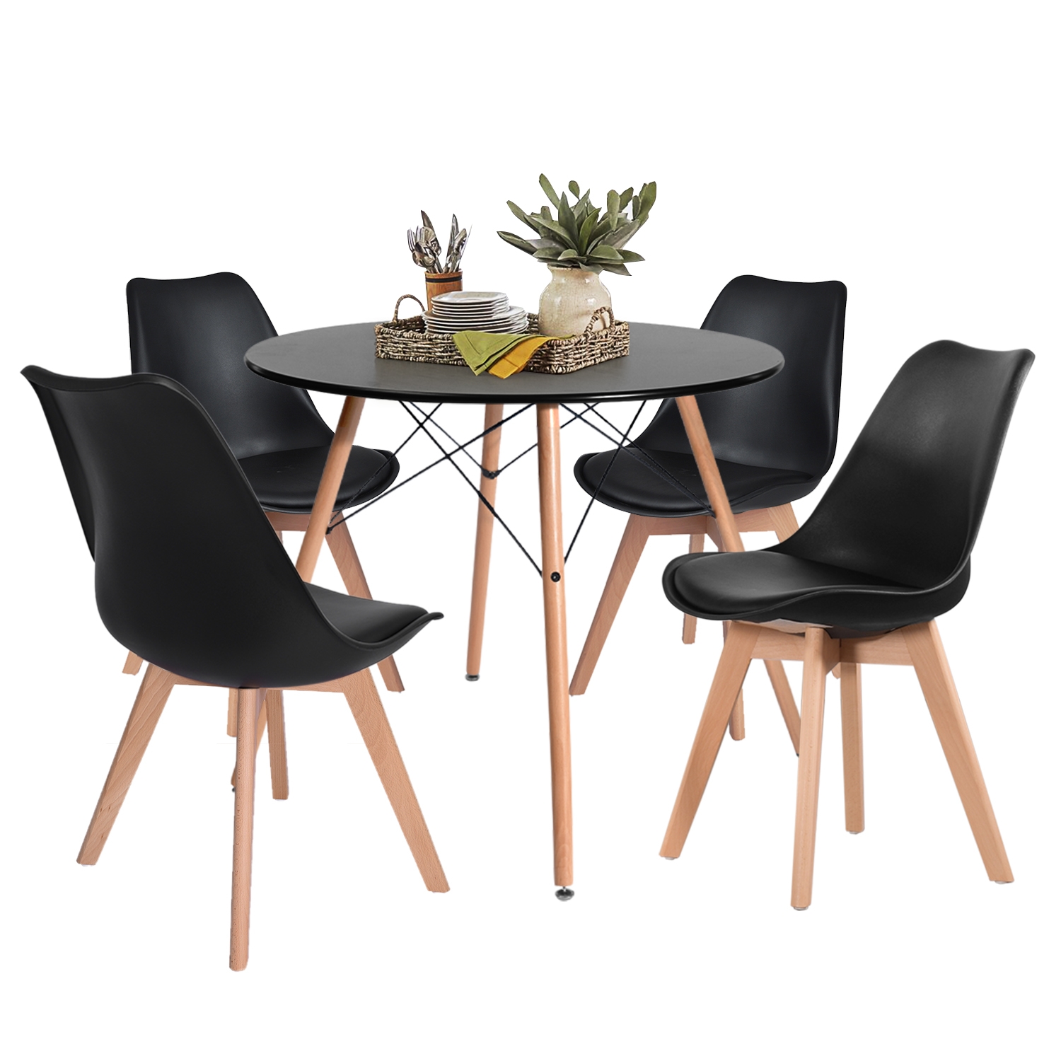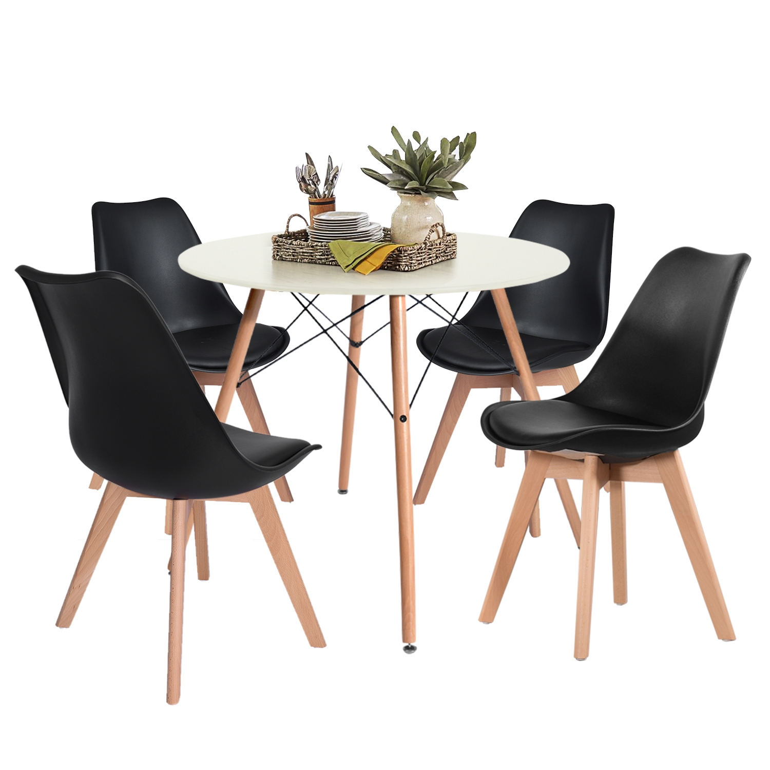 Bring streamlined, modern style to your dining ensemble with this four-piece dining chair set! Crafted of heavy-duty plastic, each chair features an ergonomic backrest with molded sides and a contoured seat, while four flared beechwood dowel legs sport a light, natural stain. Enveloped in polyester-blend upholstery, a foam-filled seat cushion offers added comfort and support. The flared table legs have a better load-bearing capacity, please rest assured to sit down.