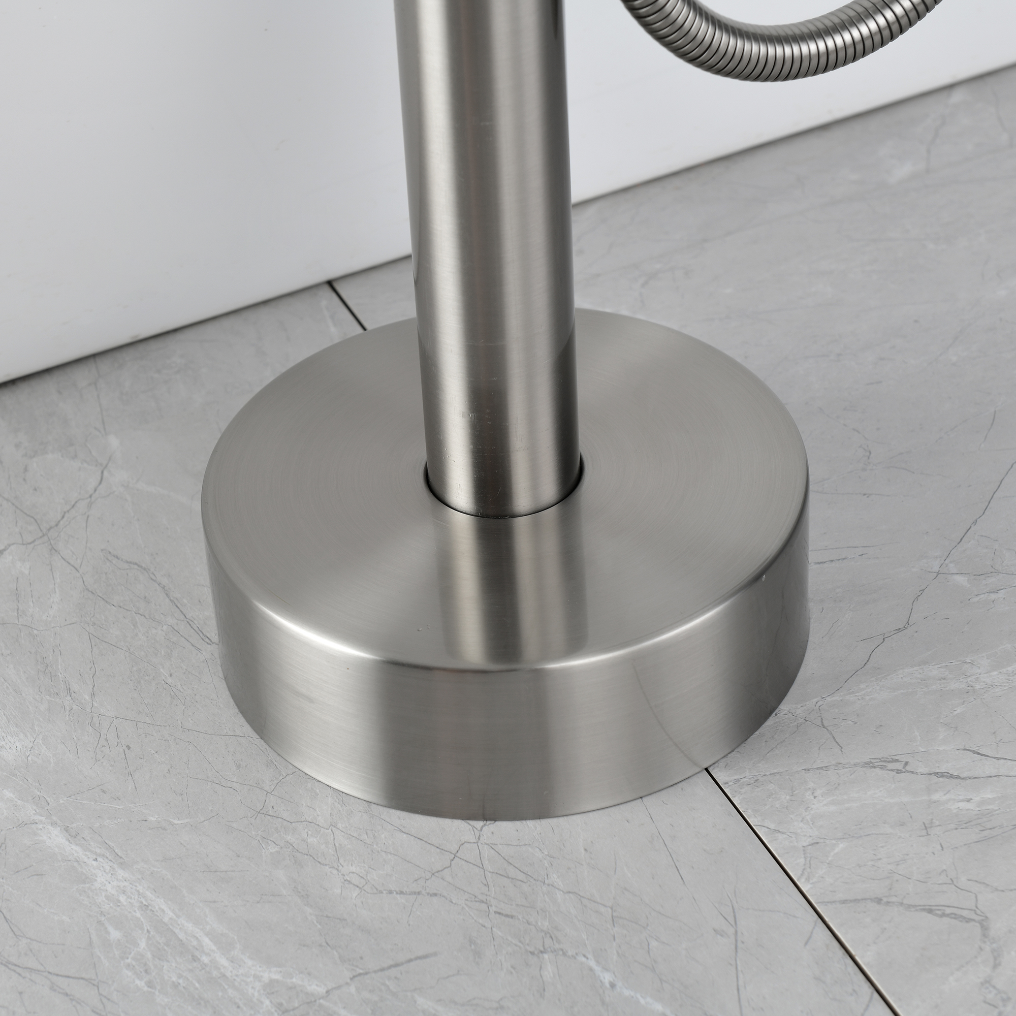 The hand shower is adopted modern and elegant design. It's perfectly integrated with the main faucet. Telephone style hand shower, avoid leaking water from hand shower dripping on the floor when you turn the faucet off. 360 degree swivel spout allows you to adjust the position of the spout according to your own habits.