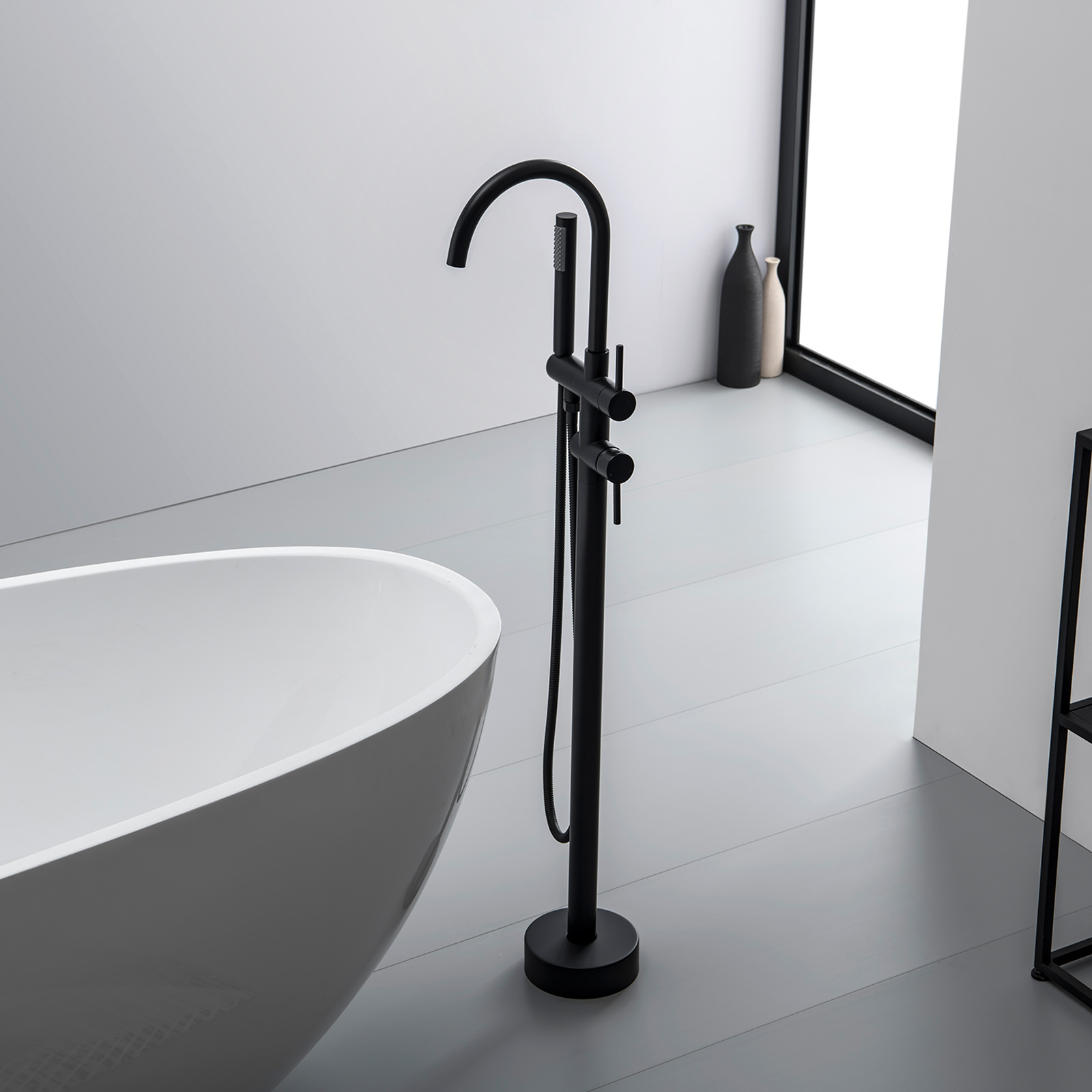 - Freestanding Bathtub Faucet With 2 Function Hand Shower Wand