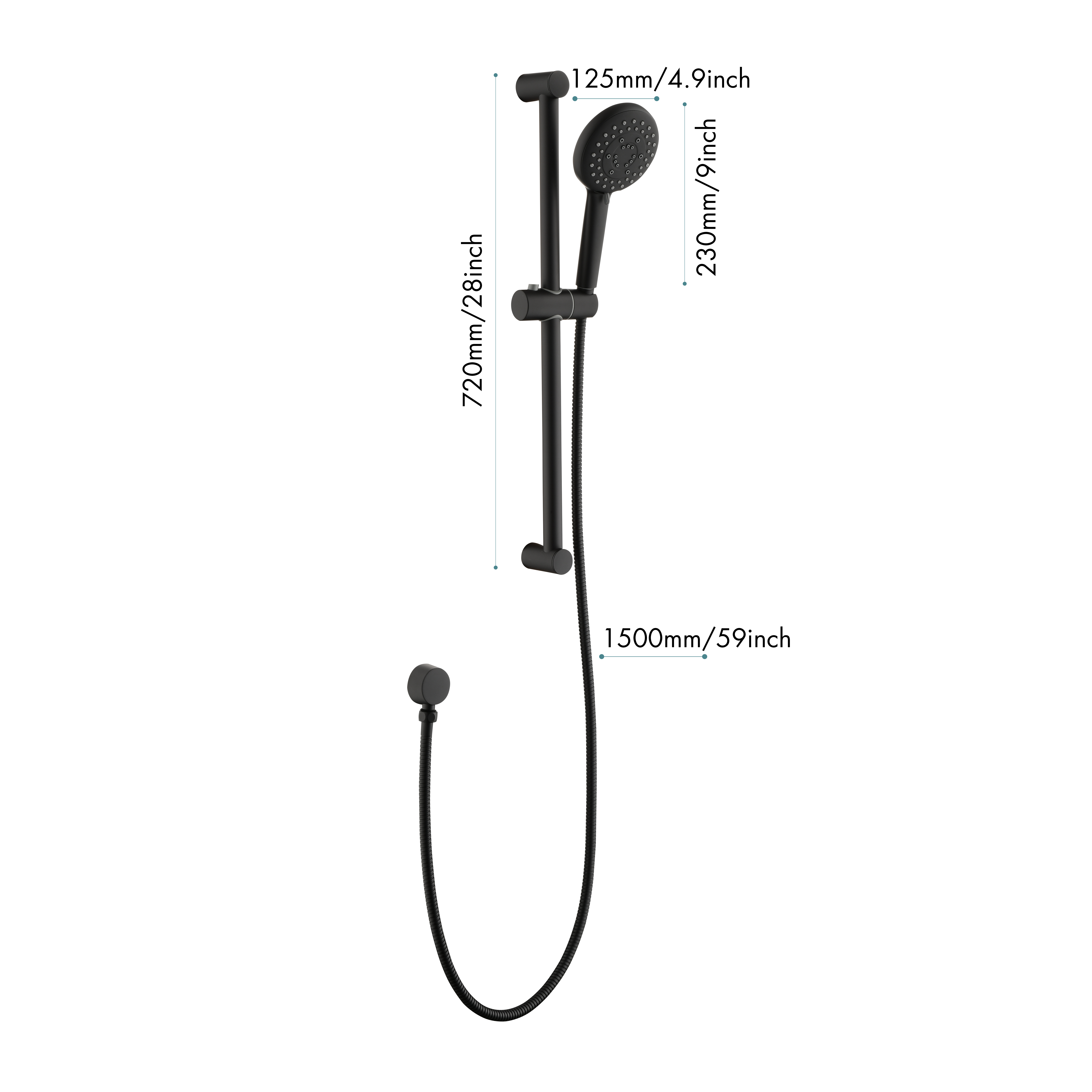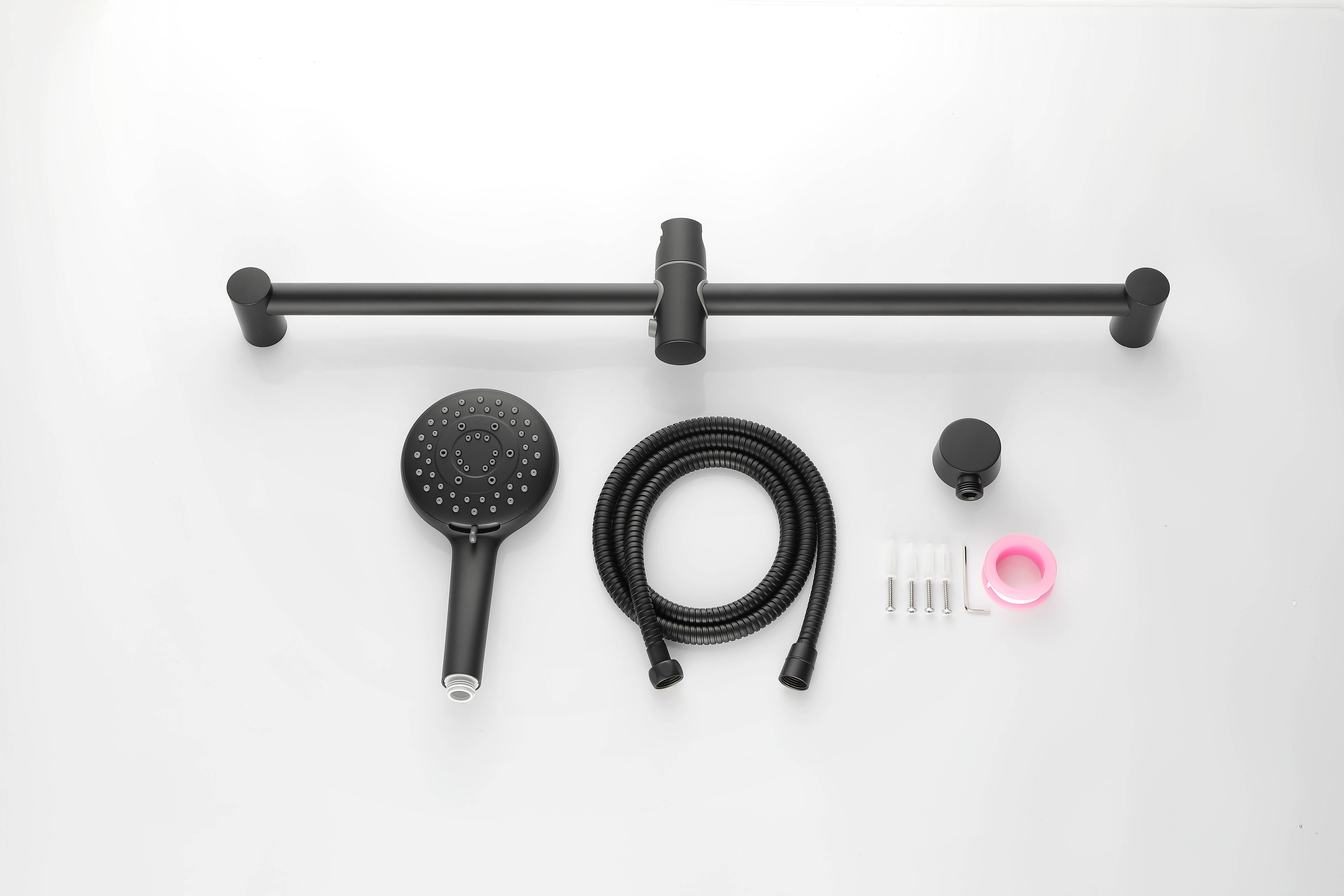 Package Includes: Matte black slide bar handheld shower includes handheld sprayer, sliding bar, shower holder, wall supply elbow, 59inches hose, hardware pack, and detailed installation guide.