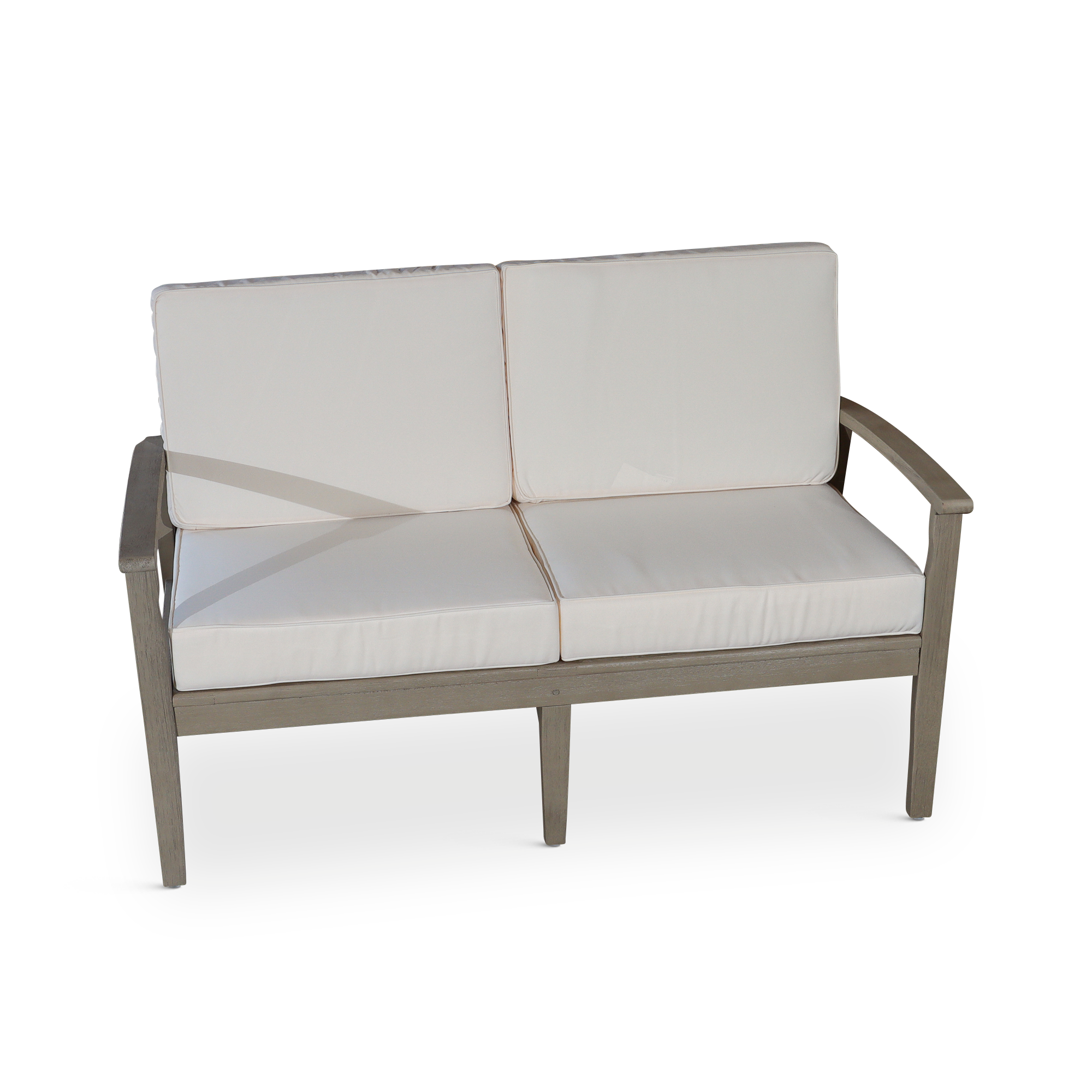 Eucalyptus Loveseat with Cushions, Driftwood Gray Finish, Cream Cushions