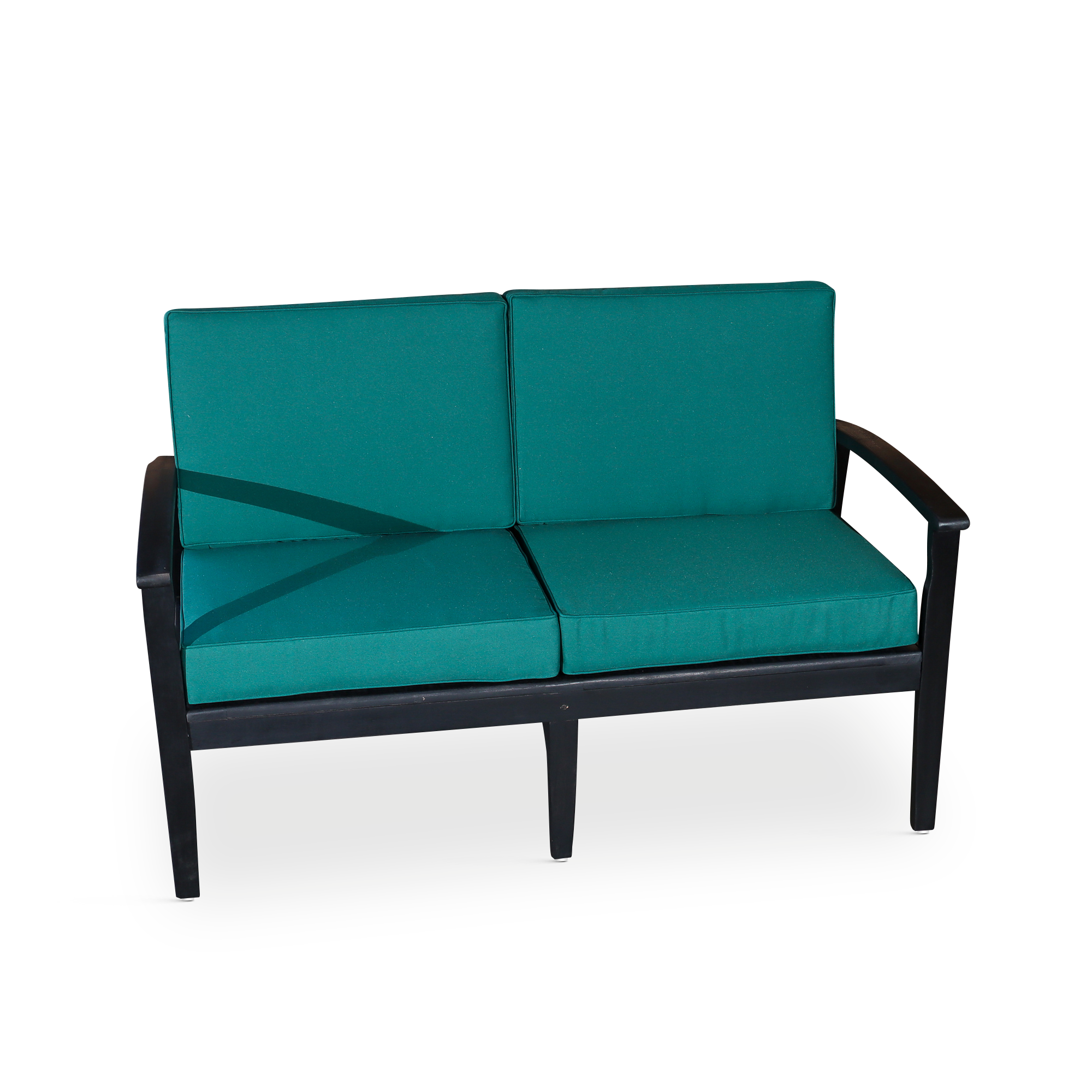 Eucalyptus Loveseat with Cushions, Espresso Finish, Dark Green Cushions