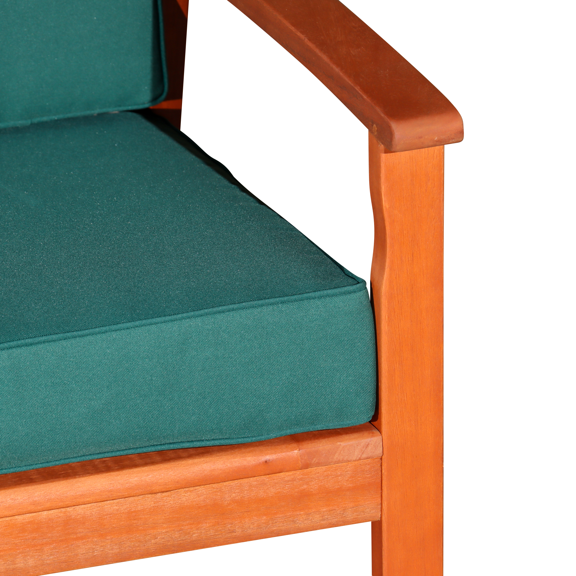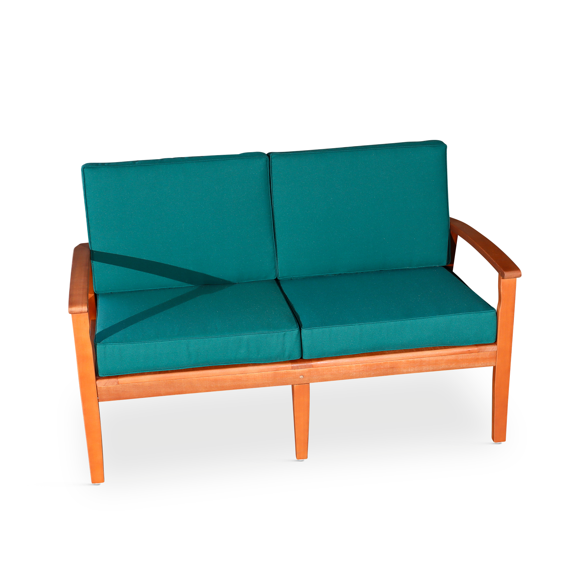 Eucalyptus Loveseat with Cushions, Natural Oil Finish, Dark Green Cushions