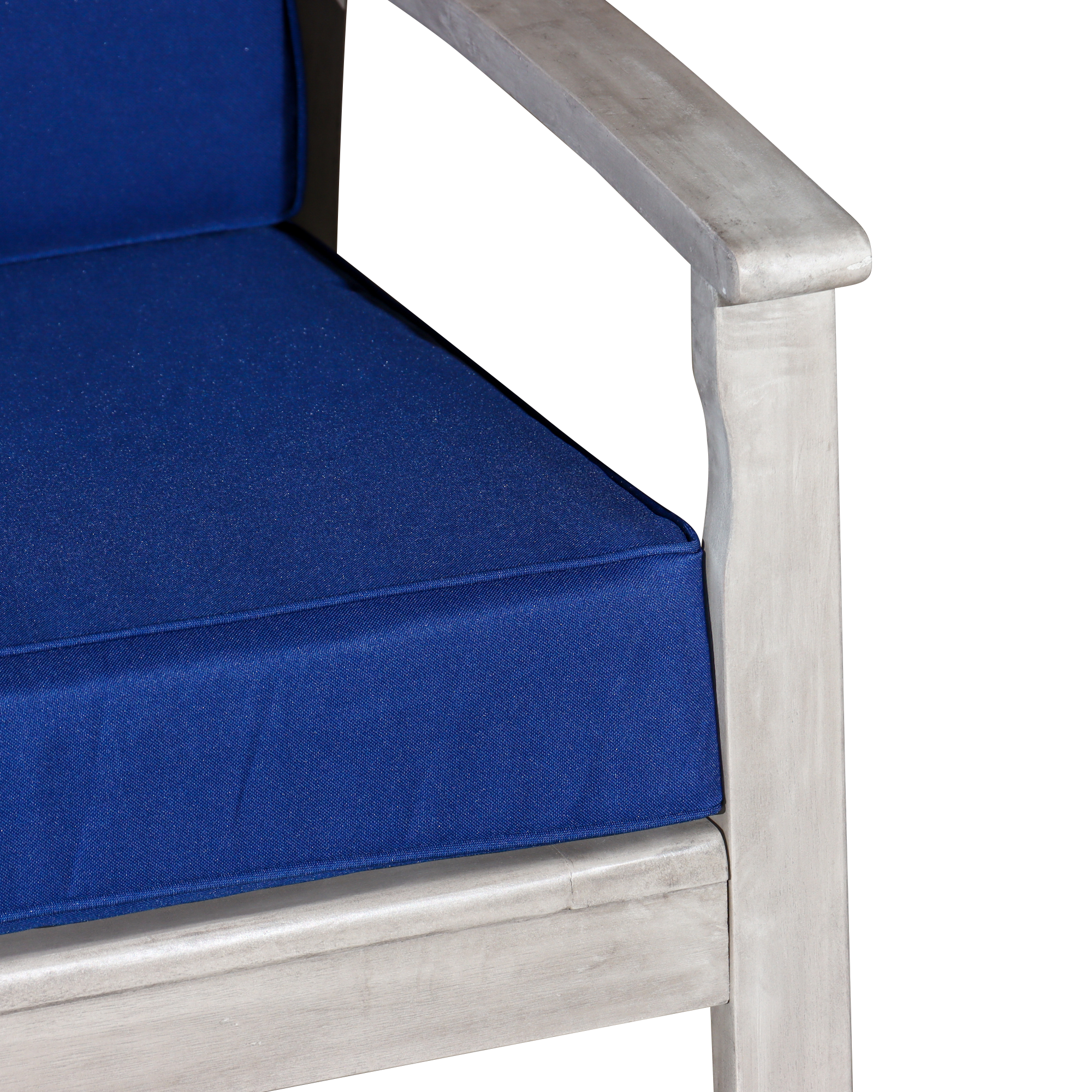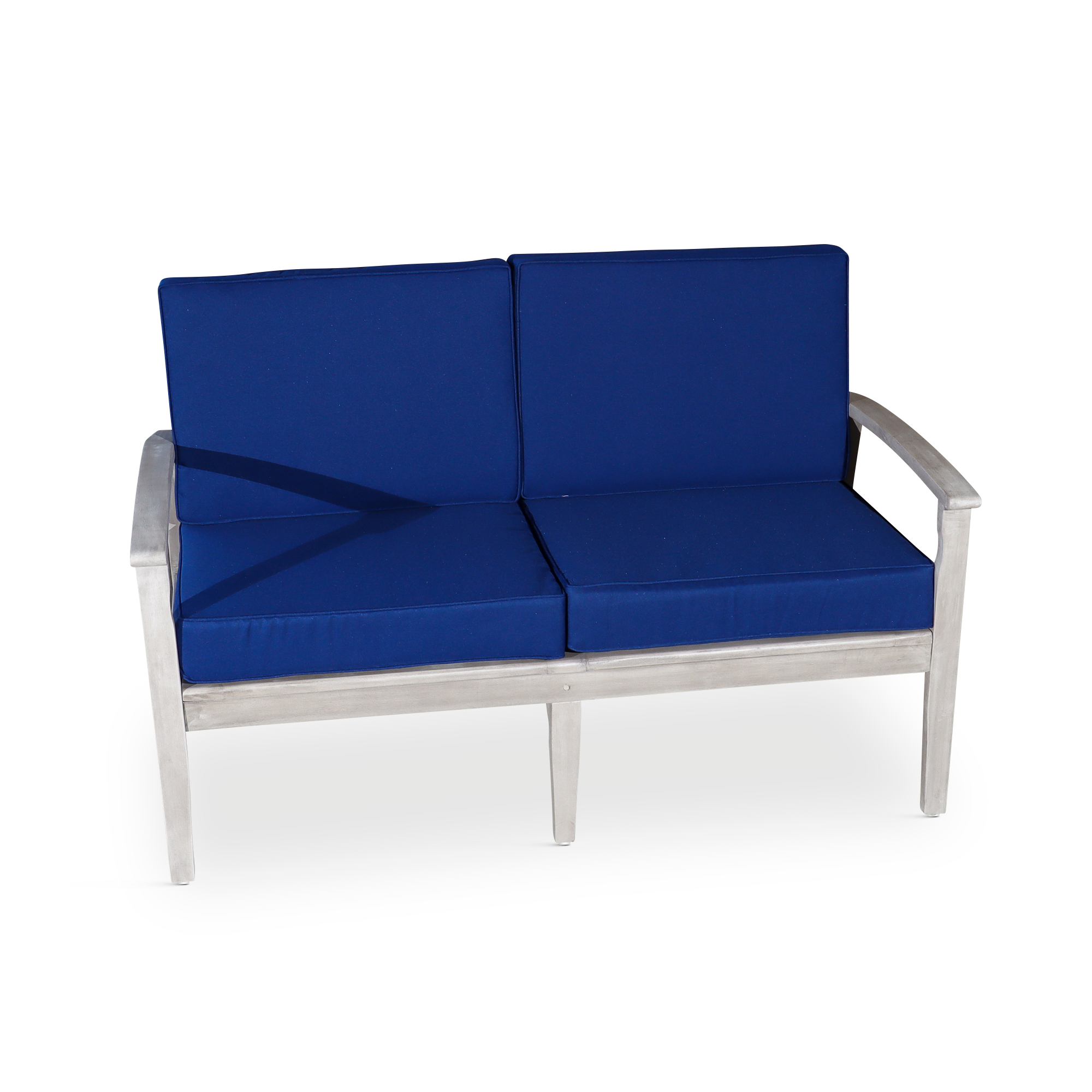 Eucalyptus Loveseat with Cushions, Silver Gray Finish, Navy Cushions