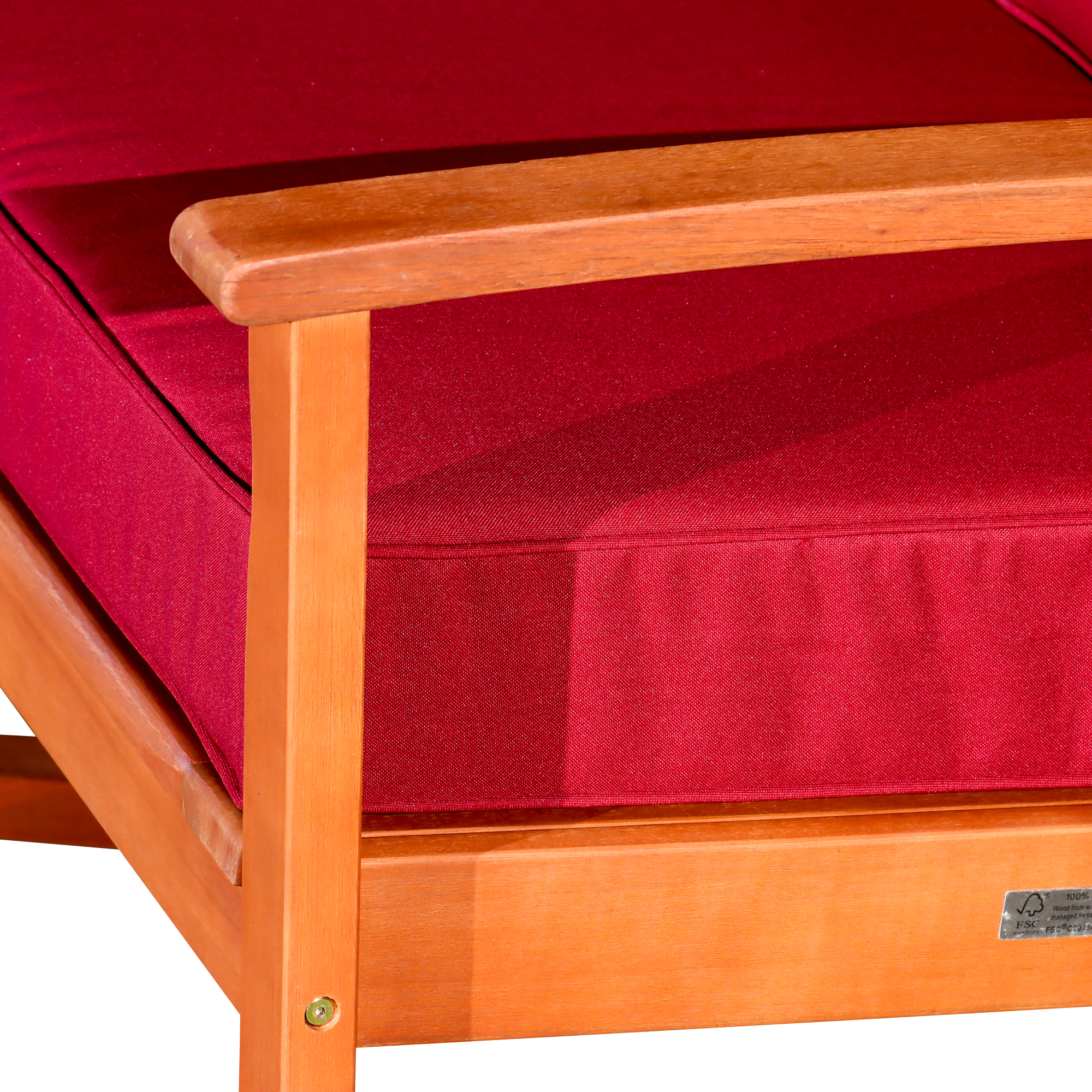 Eucalyptus Rocking Chair with Cushions, Natural Oil Finish, Burgundy Cushions