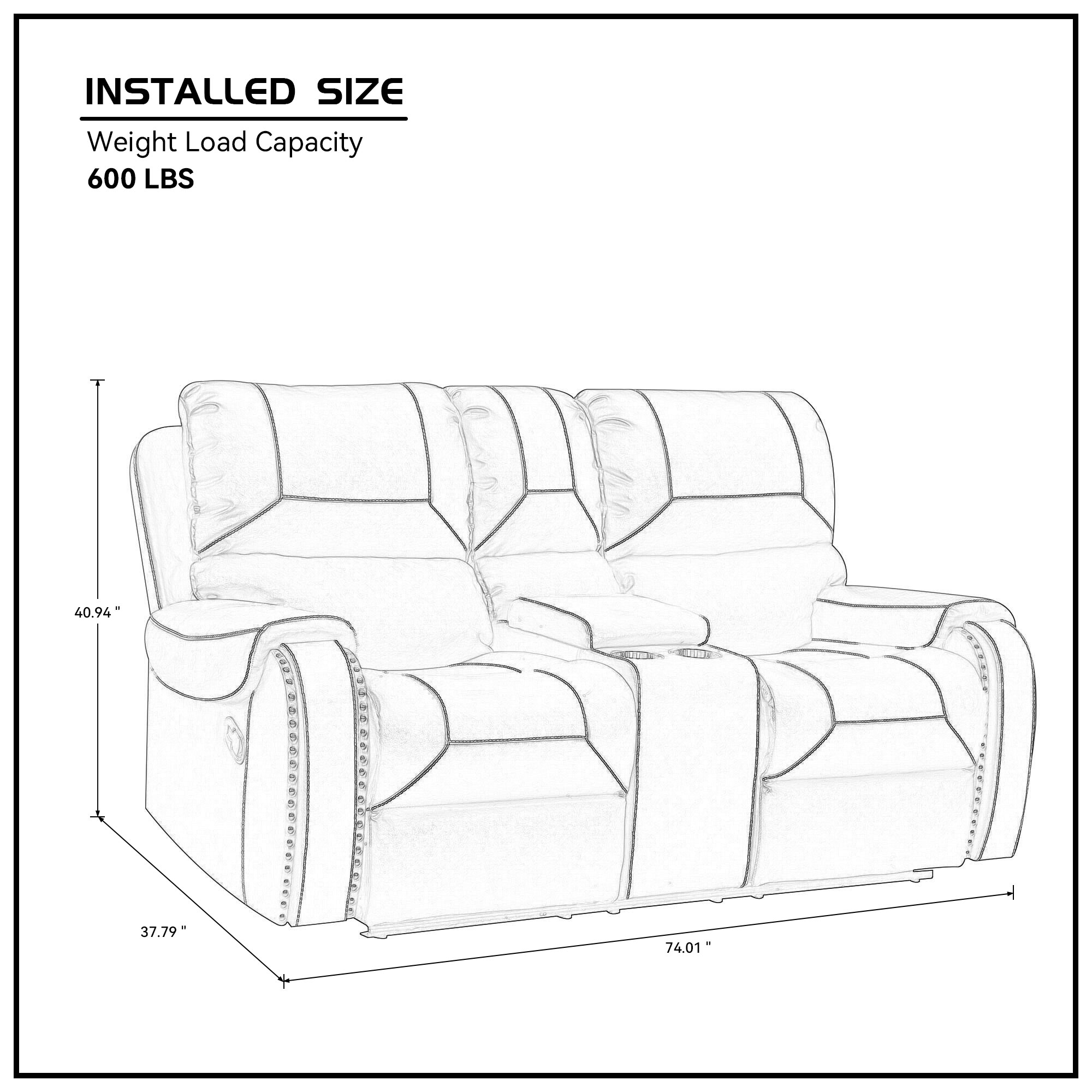 Features:Double recliner with storage space3-seats reclining sofa with drop down tableComfortable thicken paddingSoft and quality faux leatherCup holders made by stainless steelRetractable Extending FootrestSturdy Solid wooden frameStrong enough to withstand a weight of 300 lbs per seatEasy to assemble